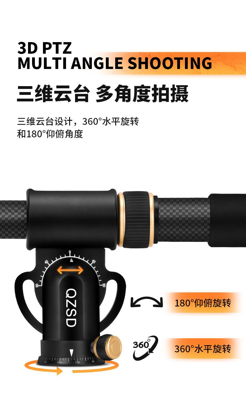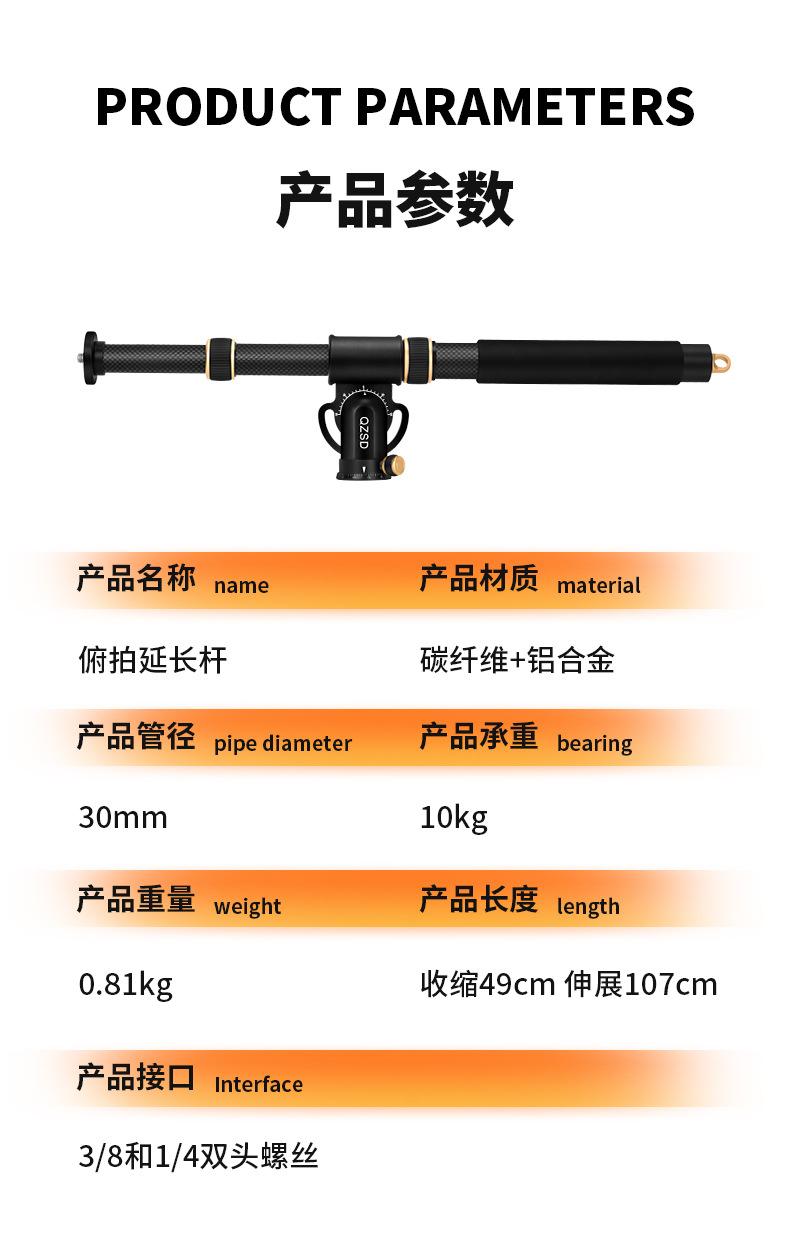 Q-Yt03C Fibra de Carbono Aleación de Aluminio 3 Secciones Varilla de Extensión para Toma Aérea Equipo de Fotografía para Cámara Dslr Soporte Trípode