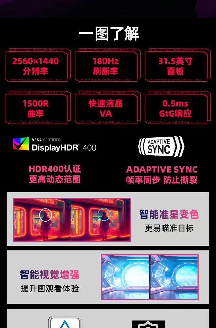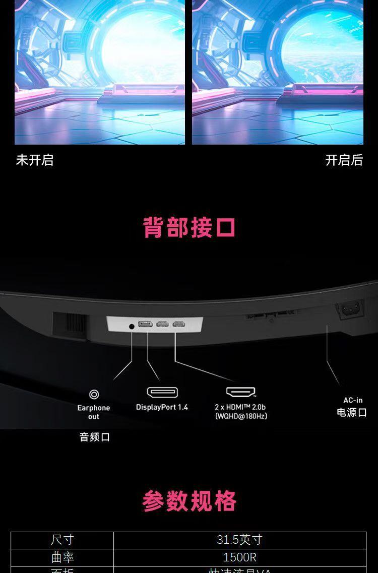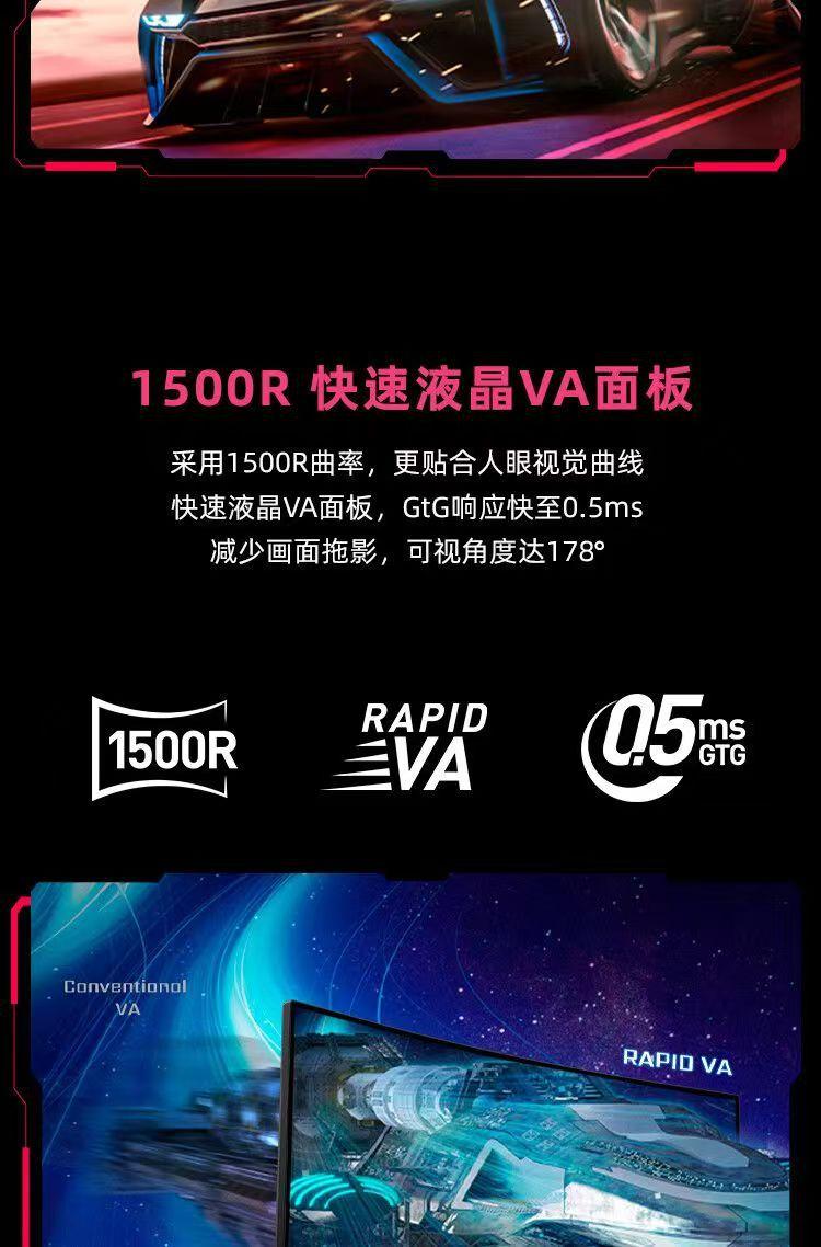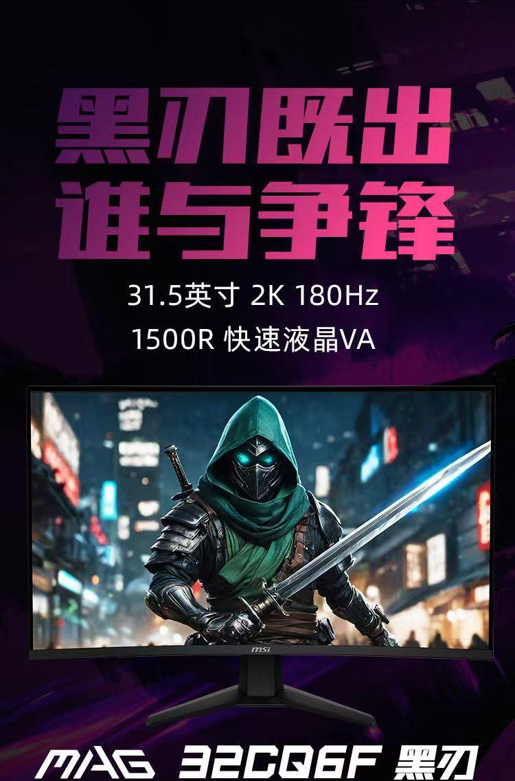 Pantalla para deportes electrónicos HDR400 32CQ6F, 2K, superficie curva, 180 Hz, 0,5 ms