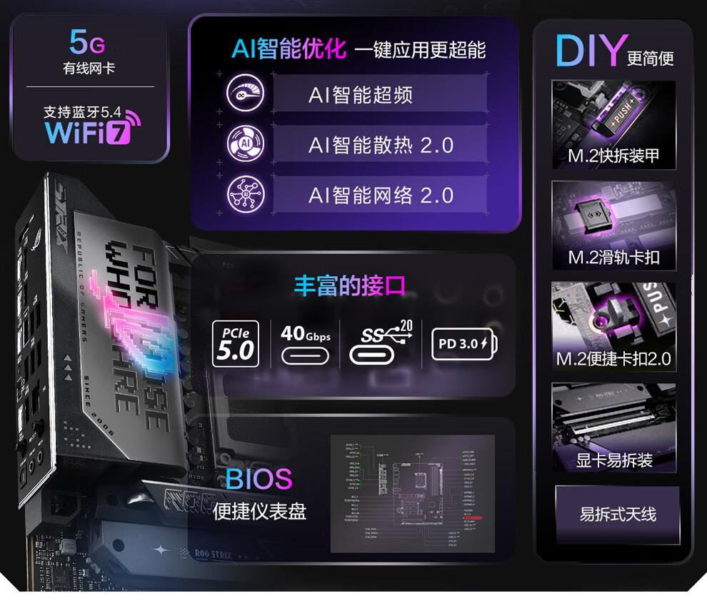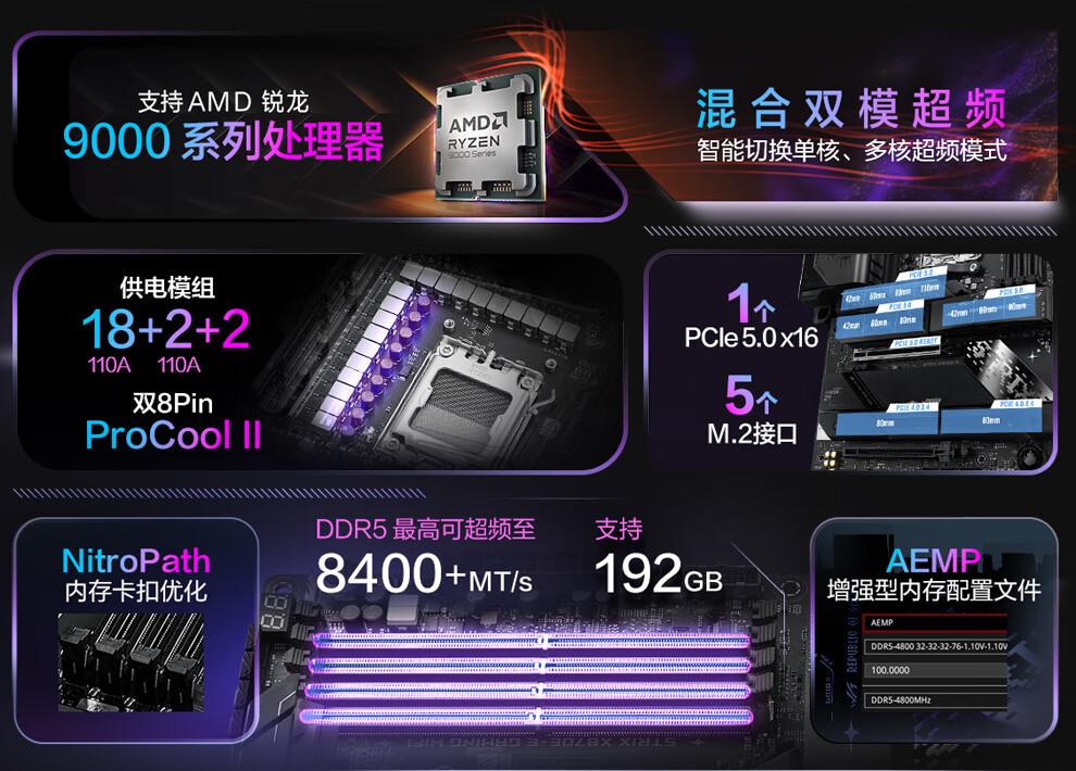 Placa base ROG STRIX X870E-E GAMING WIFI compatible con CPU 9900X/9950X