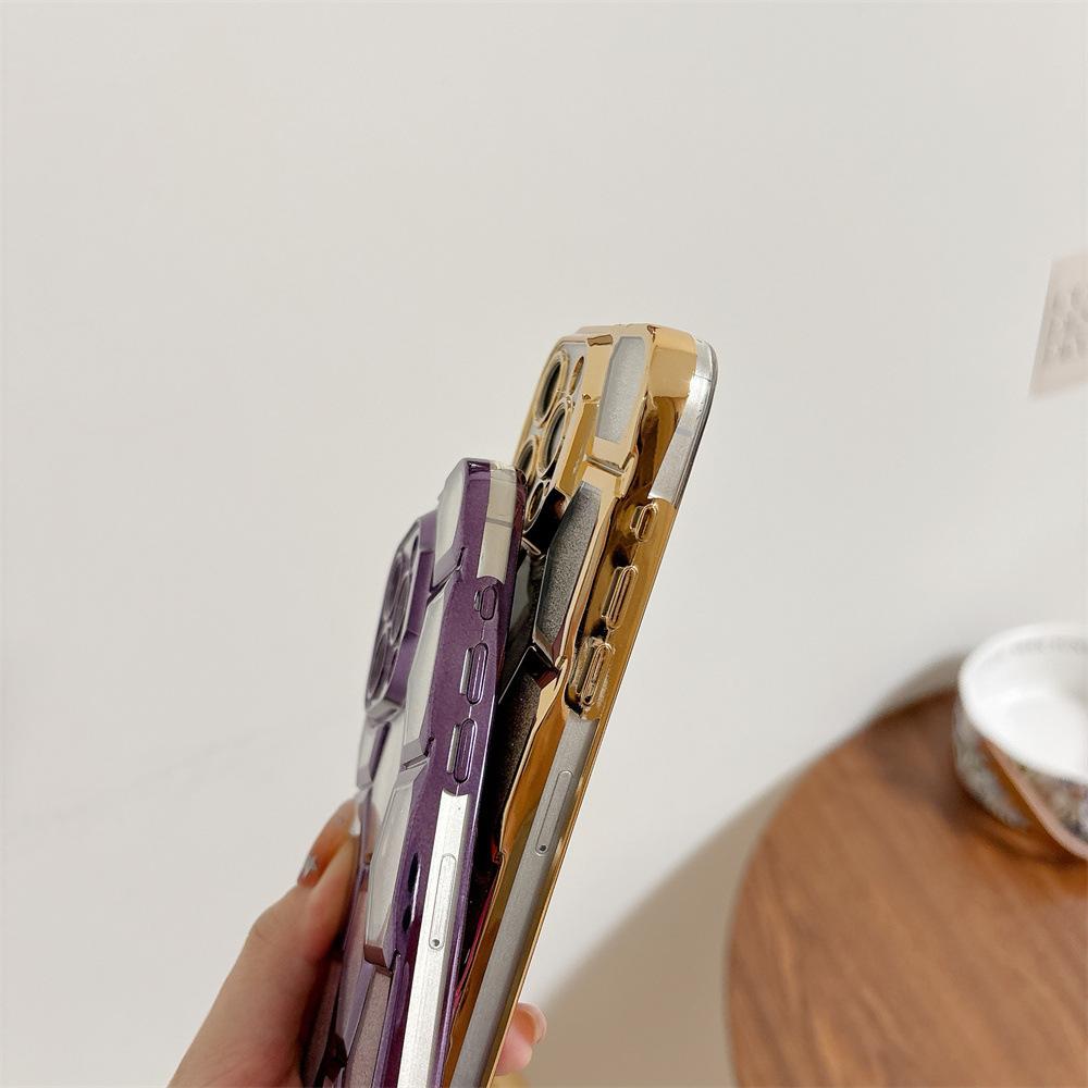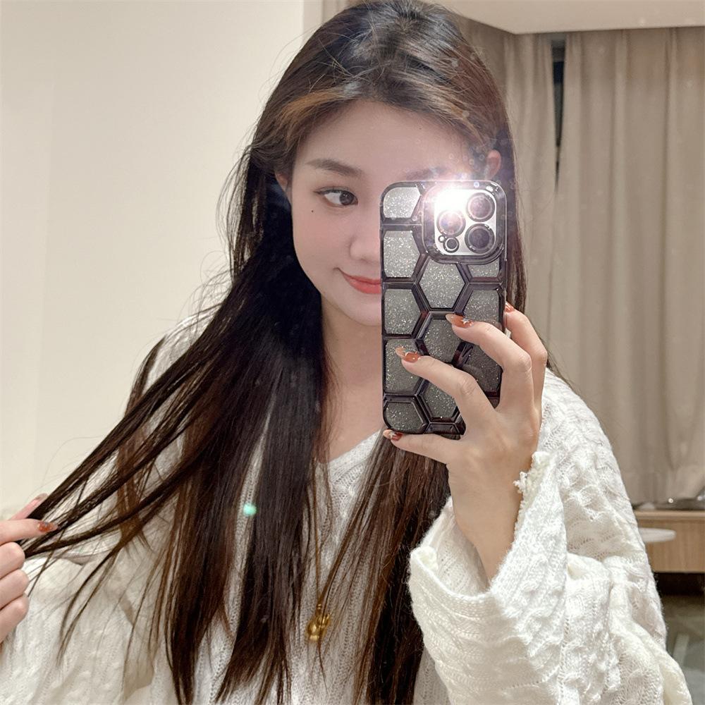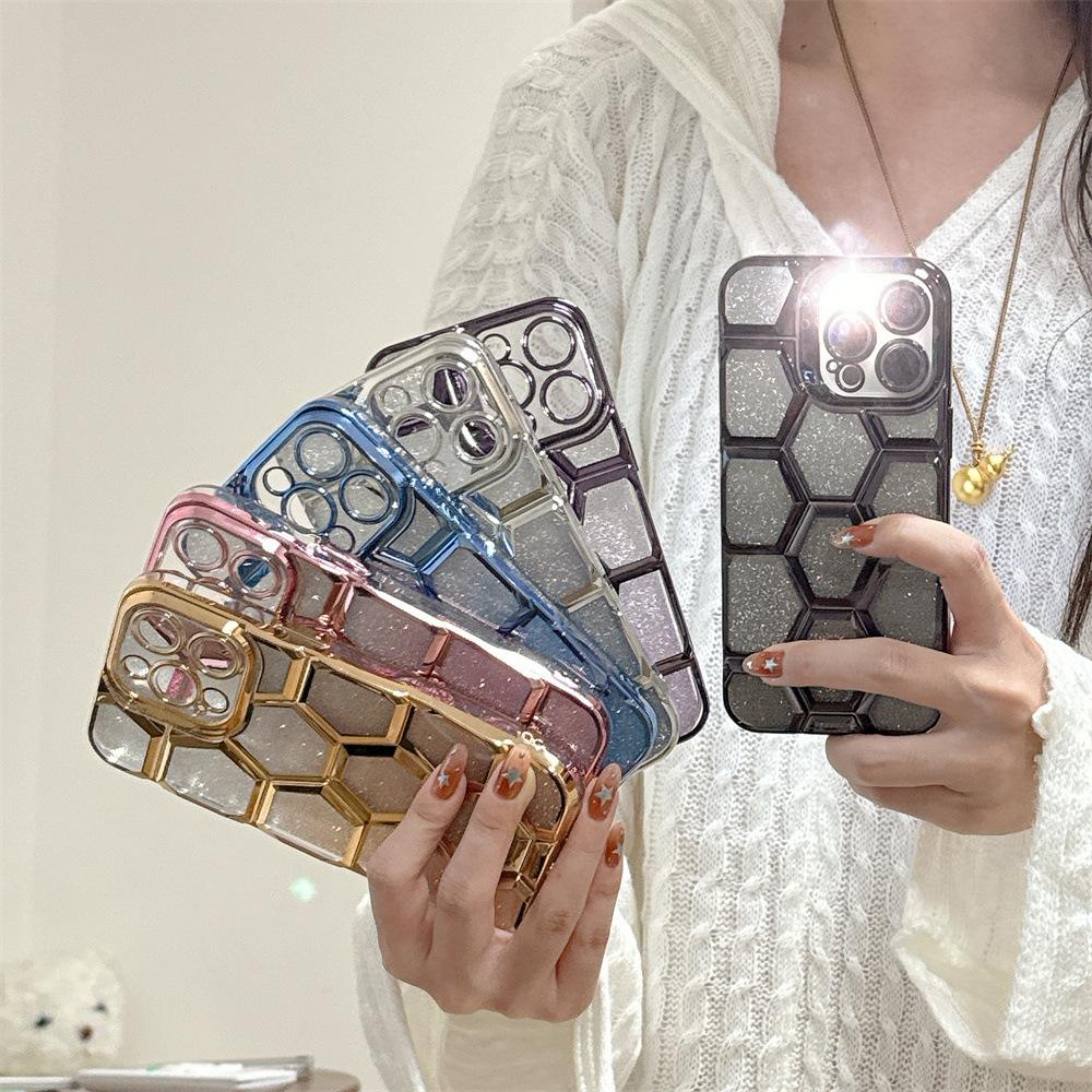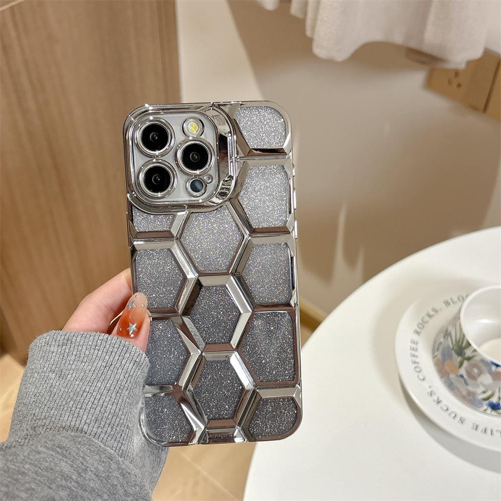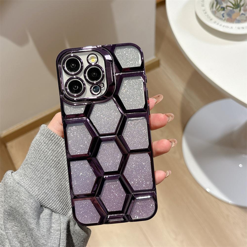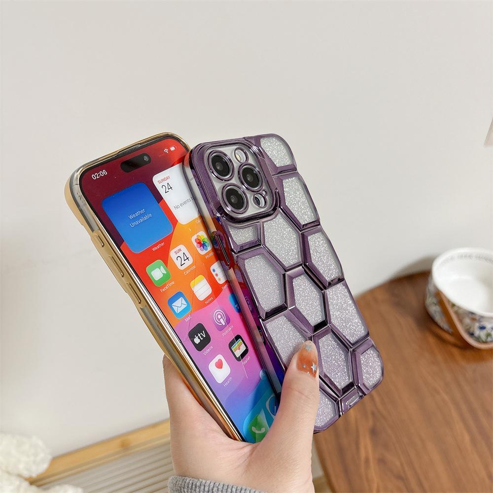 Funda de teléfono electrochapada romboidal tridimensional simple para iPhone 16/15 Pro Max, funda protectora de cartón con purpurina degradada