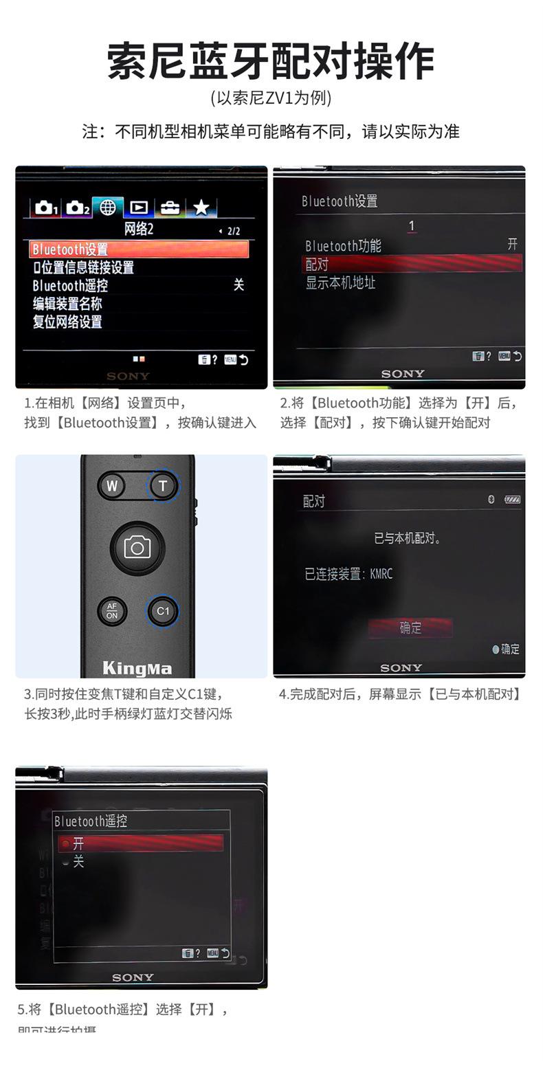 Control remoto inalámbrico Bluetooth RMT-P1BT para cámara Sony A7RM3/M4 A6400 ZV-1 ZV-E10
