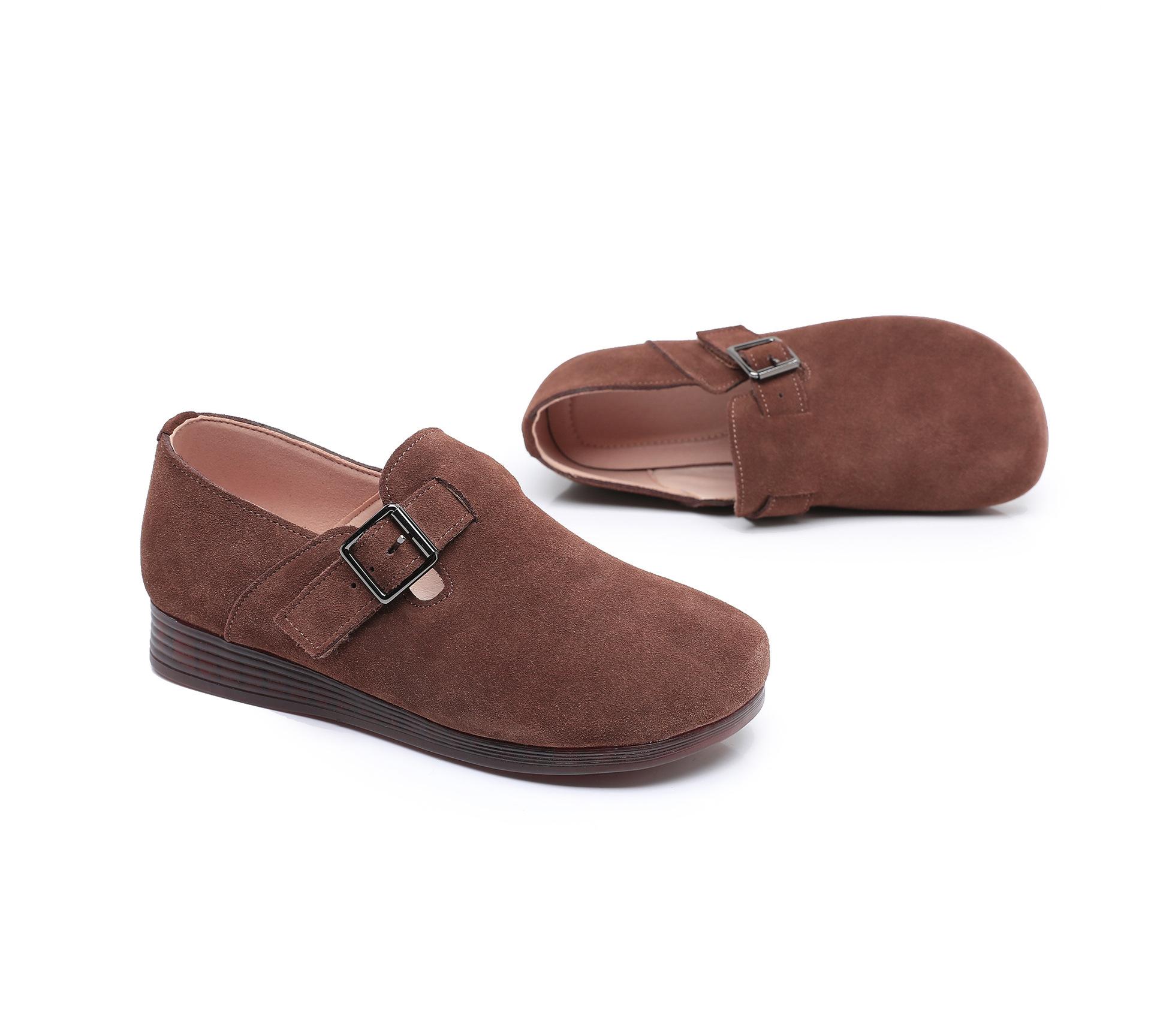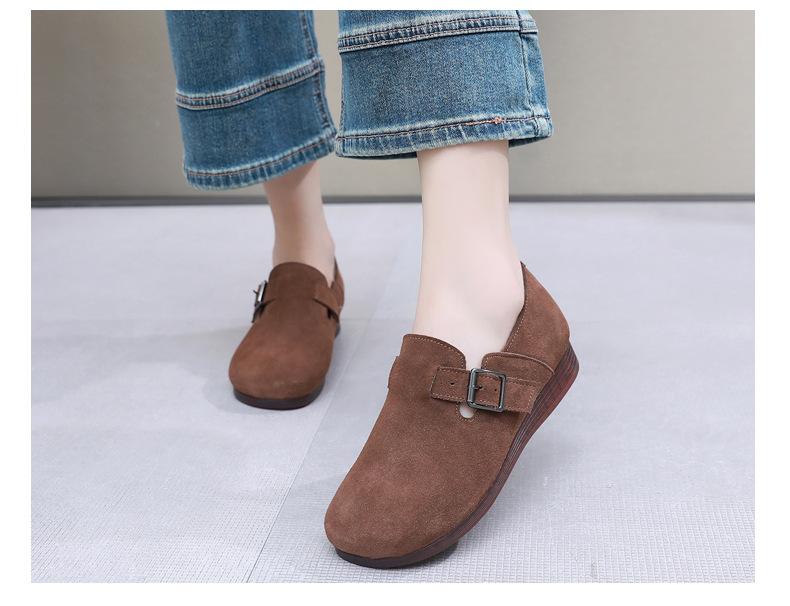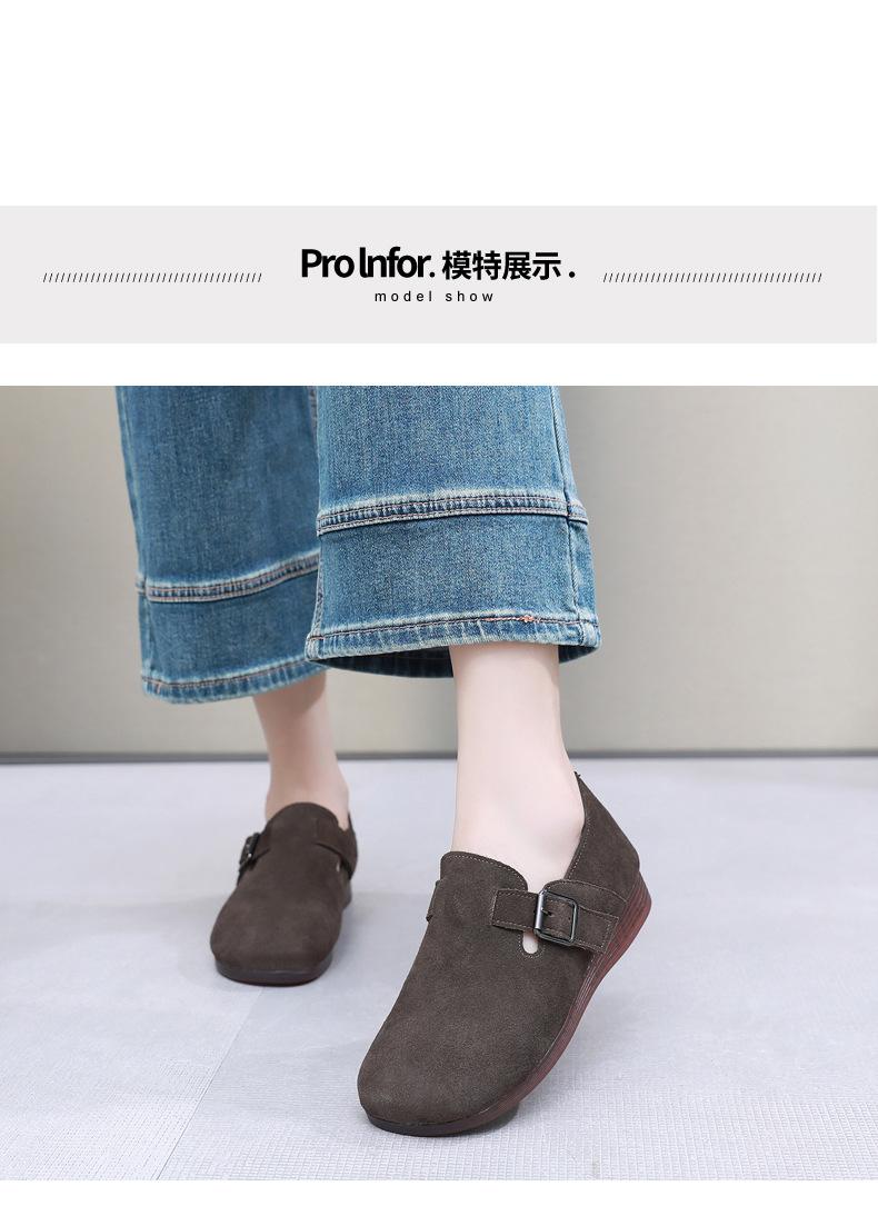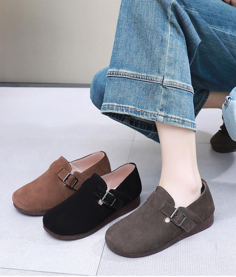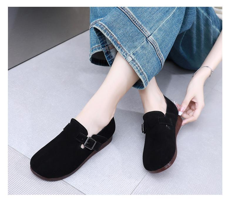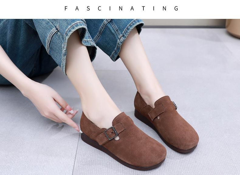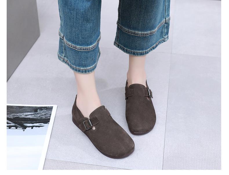 Zapatos de Piel Genuina de Punta Redonda Planos Casuales Vintage de Una Capa para Mujer Primavera y Otoño Piel Vacuna Escarchada Planos Suela Blanda Zapatos Birkenneth