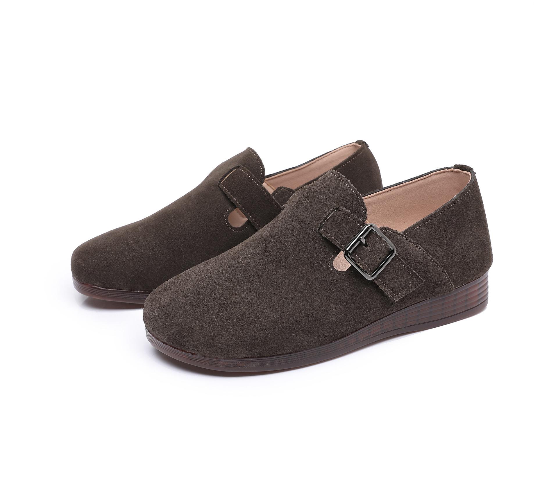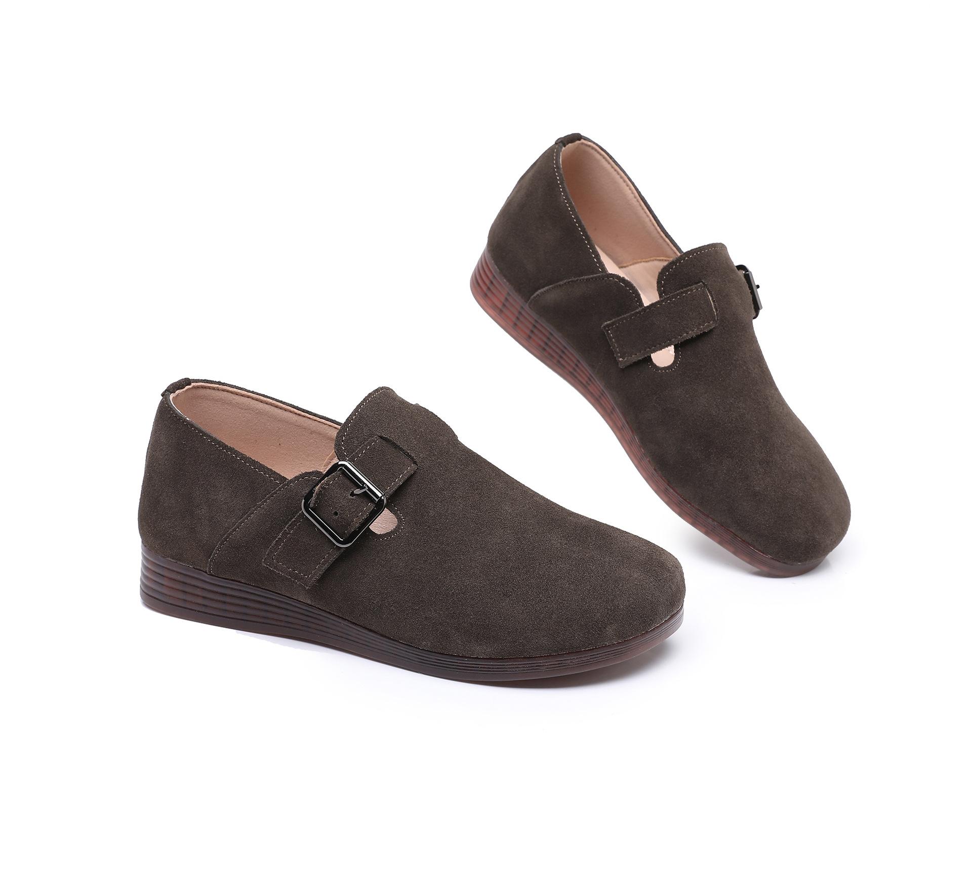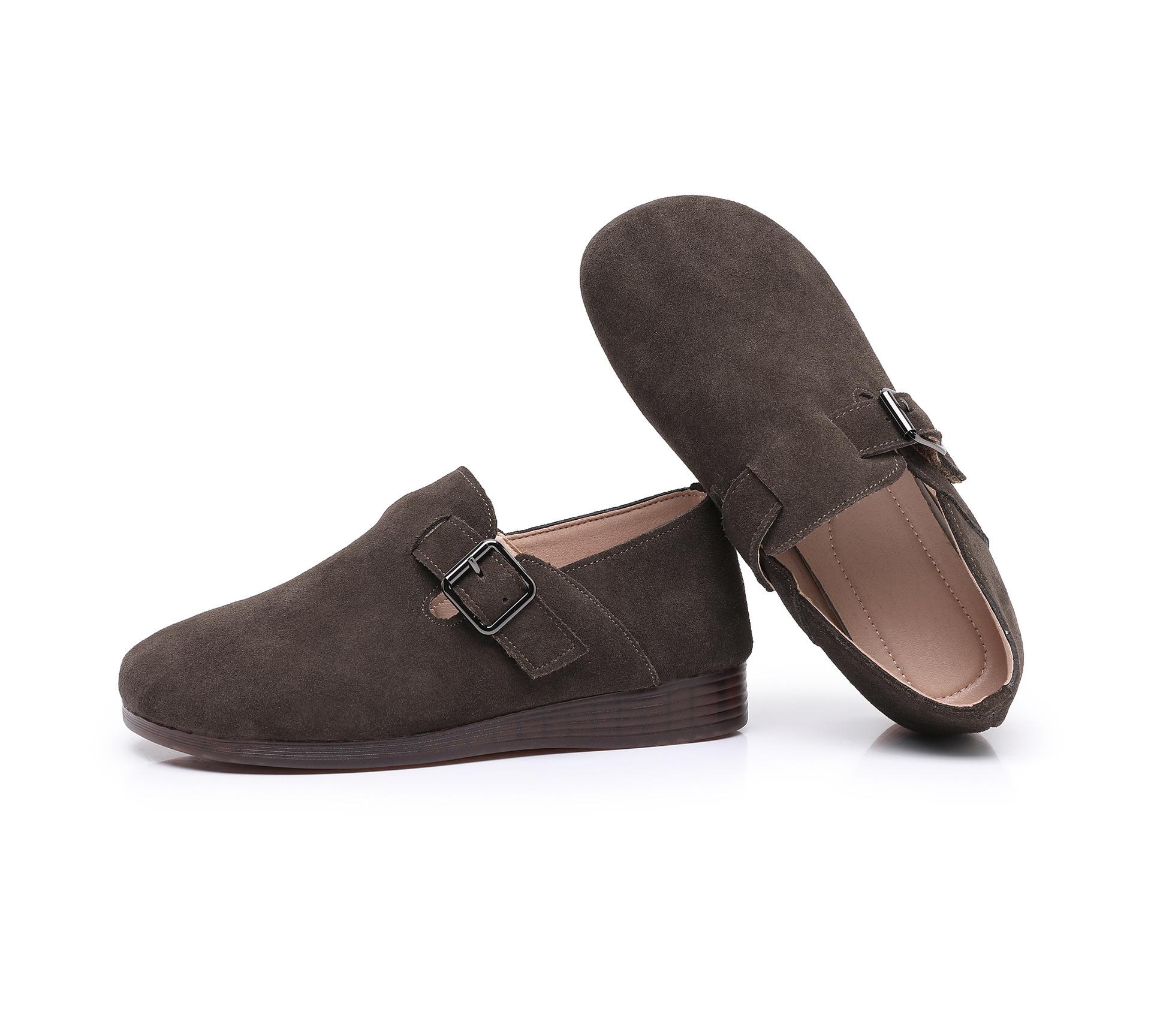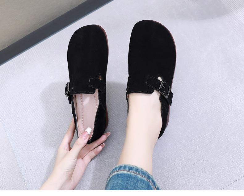 Zapatos de Piel Genuina de Punta Redonda Planos Casuales Vintage de Una Capa para Mujer Primavera y Otoño Piel Vacuna Escarchada Planos Suela Blanda Zapatos Birkenneth