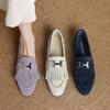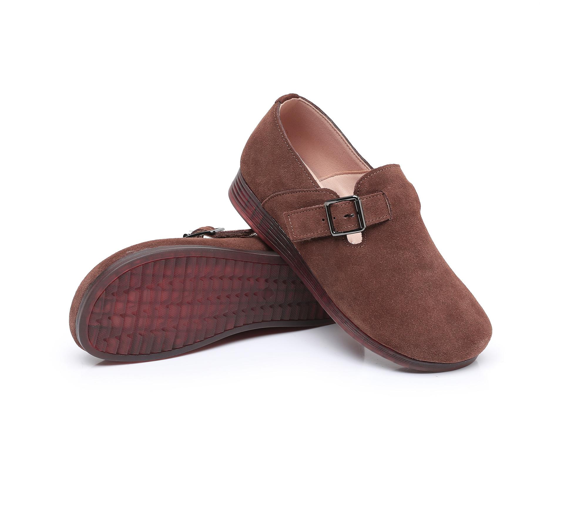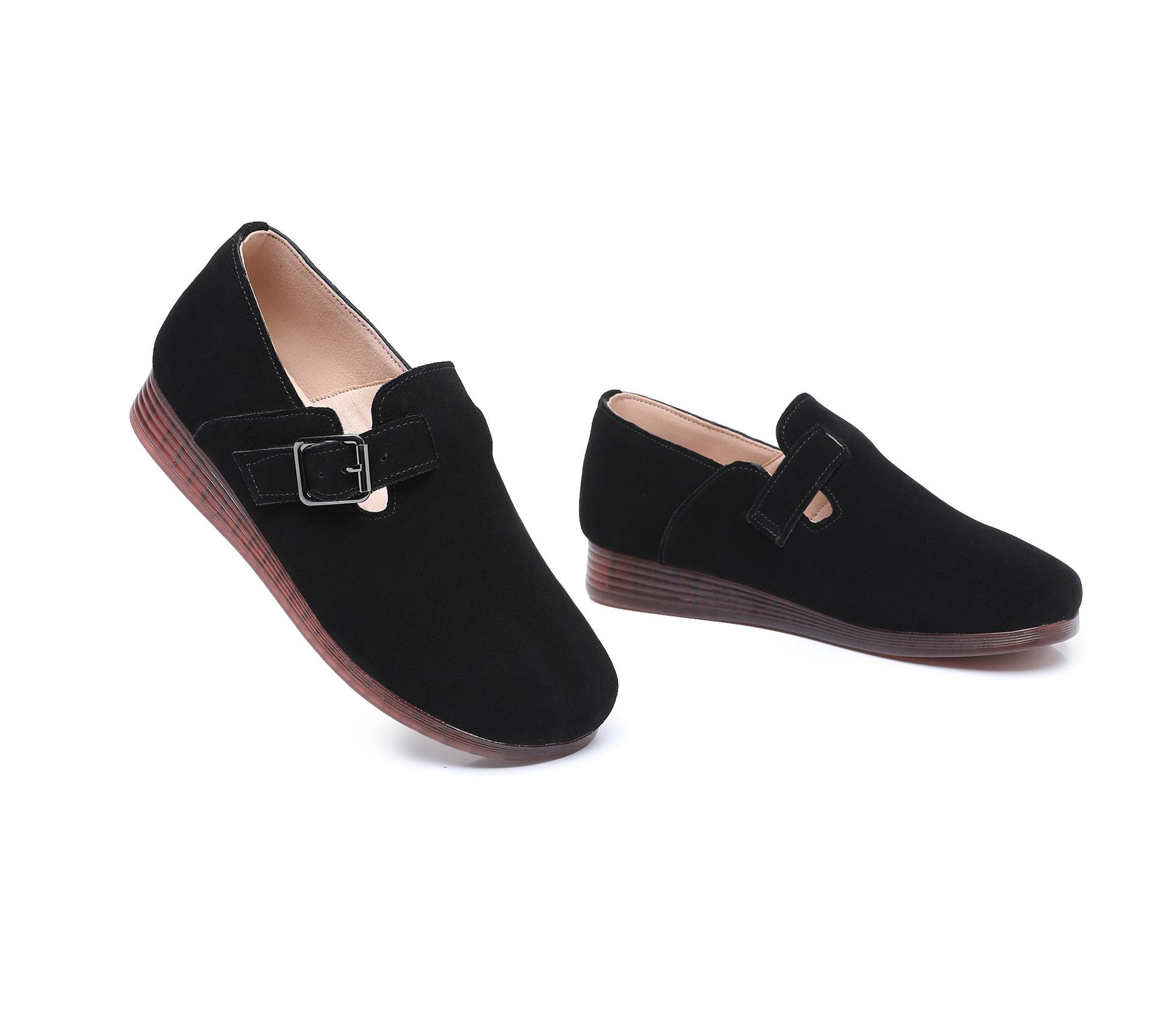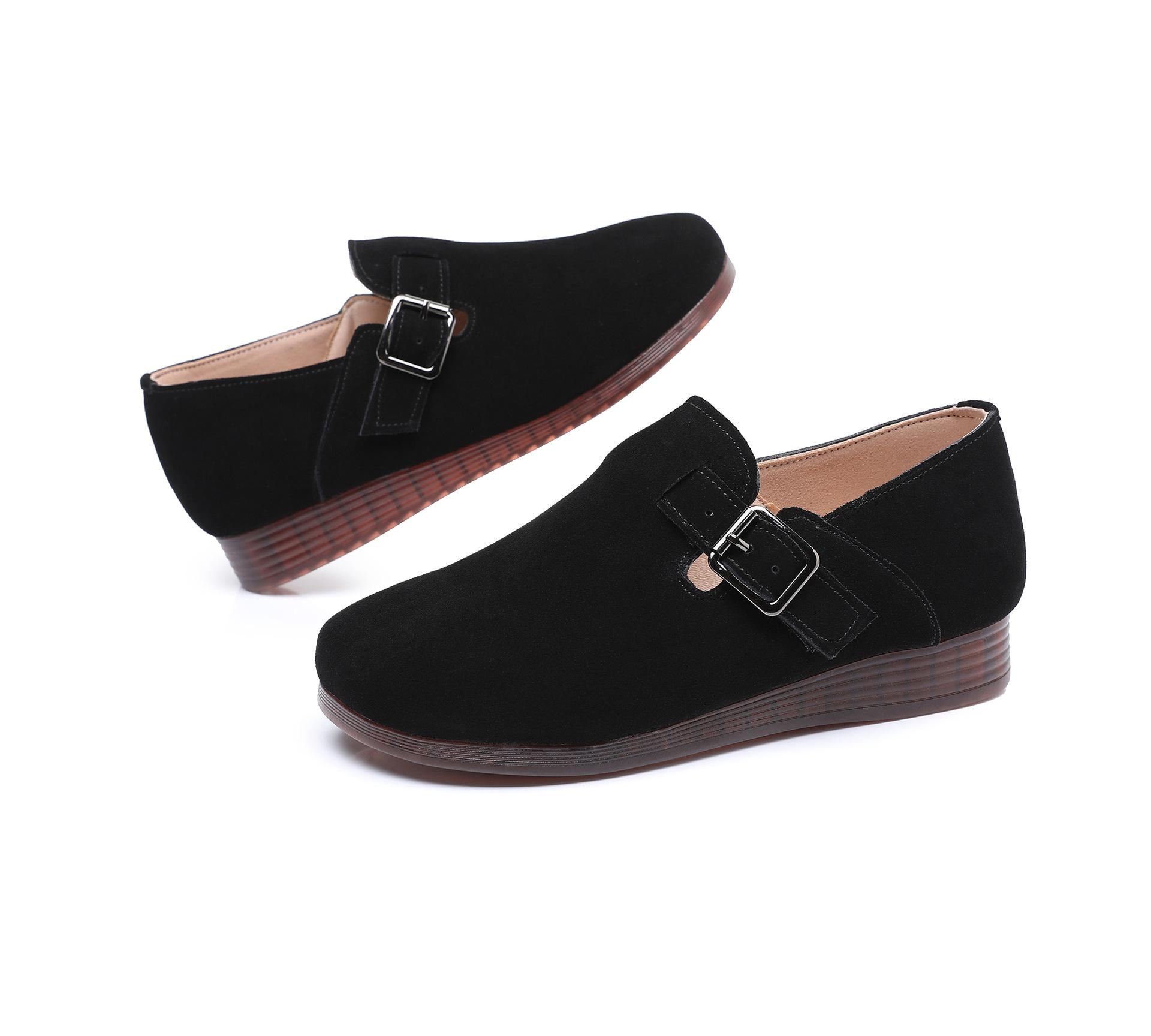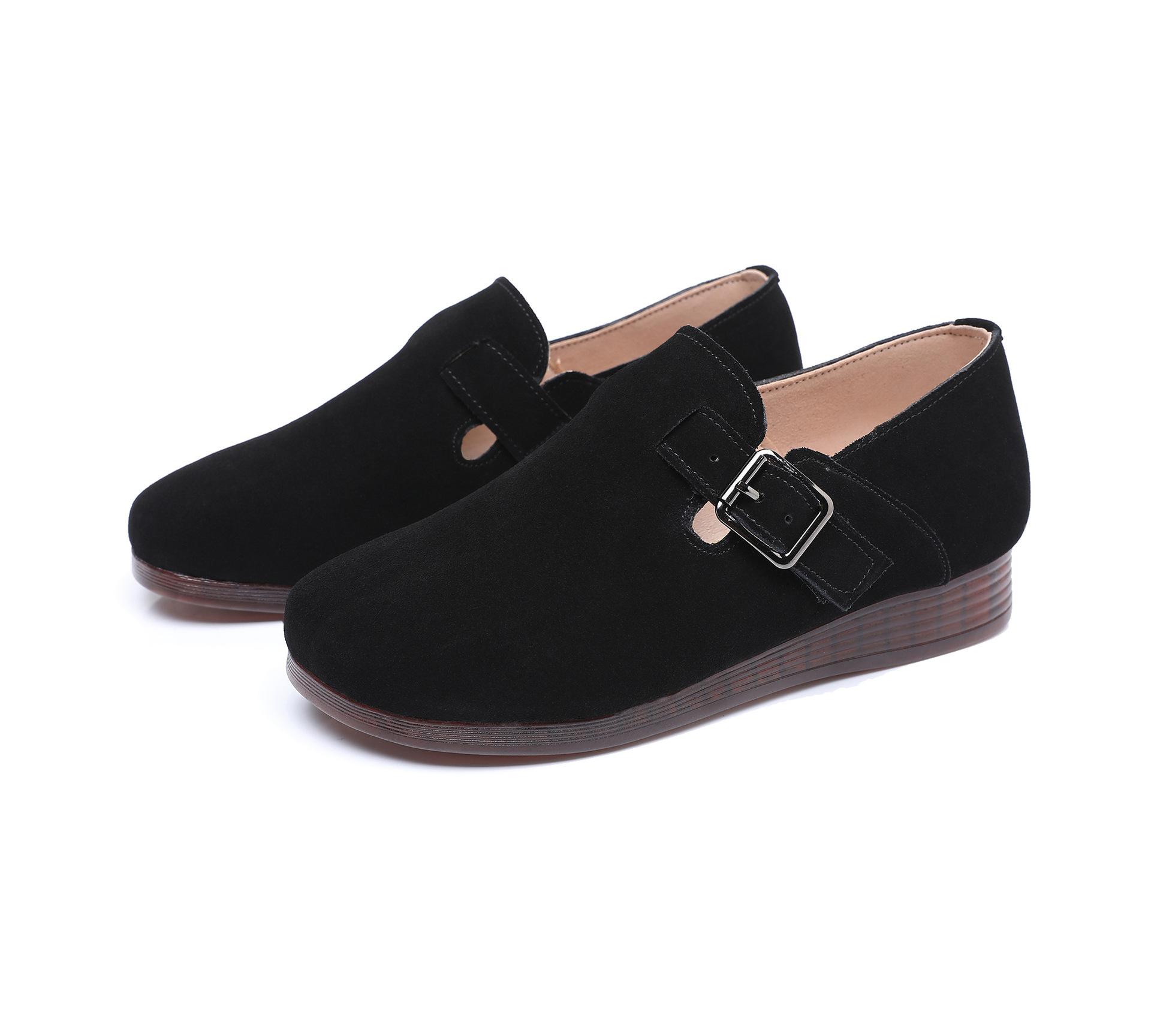 Zapatos de Piel Genuina de Punta Redonda Planos Casuales Vintage de Una Capa para Mujer Primavera y Otoño Piel Vacuna Escarchada Planos Suela Blanda Zapatos Birkenneth