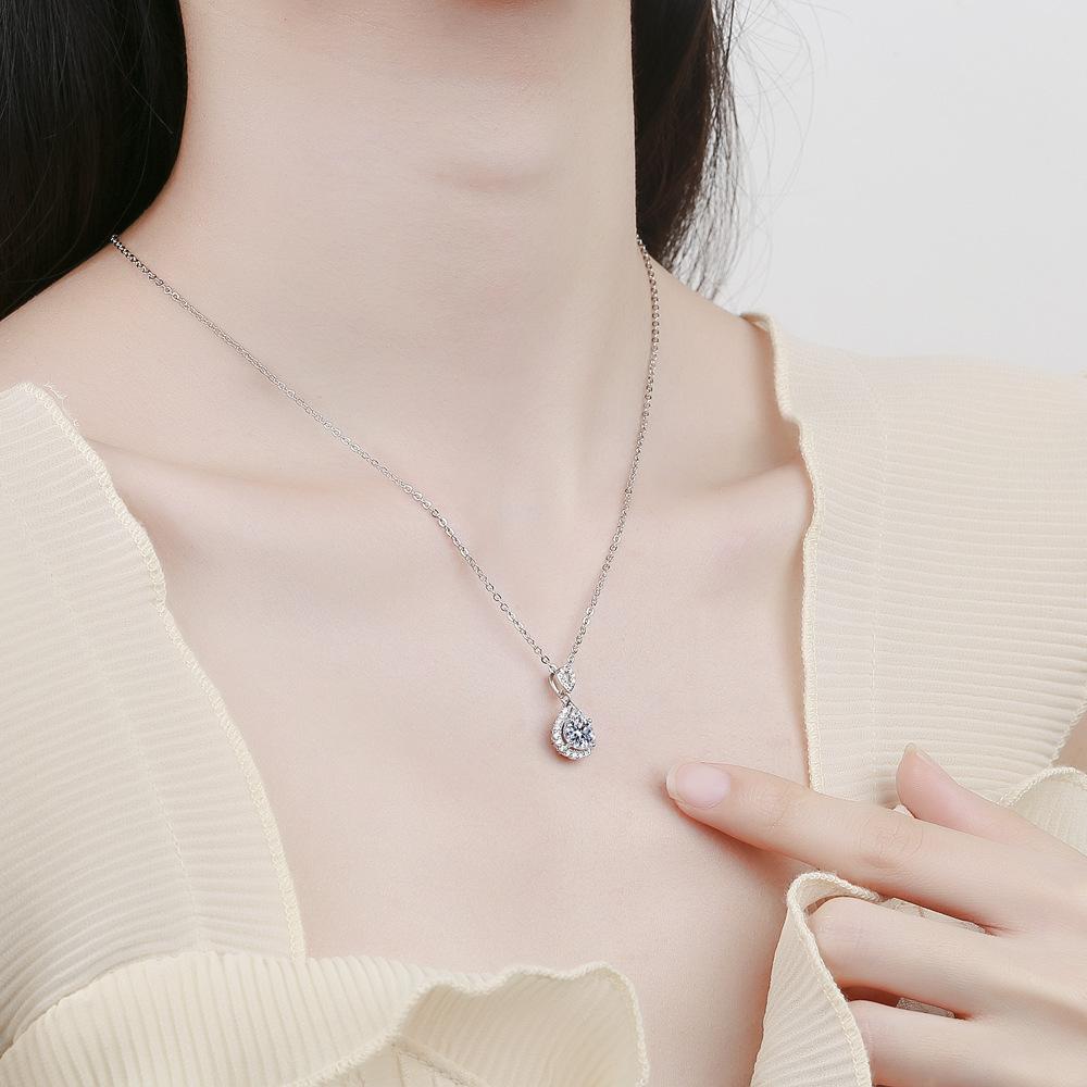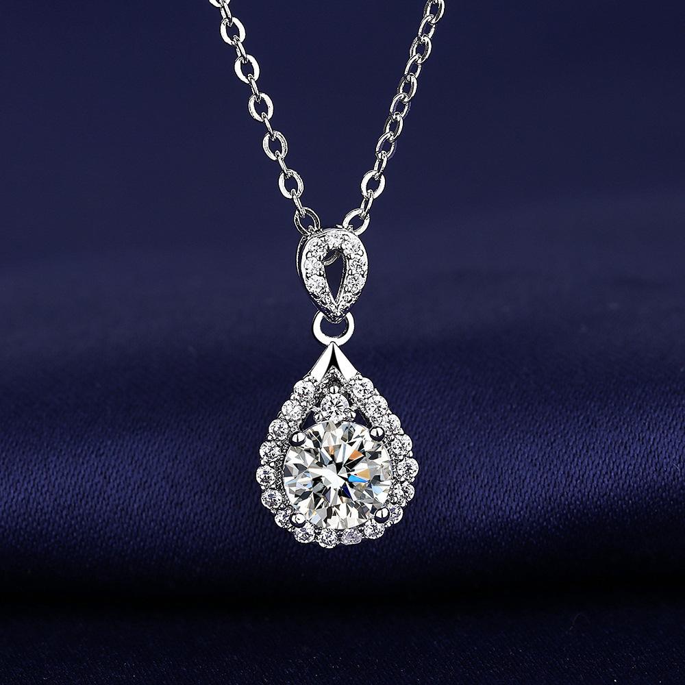 Versión coreana de cadena de clavícula en forma de lágrima, hebilla de melón clásica con diamante de moissanita de 1 quilate, collar tembloroso, mayorista