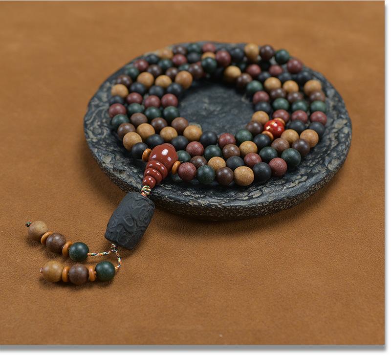 Incienso de Cinco Partes Hecho a Mano Cuentas de Incienso Antiguo 108 Cinco Elementos Oro Madera Agua Fuego Tierra Pulseras para Hombres y Mujeres Fragancia Súper Larga