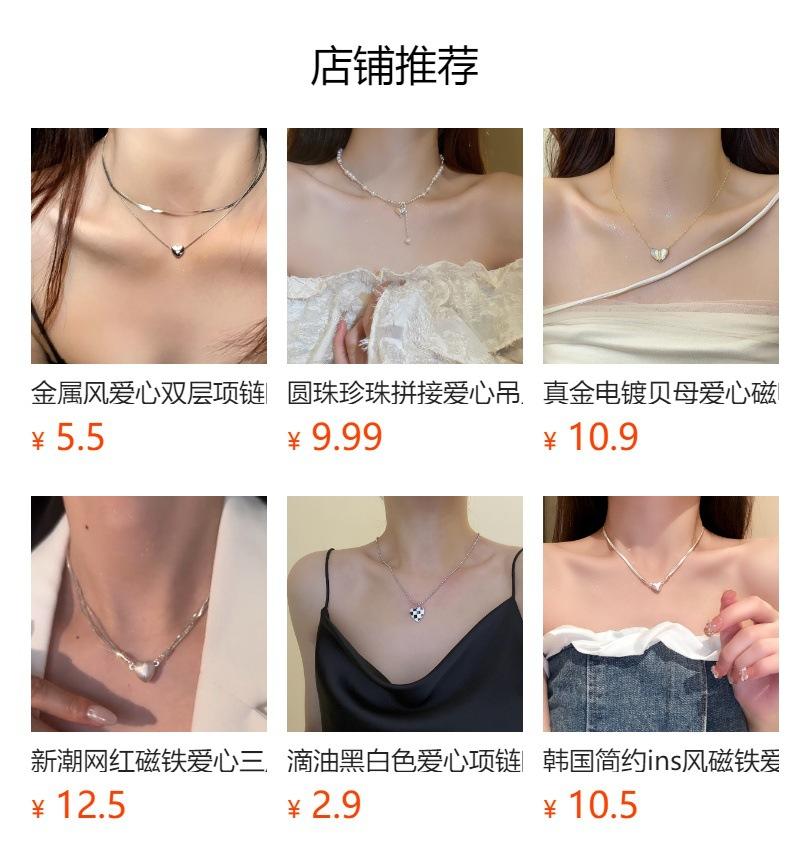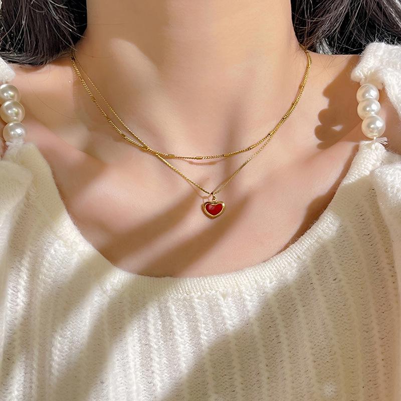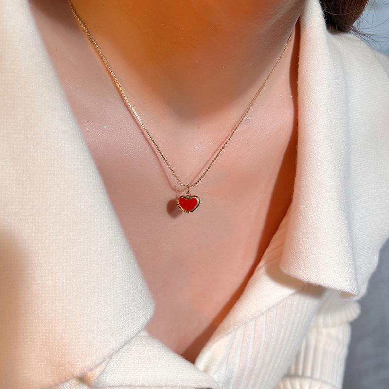 Collar con colgante de amor de acero de titanio coreano con gotas de aceite, cadena de clavícula sencilla y moderna, collar elegante y fresco.