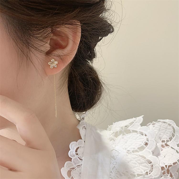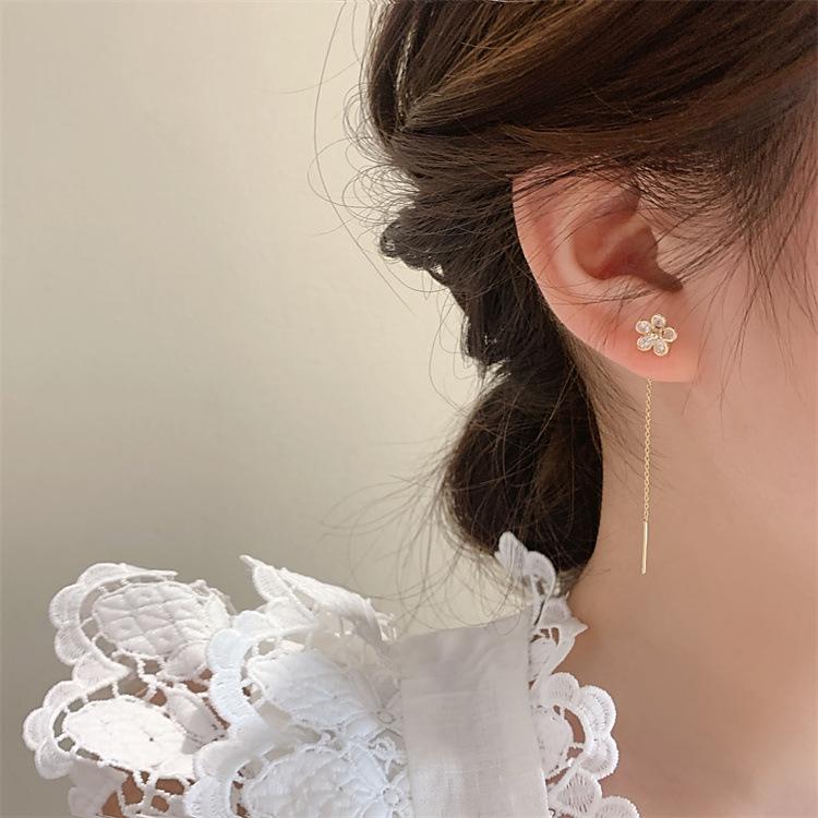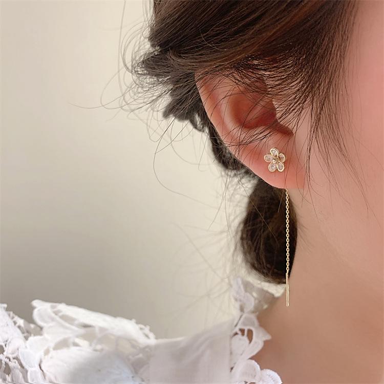 Aretes Coreanos de Alta Gama con Borla de Flores para Mujer 2025 Nuevos Aretes de Diseño Nicho Modernos para Modificar el Rostro y Alambre