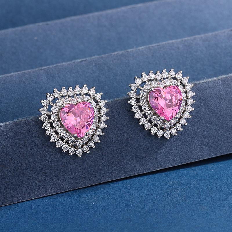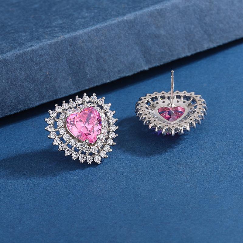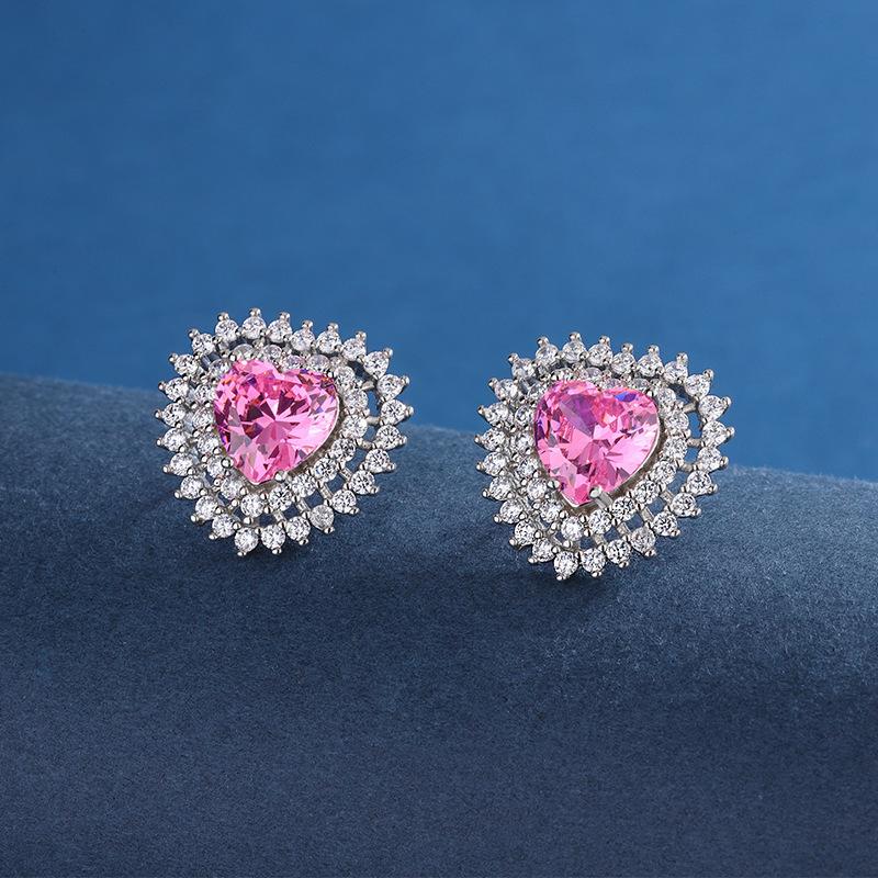 Pendientes de Corazón de Durazno Nuevos de AliExpress Transfronterizo Pendientes de Mujer Estilo Bosque Combinan con Todo Circonita Rosa Amor Celebridad de Internet Mismo Estilo Pendientes