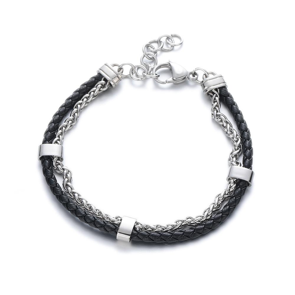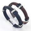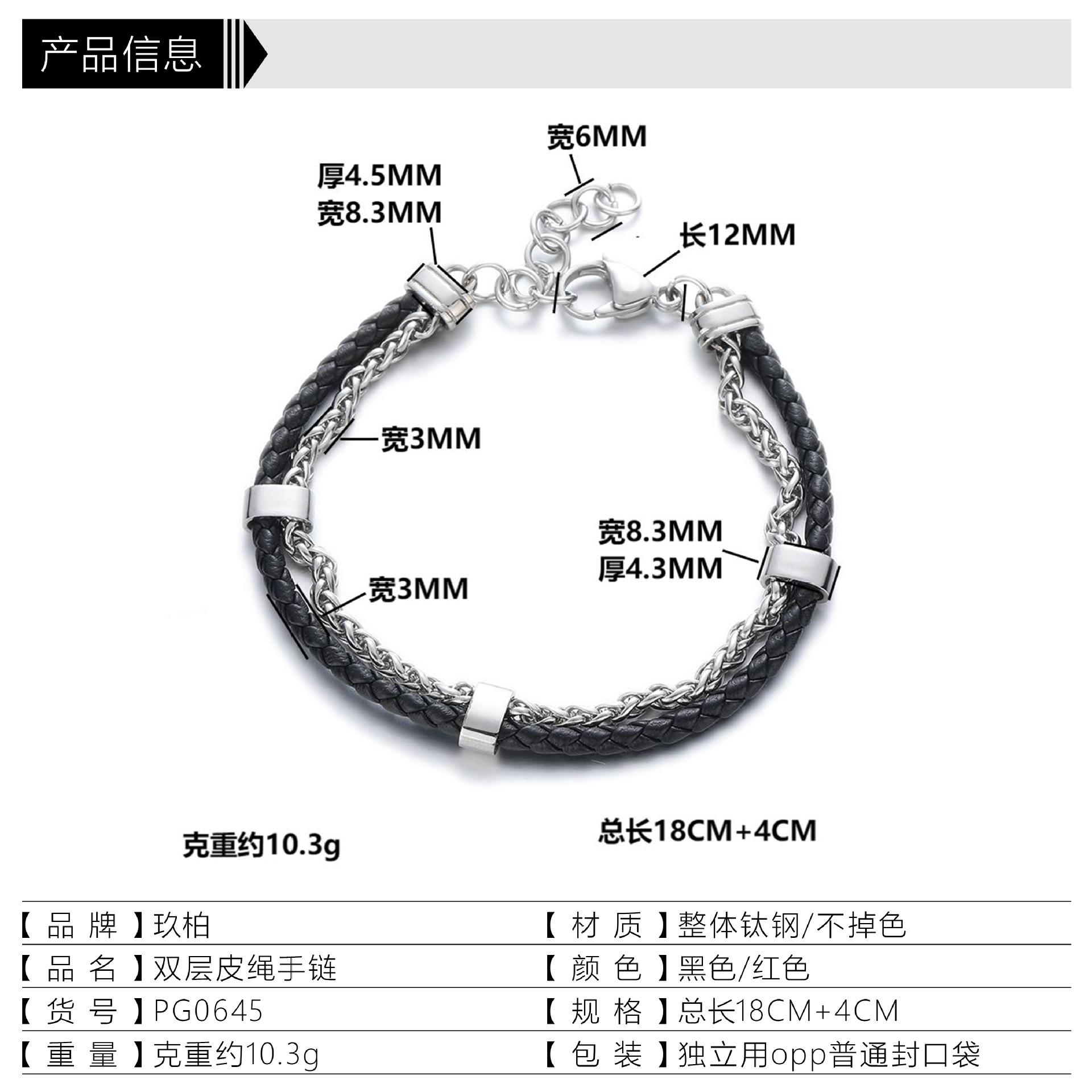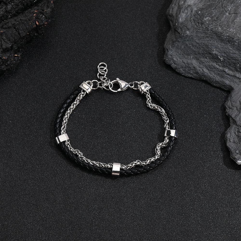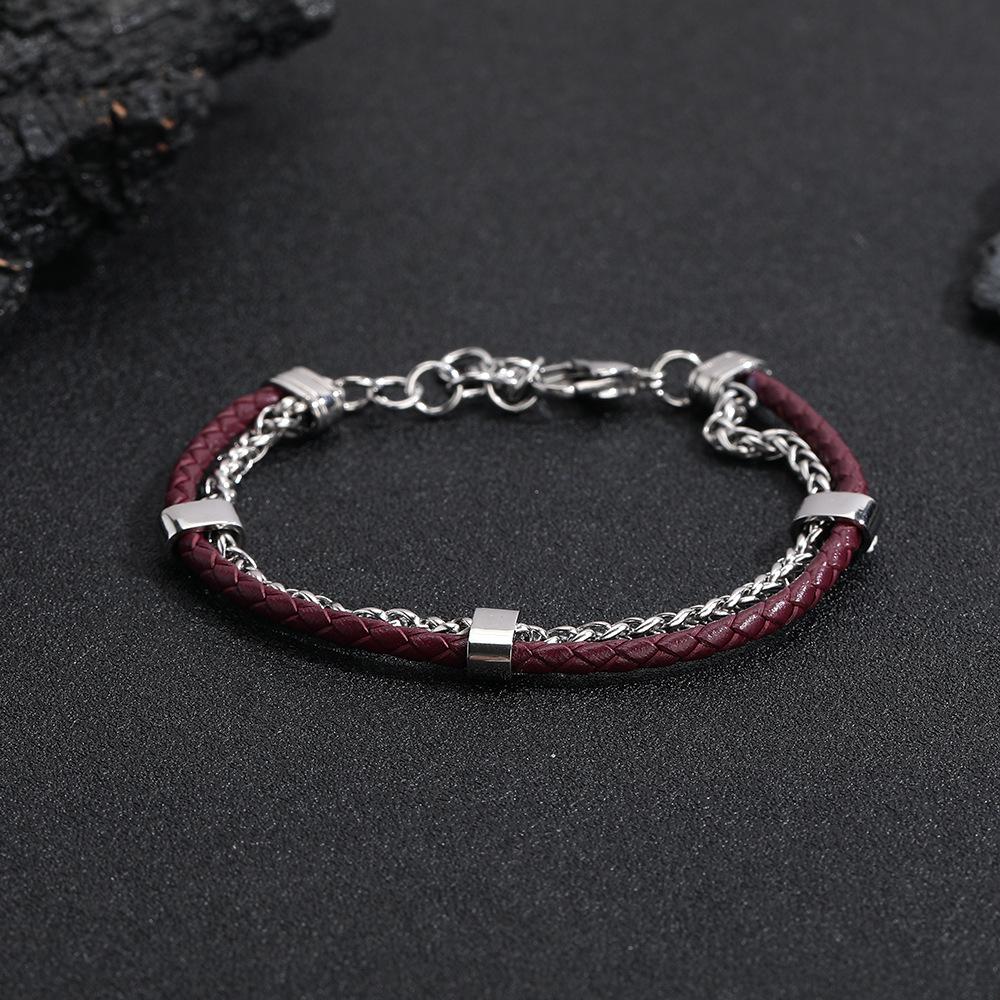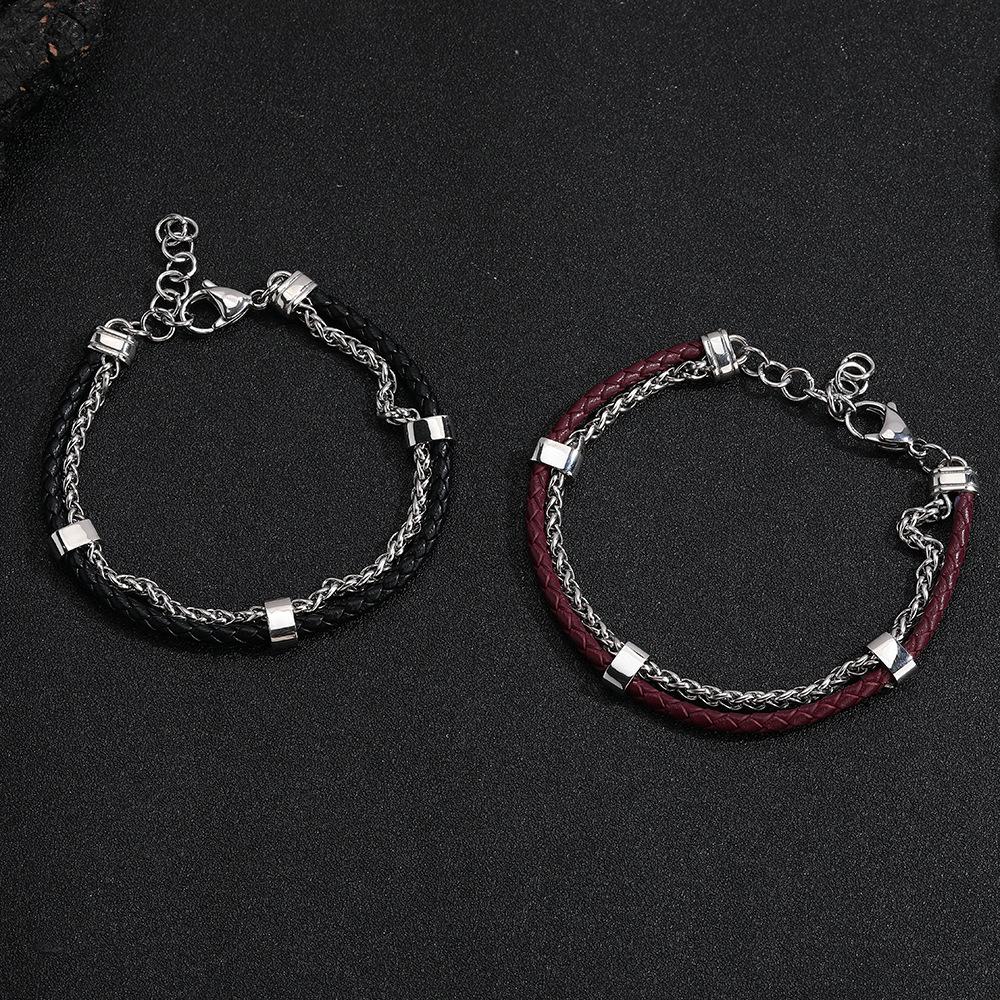 Pulsera transfronteriza nueva de acero de titanio de doble capa con cuerda de cuero, marca de moda, cuerda de mano para pareja, un par con sentido de alto nivel, no se decolora, pulsera para combinar con todo