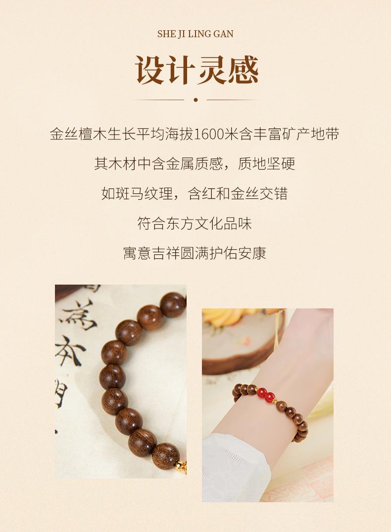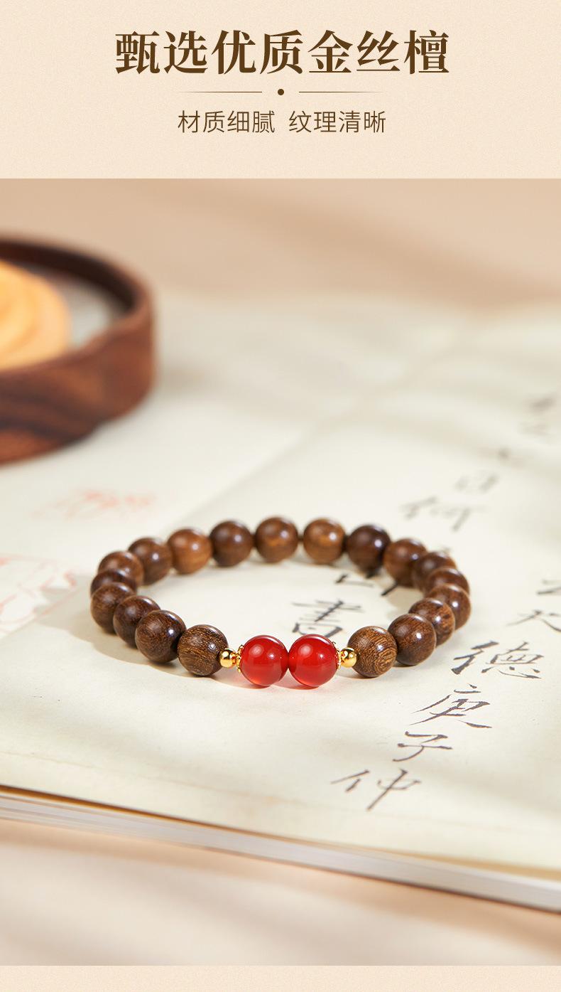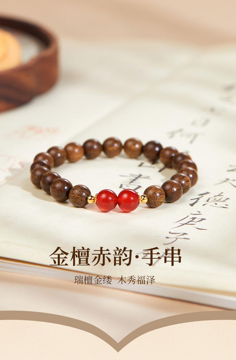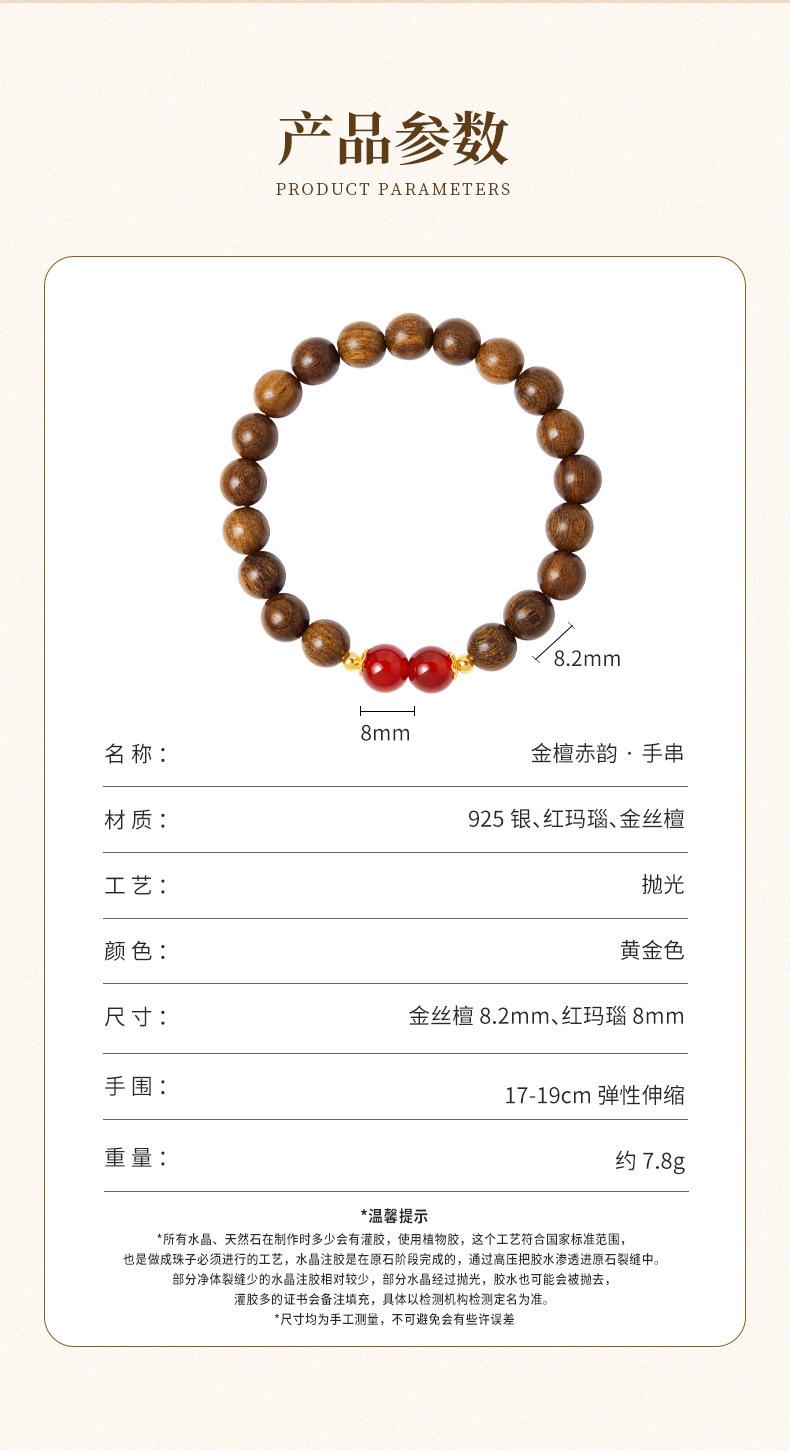 Golden sandalwood red rhyme bracelet, Golden sandalwood red rhyme bracelet + certificate