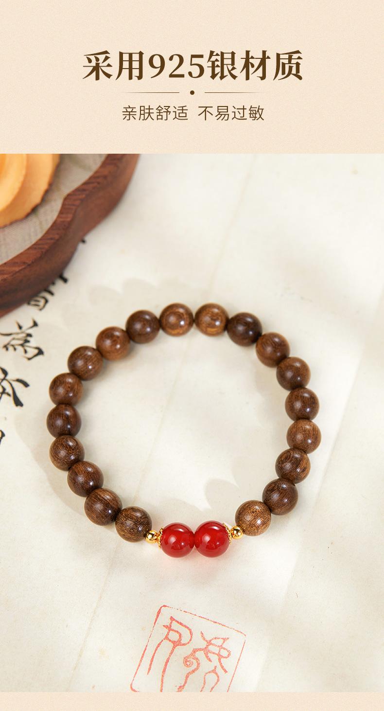 Pulsera de plata de ley S925 con sándalo, seda dorada y ágata roja para mujer, estilo étnico chino, diseño de alta gama.