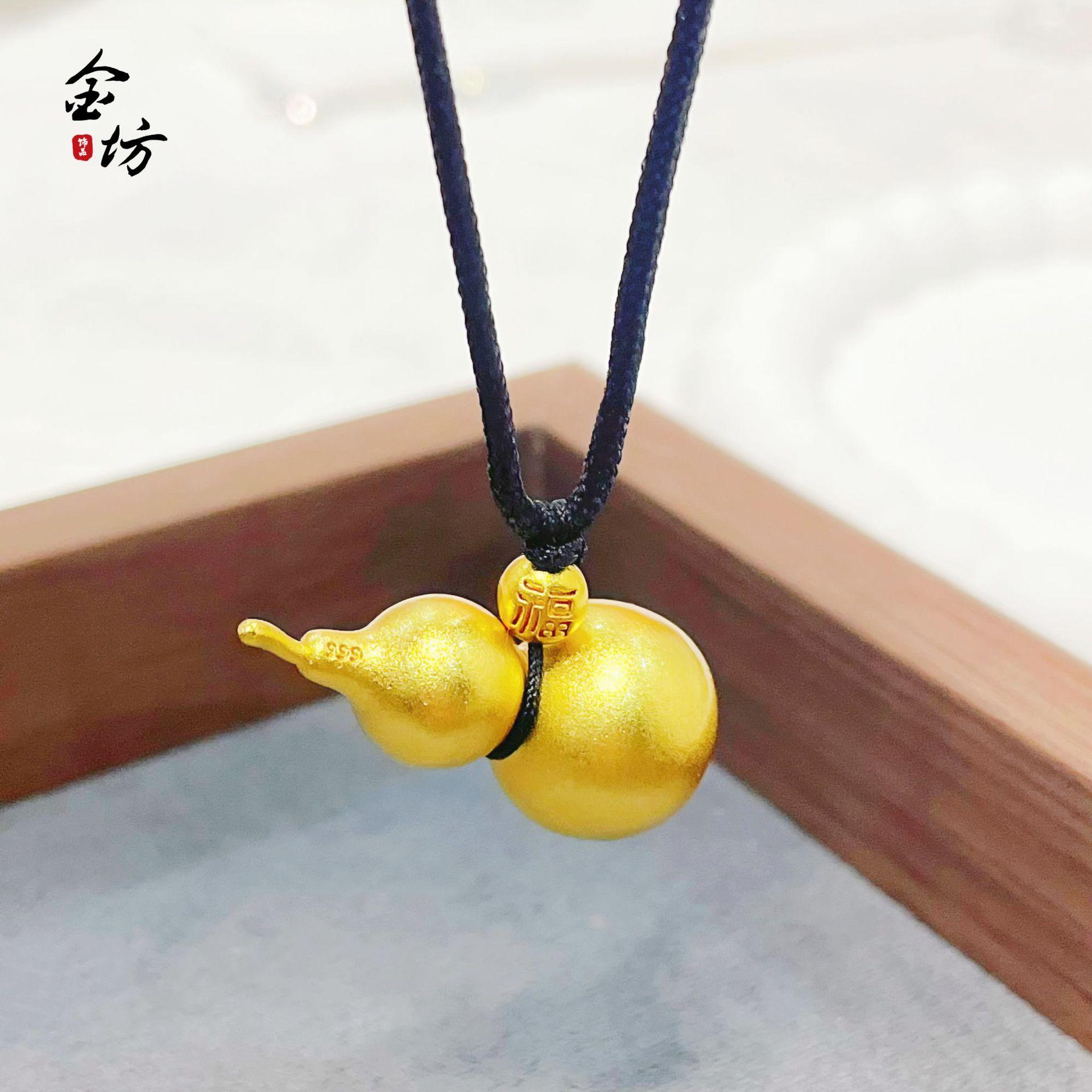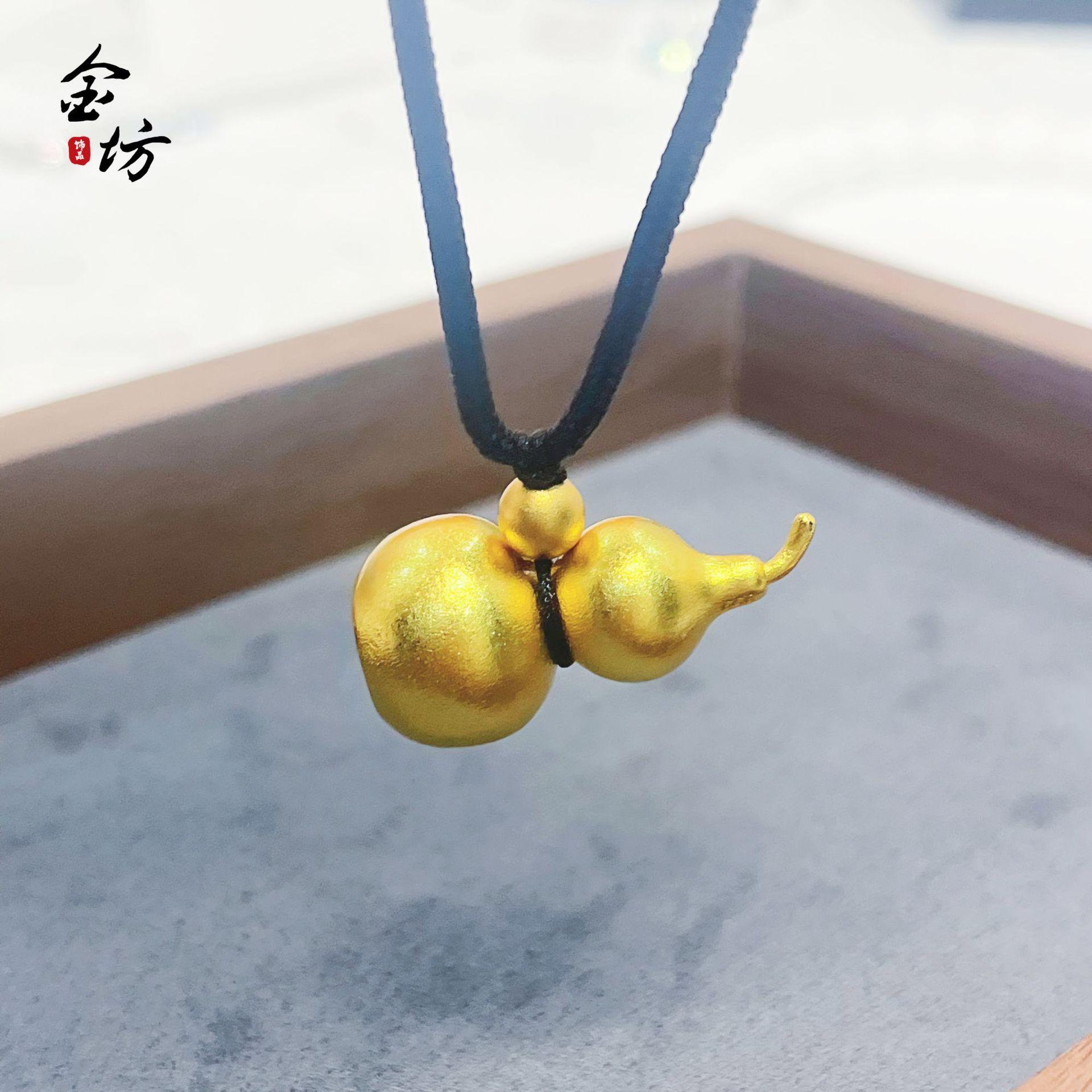 Tienda de oro del mismo estilo, estilo antiguo, arena dorada, Fu Lu, doble colgante de calabaza de la fortuna completa, joyería para hombres y mujeres, accesorios de bricolaje al por mayor