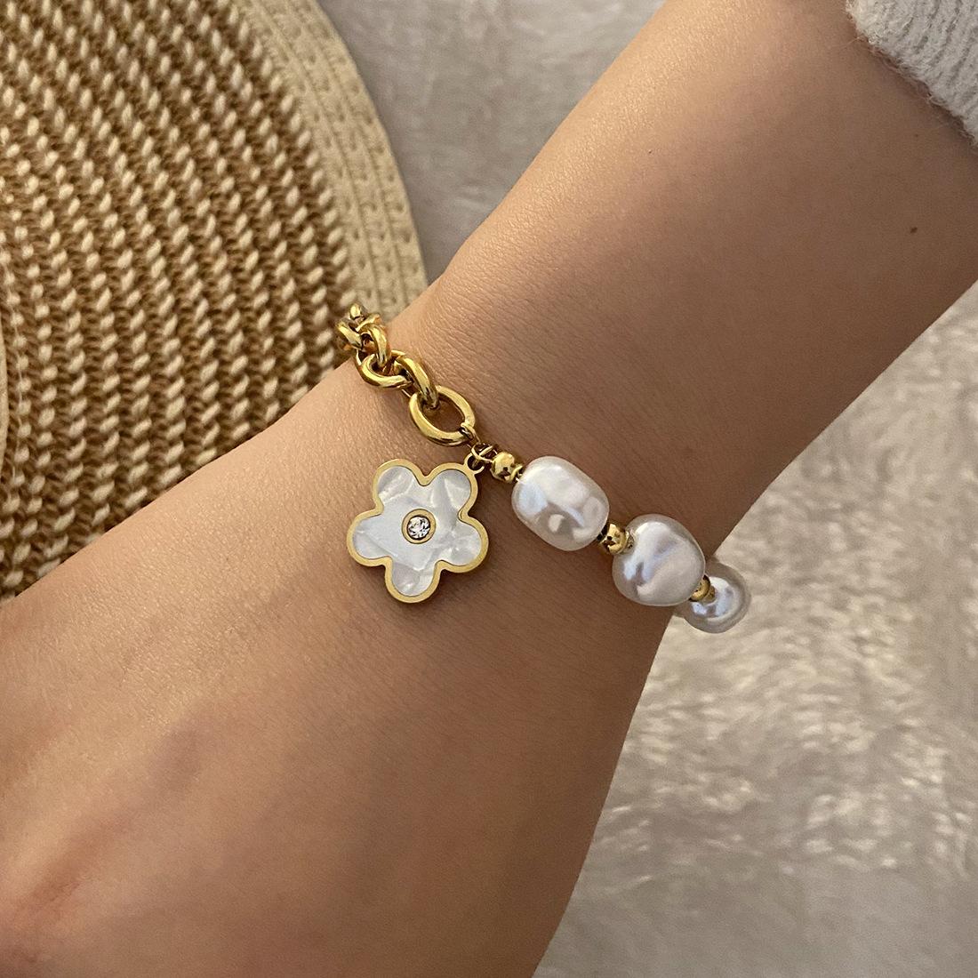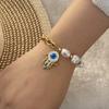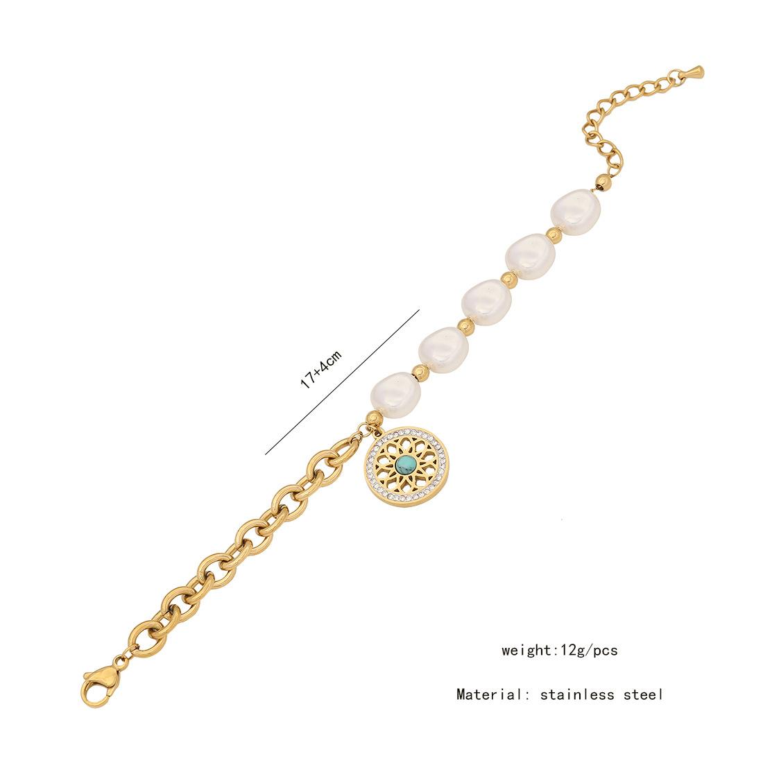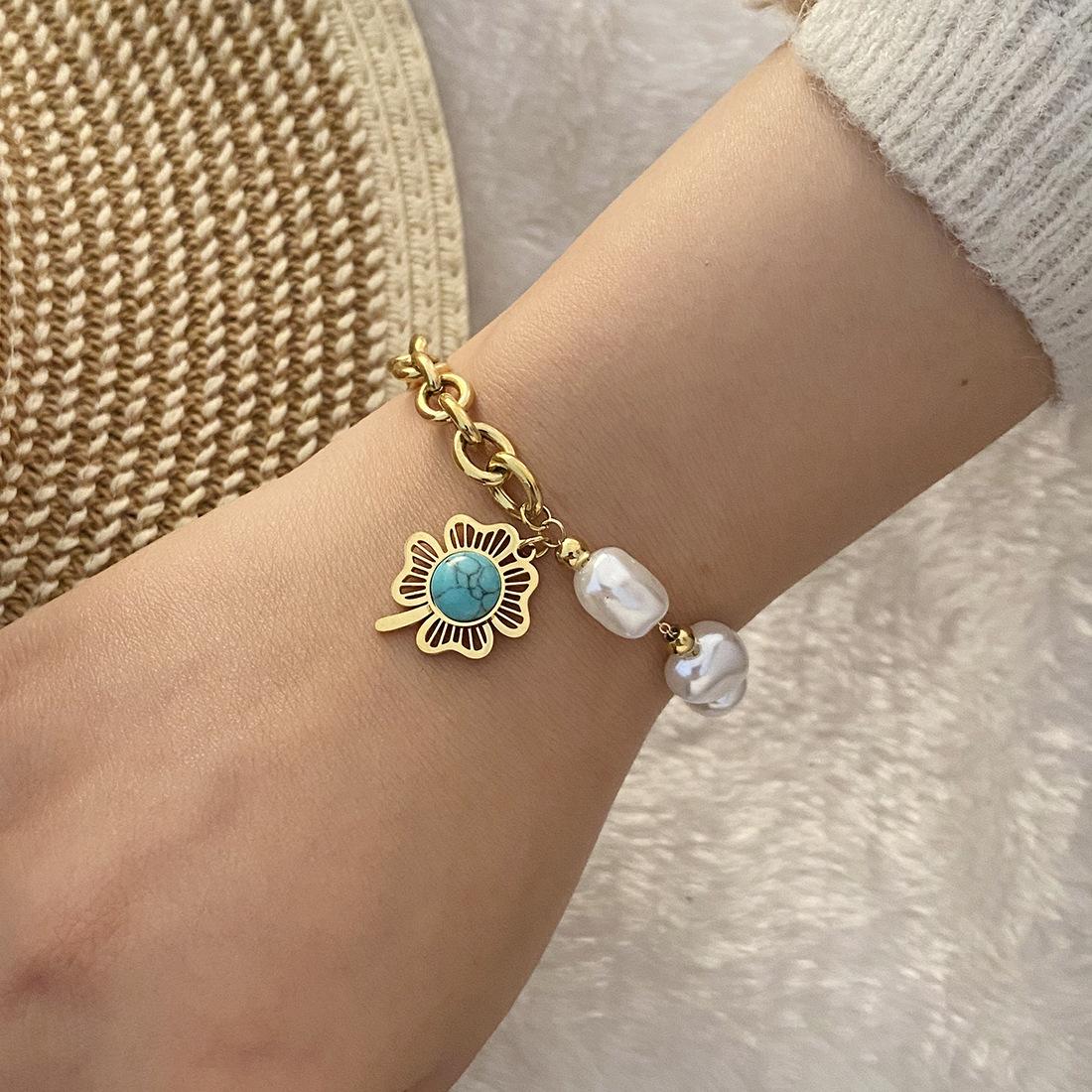 [Ice Cute] Pulsera de Acero Inoxidable con Palma de Perlas Pulsera de Flor Turquesa Joyería Nueva Transfronteriza Europea y Americana B548