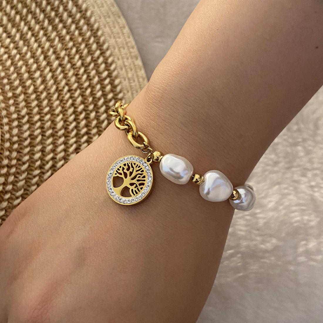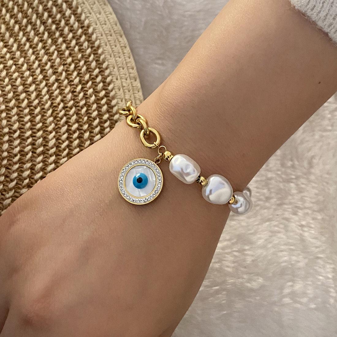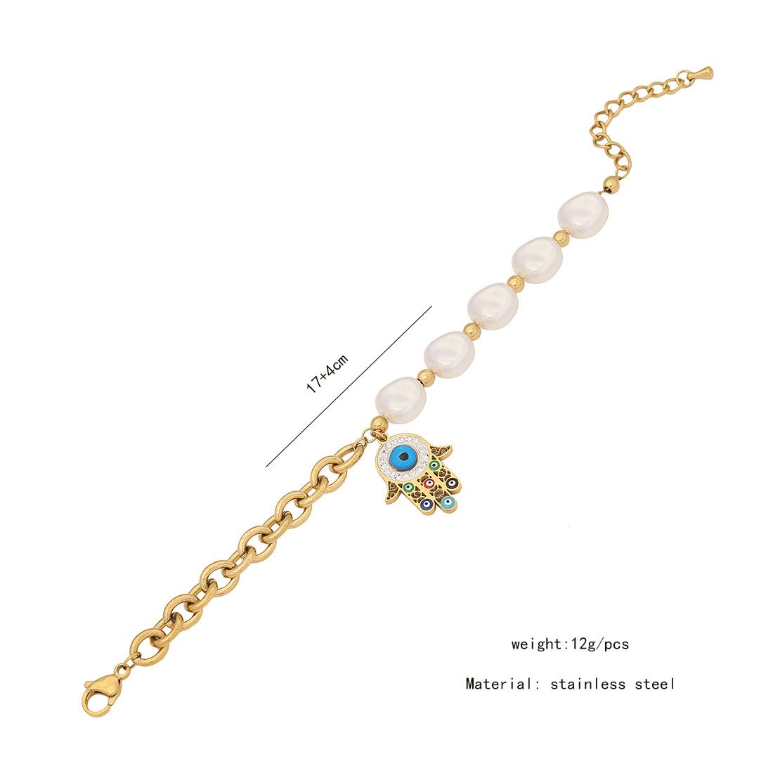 [Ice Cute] Pulsera de Acero Inoxidable con Palma de Perlas Pulsera de Flor Turquesa Joyería Nueva Transfronteriza Europea y Americana B548