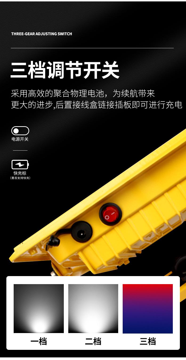 60W rechargeable portable floodlight [DC direct charging + red and blue flash + three-speed mode]
