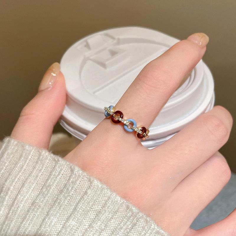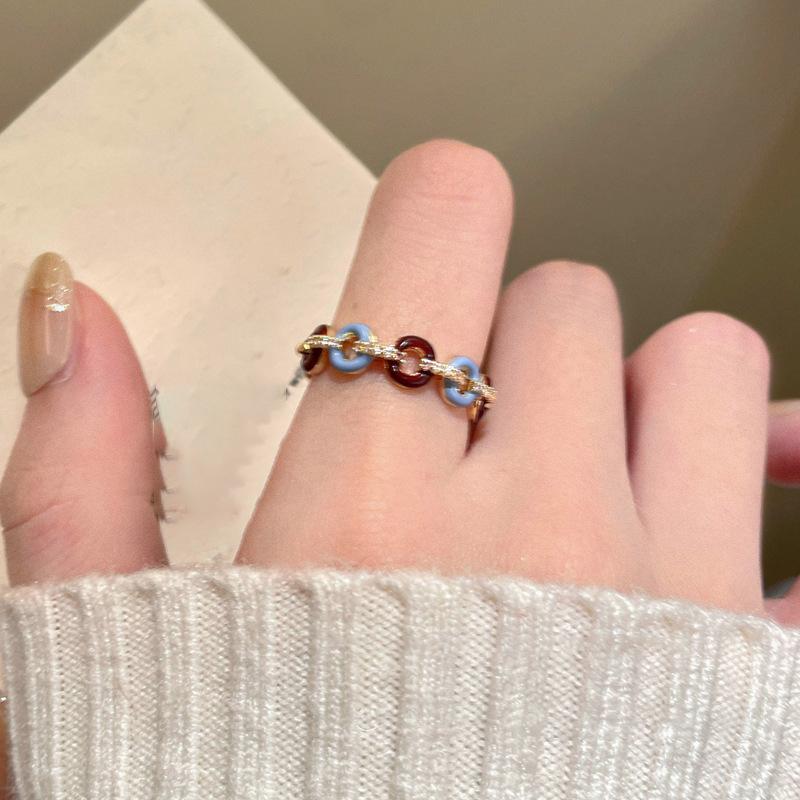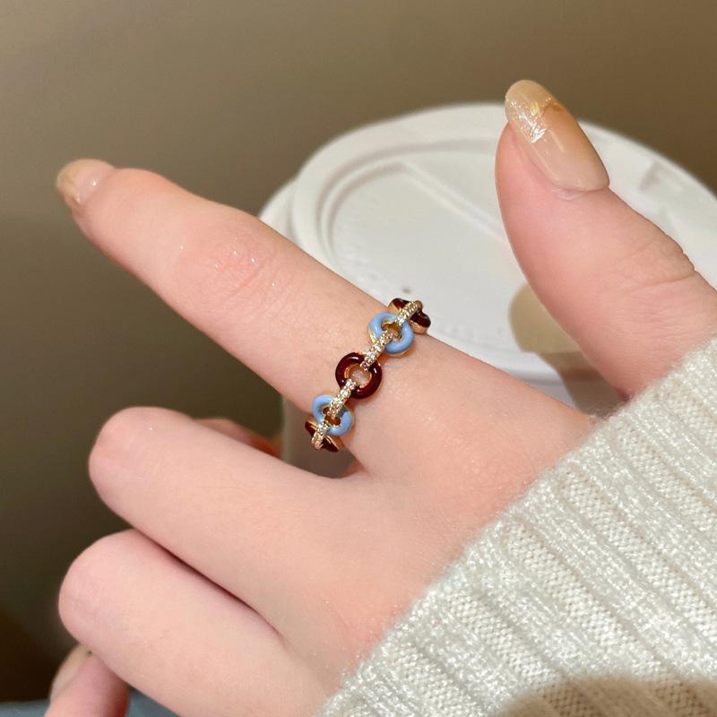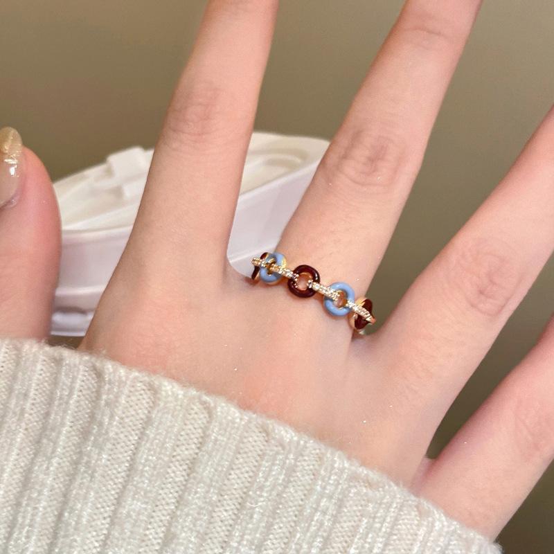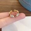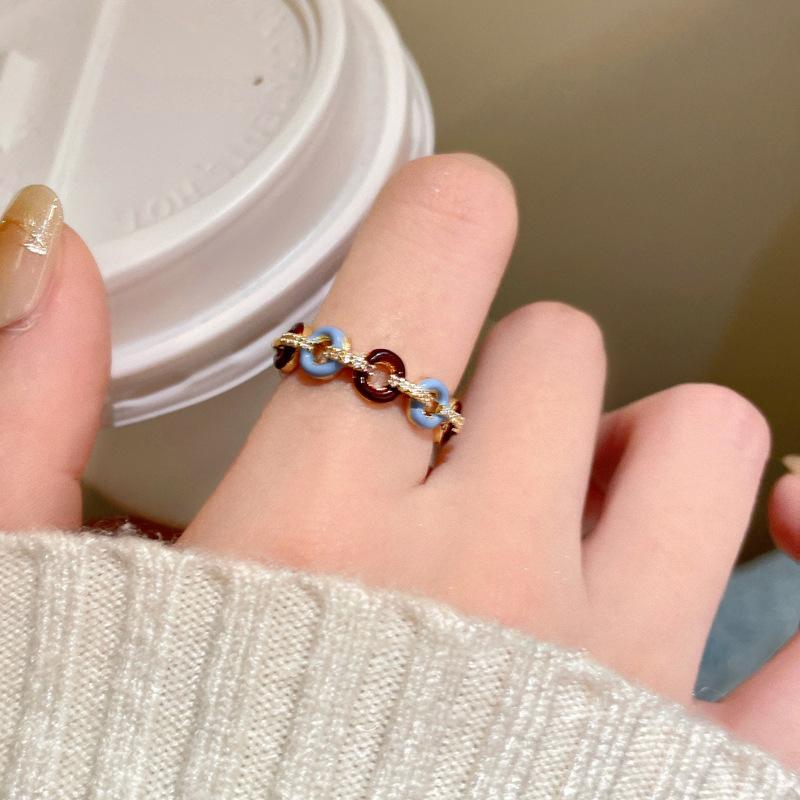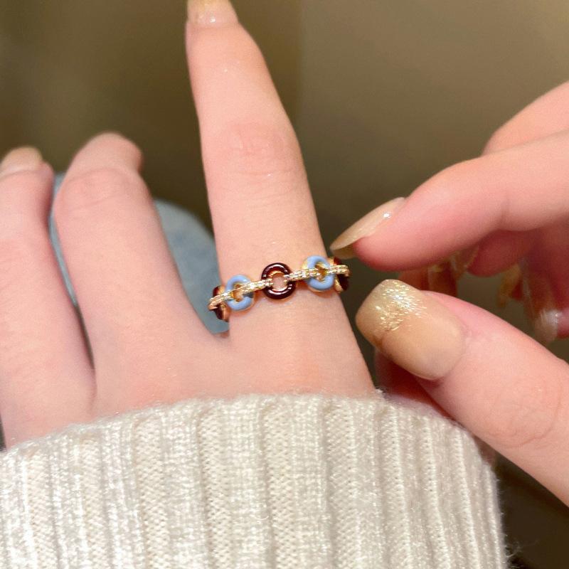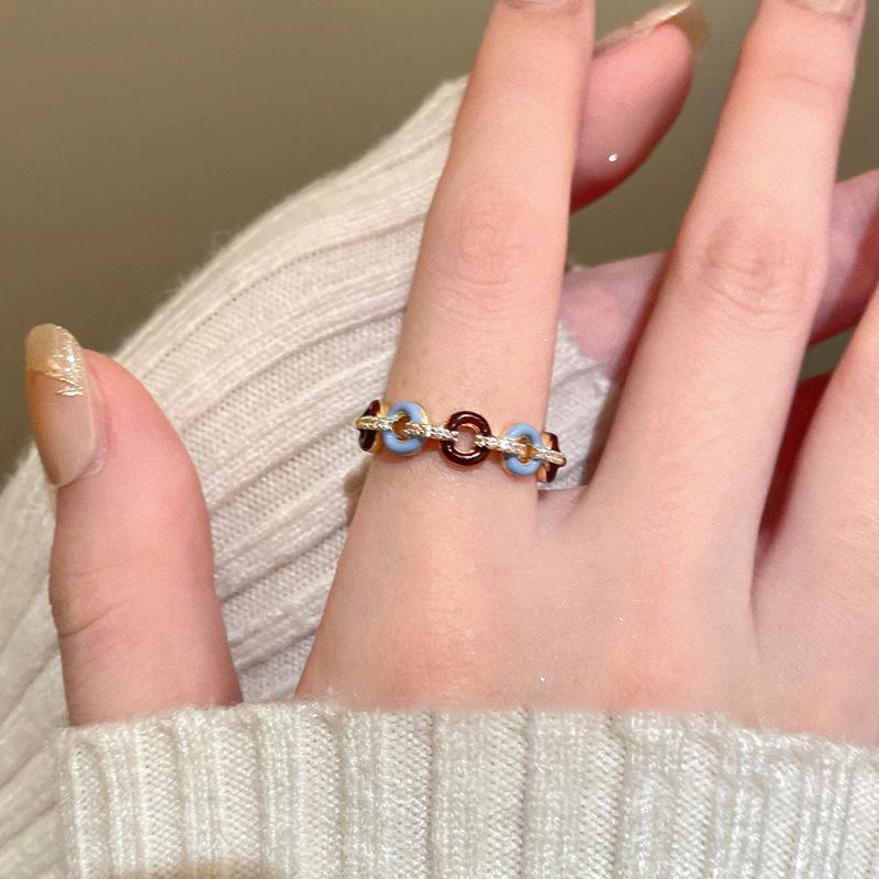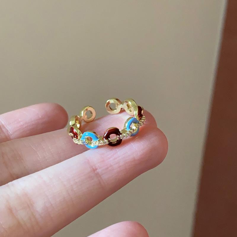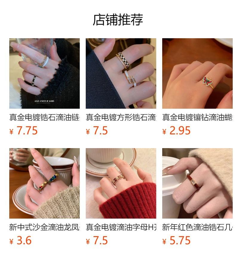Anillo abierto con botón de gota de aceite, chapado en oro auténtico, estilo francés, retro, de alta calidad, ligero, de lujo, elegante, joyería para mujer.