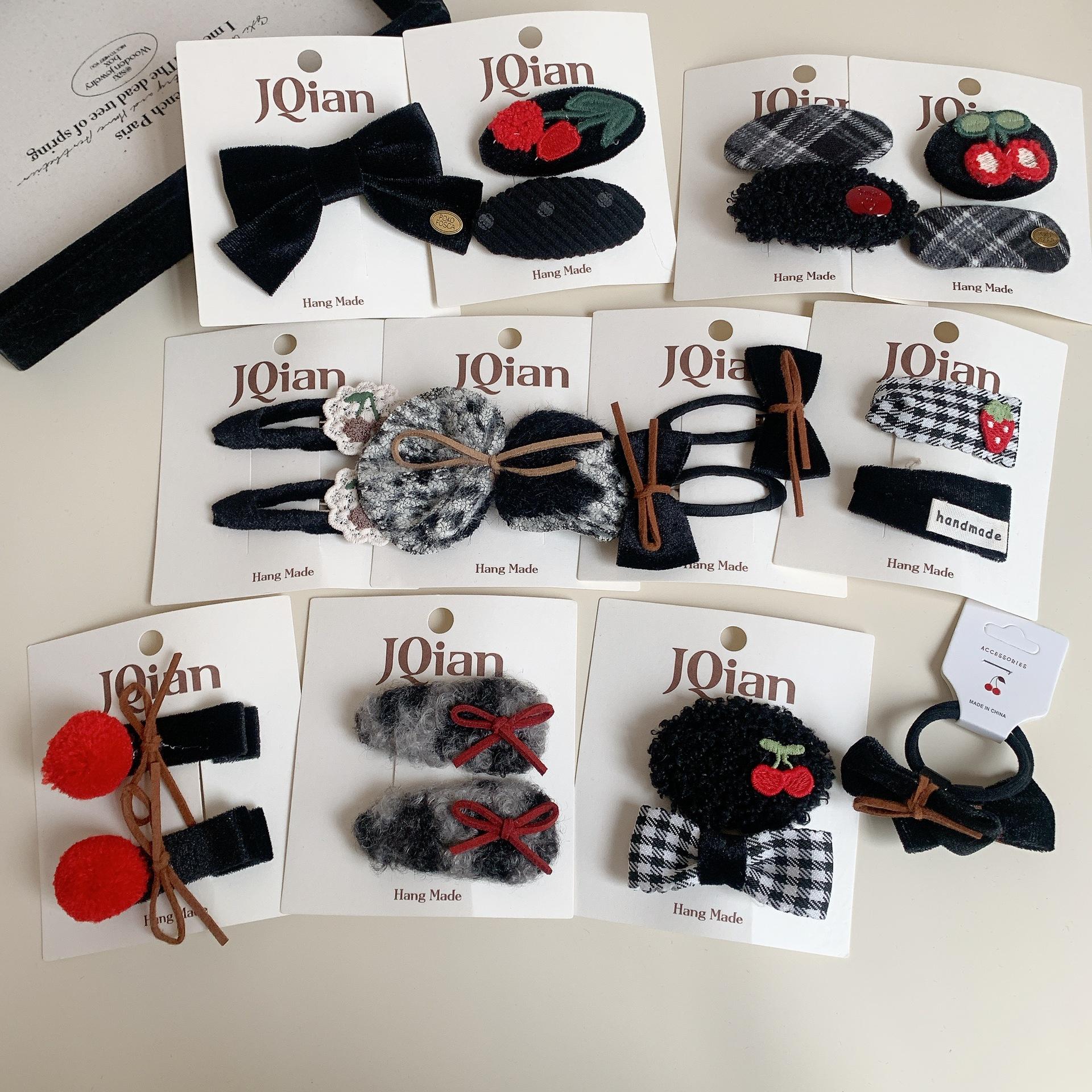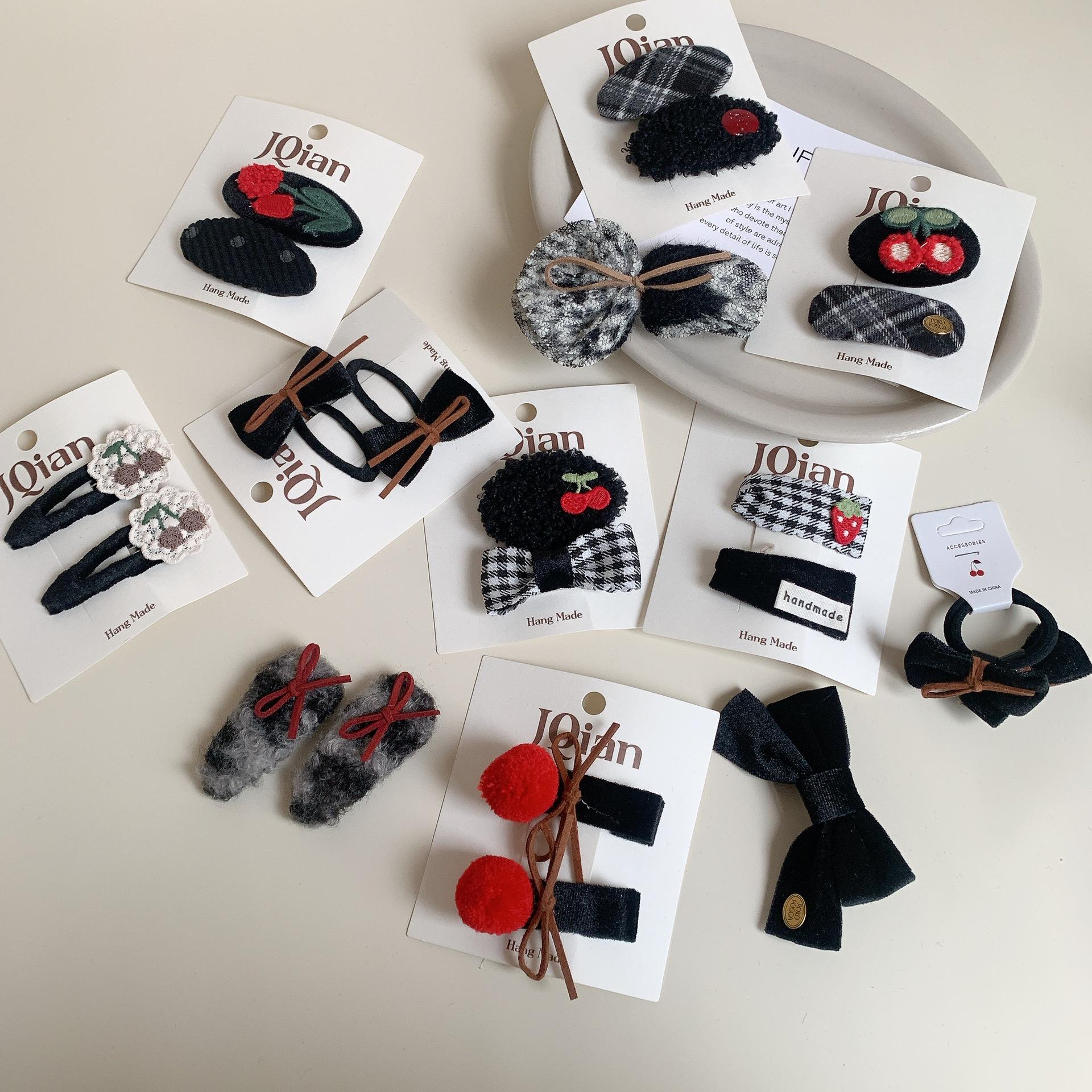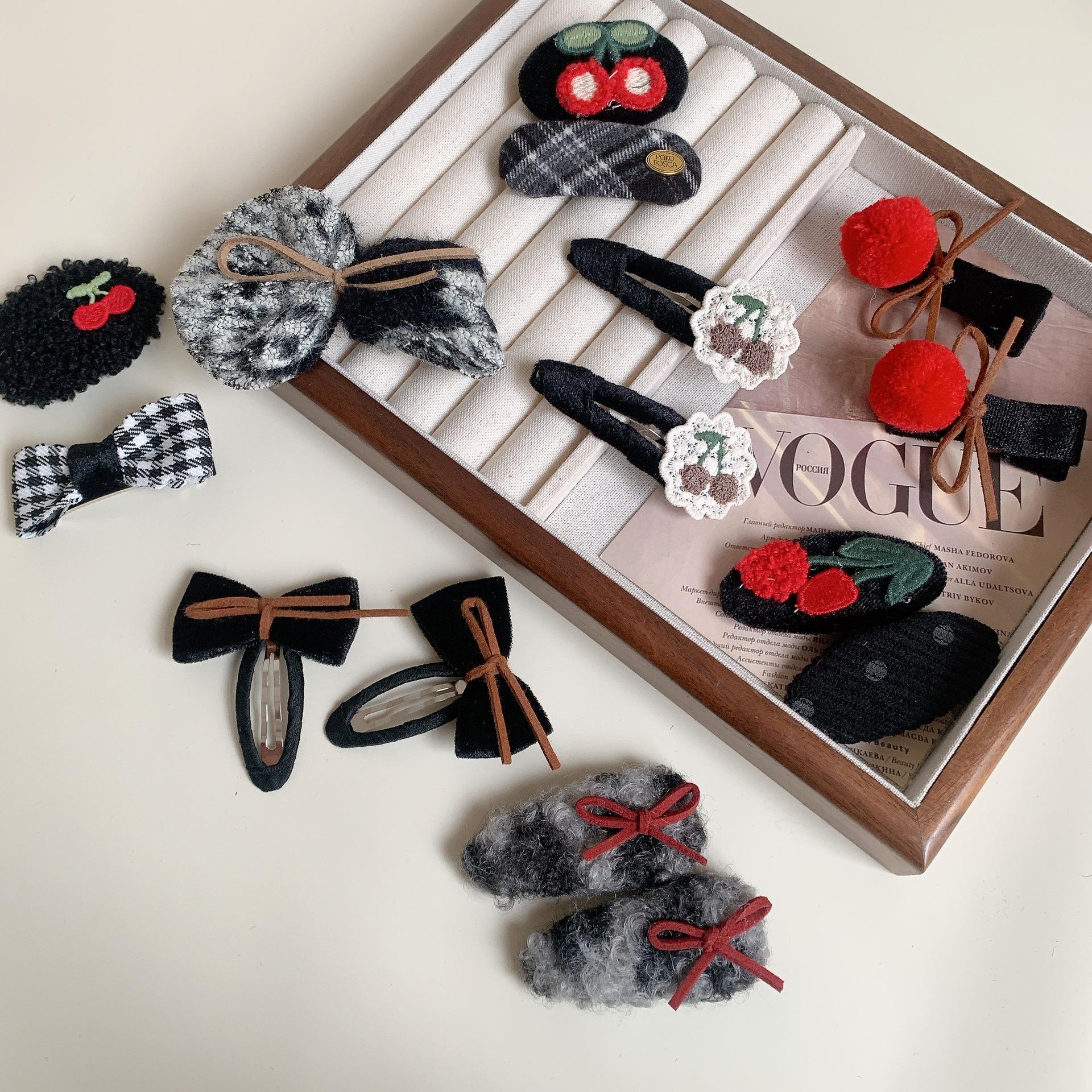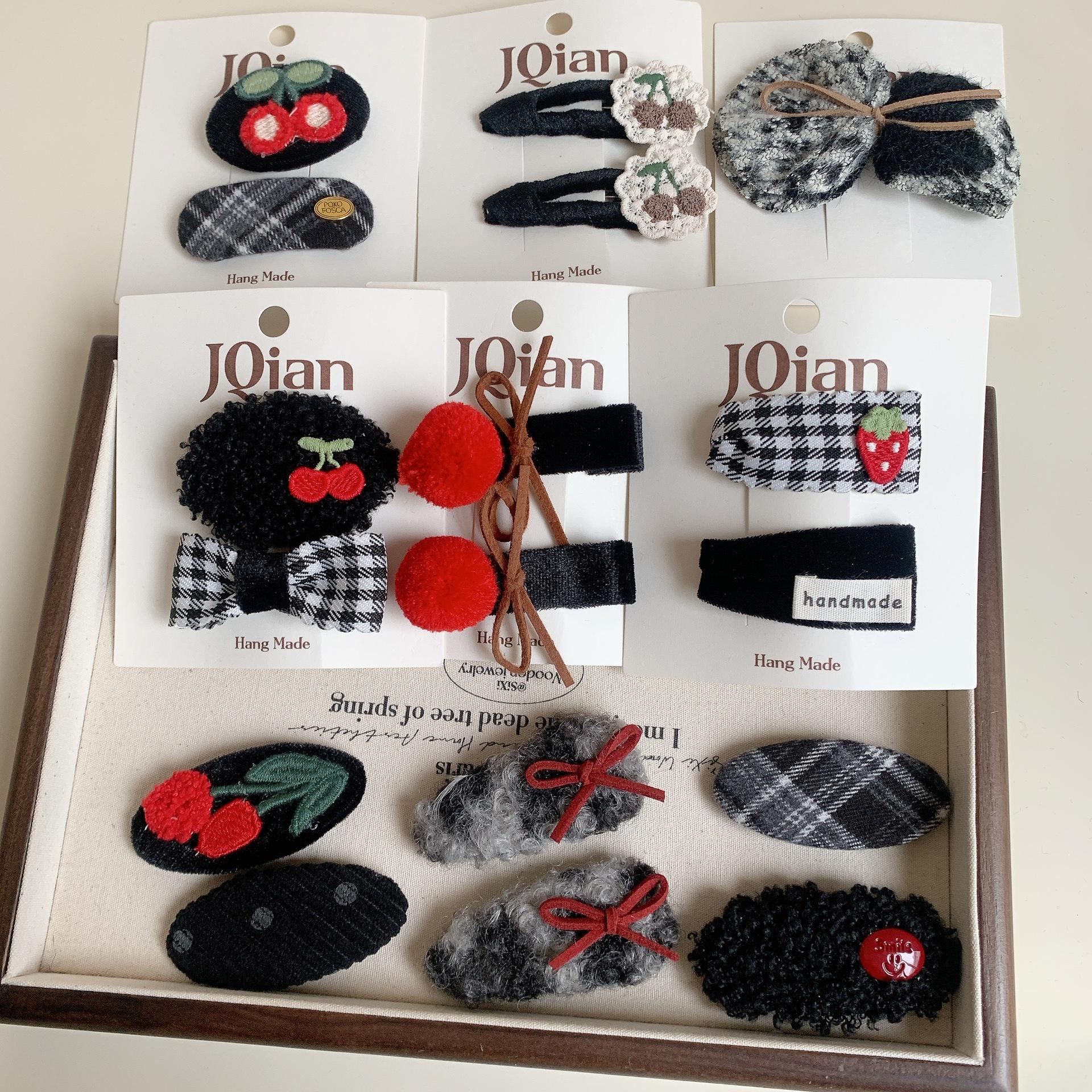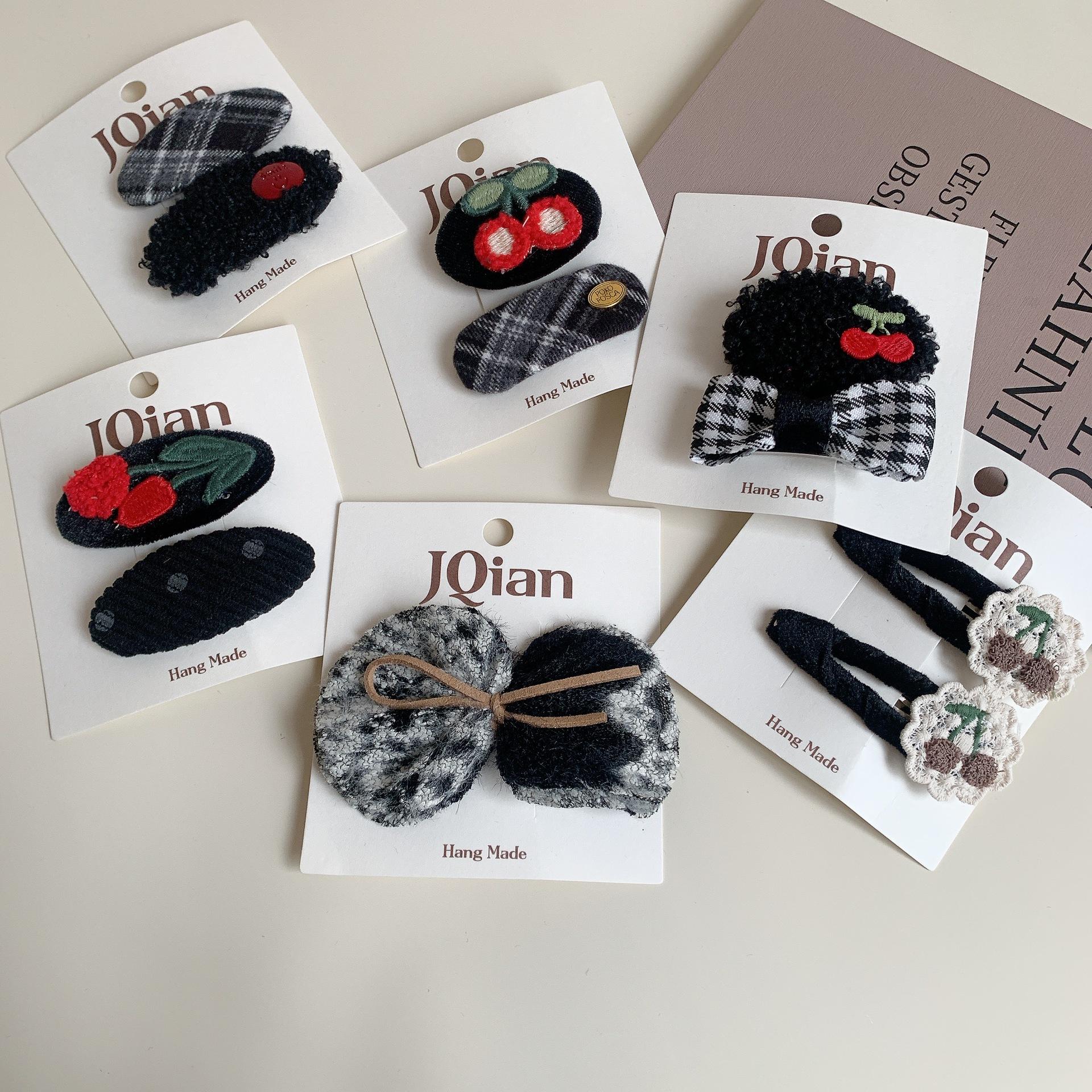 Compra Pinza para el cabello con lazo de cuadros Otoño e Invierno Festival de Año Nuevo Blanco y Negro Niñas Cereza Lana Clip Lateral Clip BB Banda para el cabello para niñas al por mayor en Joom.pro