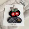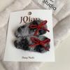 Pinza para el cabello con lazo de cuadros Otoño e Invierno Festival de Año Nuevo Blanco y Negro Niñas Cereza Lana Clip Lateral Clip BB Banda para el cabello para niñas