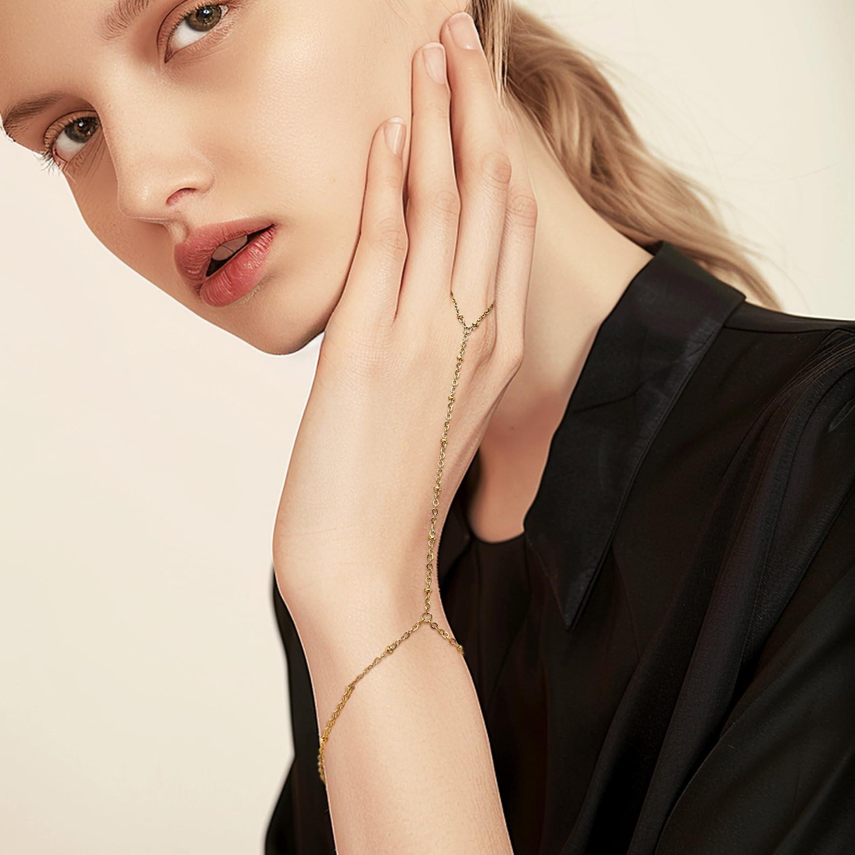 Pulsera de Dedo de Línea Simple de Moda Transfronteriza Europea y Americana Acero Inoxidable Chapado en Oro Real de 18K Pulsera para Mujer