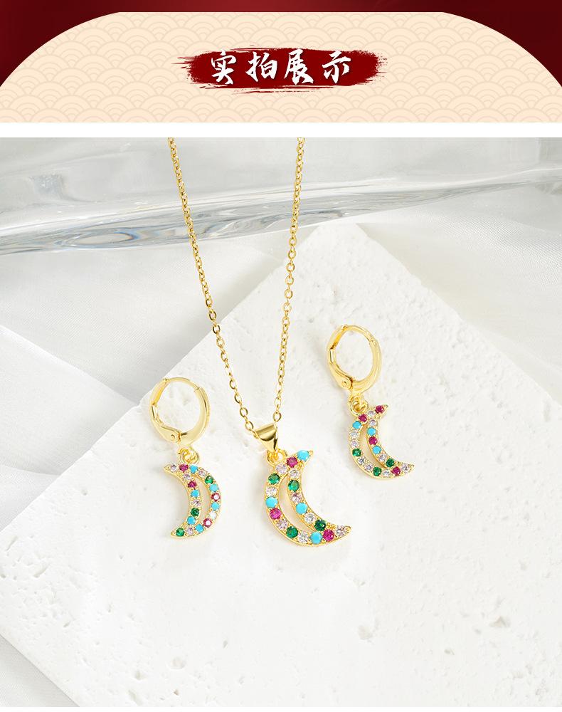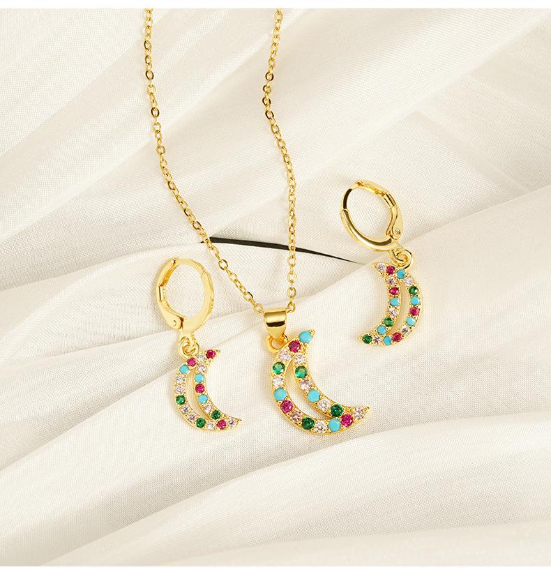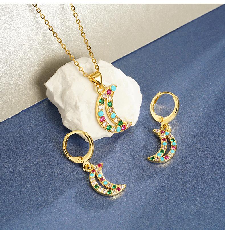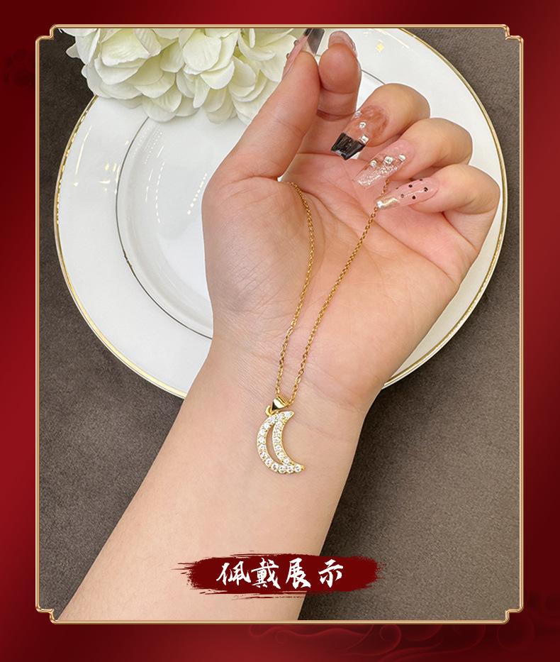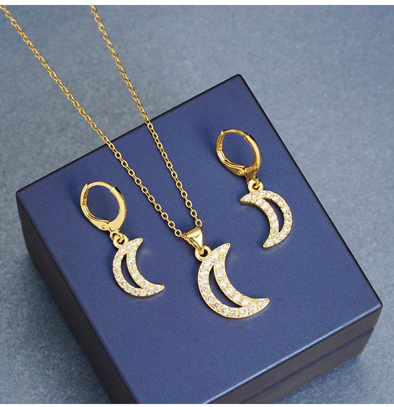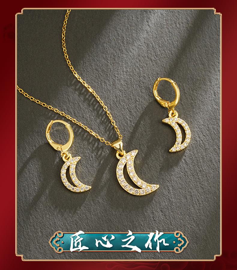 Collar Transfronterizo Chapado en Oro de 18K Estilo Medio Oriente, Japonés y Coreano, Aretes de Luna Estilo Lujo Ligero, Joyería de Diseño para Mujer al Mayoreo