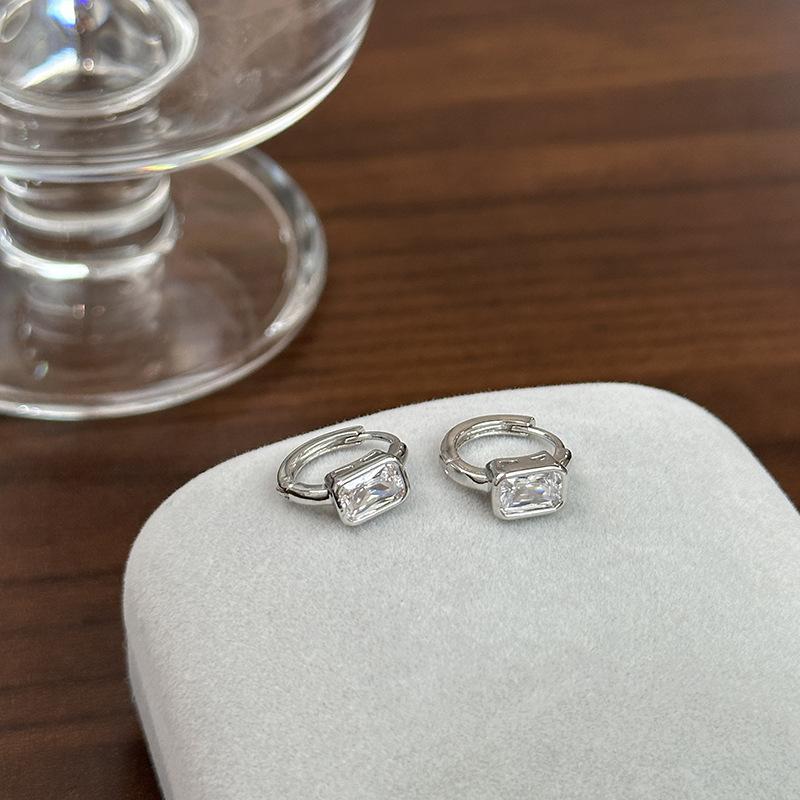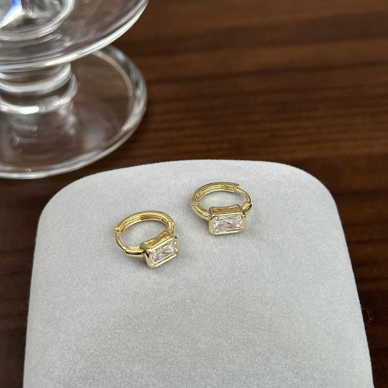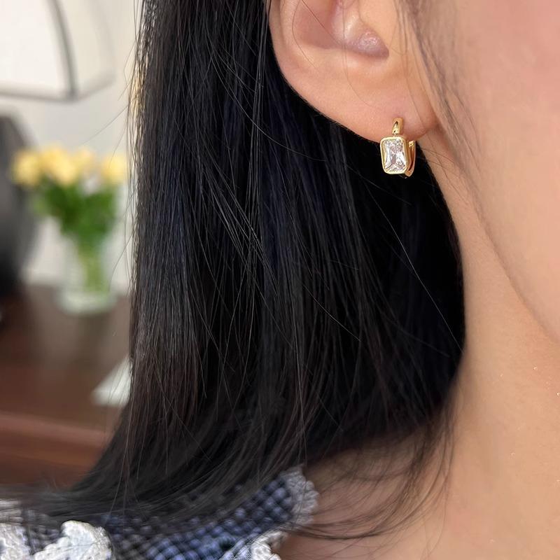 Pendientes de Aro de Circonita de Azúcar Cuadrados Pequeños Exquisitos Nicho Lujo Ligero Combinables Elegantes Elegantes Hebilla de Oreja Nuevos Pendientes para Mujer