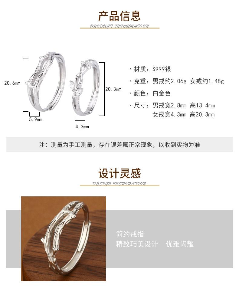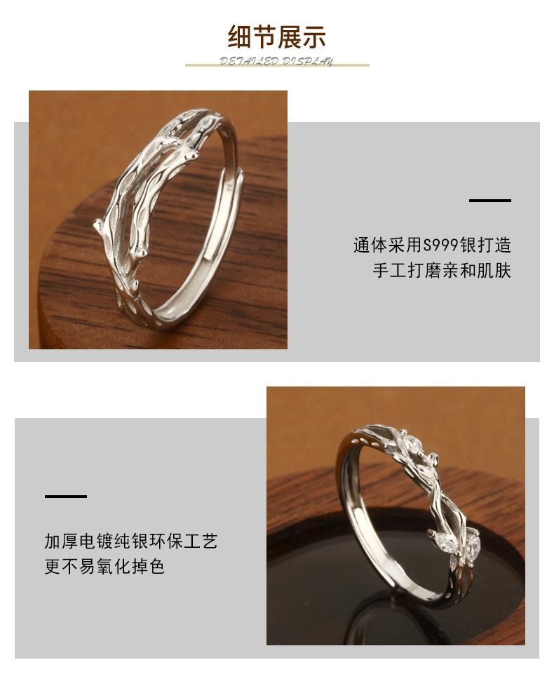 Anillo de plata de ley S999 con diseño de albaricoque y apertura ajustable.