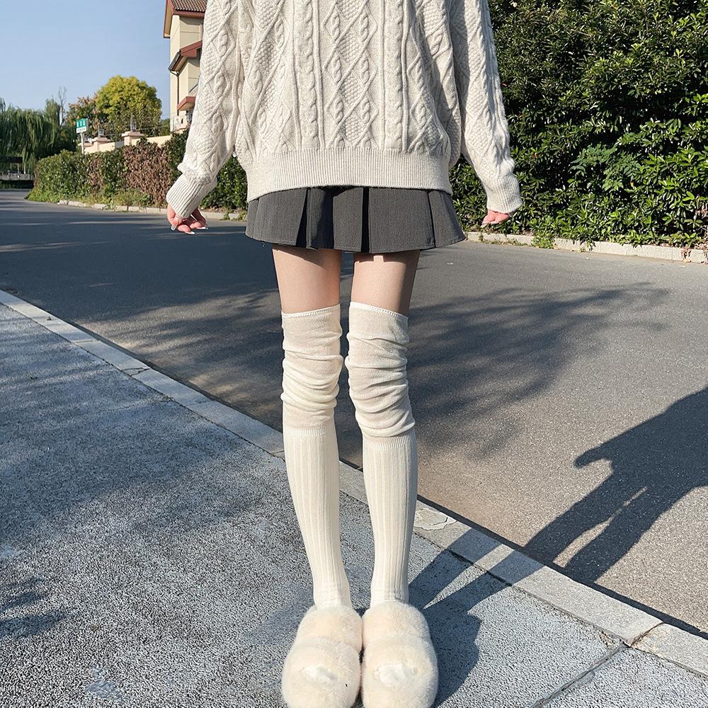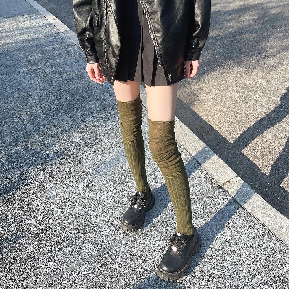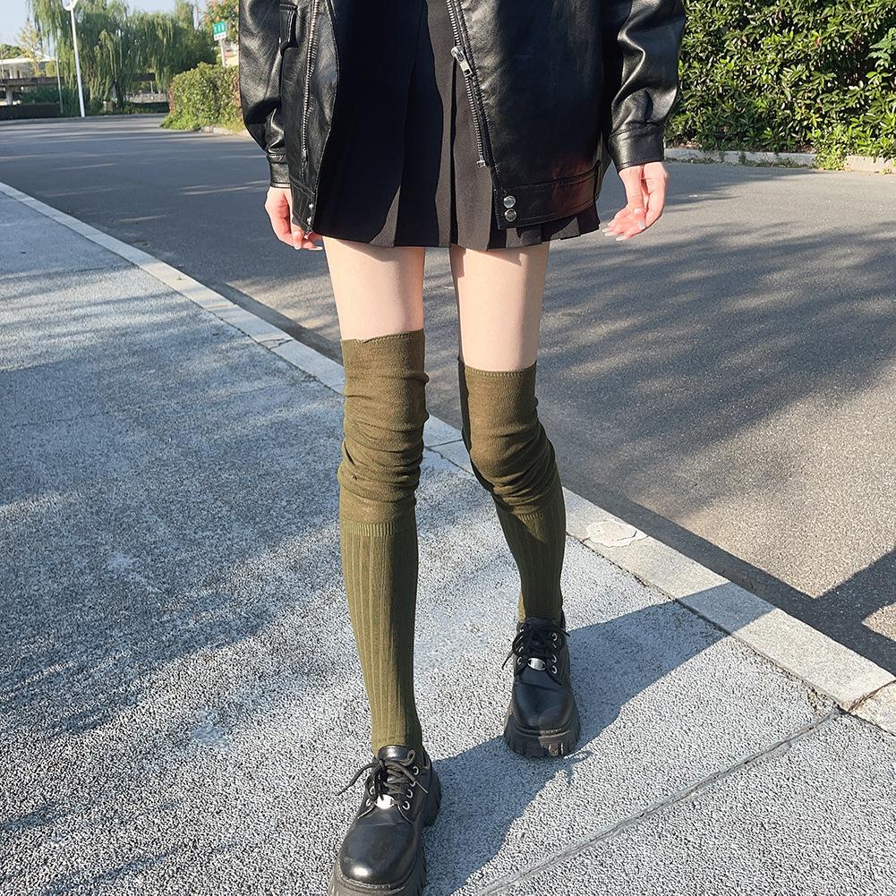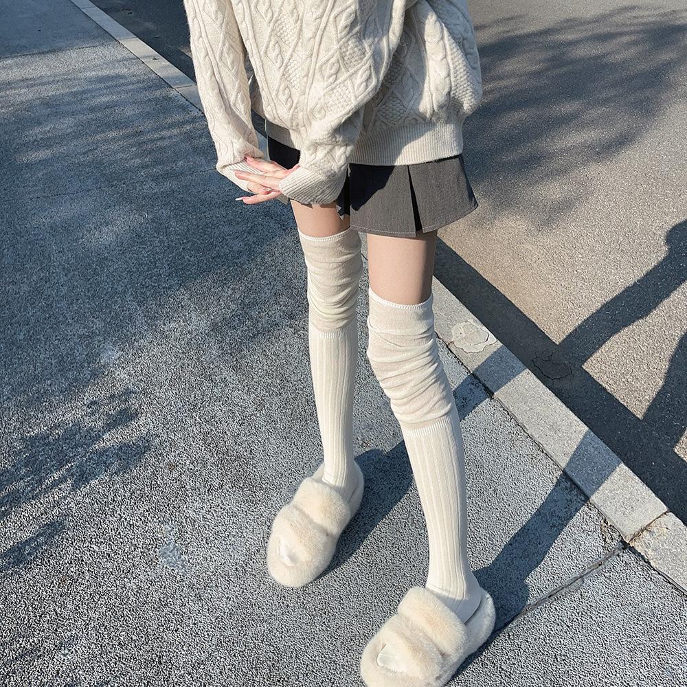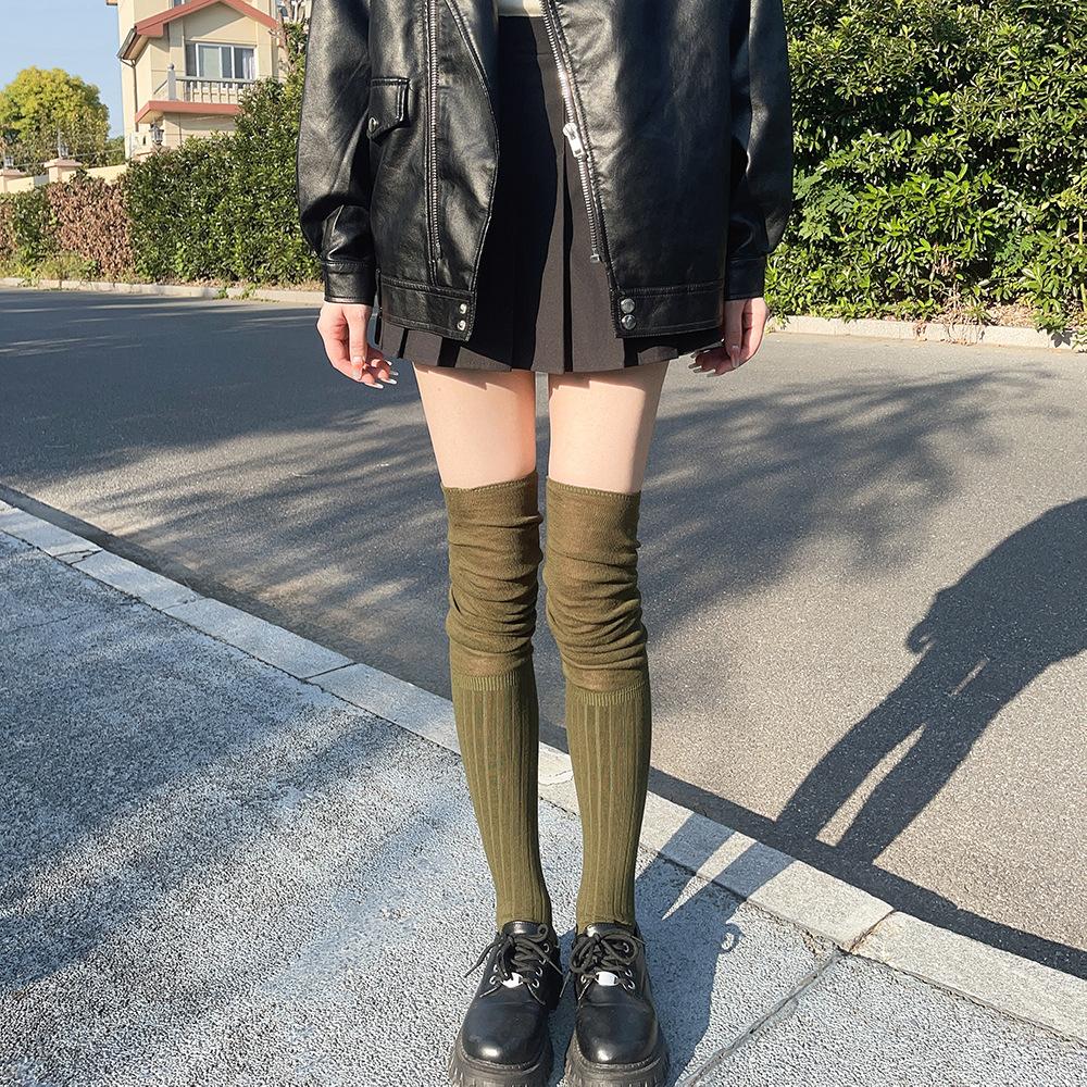 Calcetines altos hasta la rodilla de color sólido con costuras, estilo coreano simple de viento puro, patrón vertical adelgazante, calcetines altos de moda para otoño e invierno