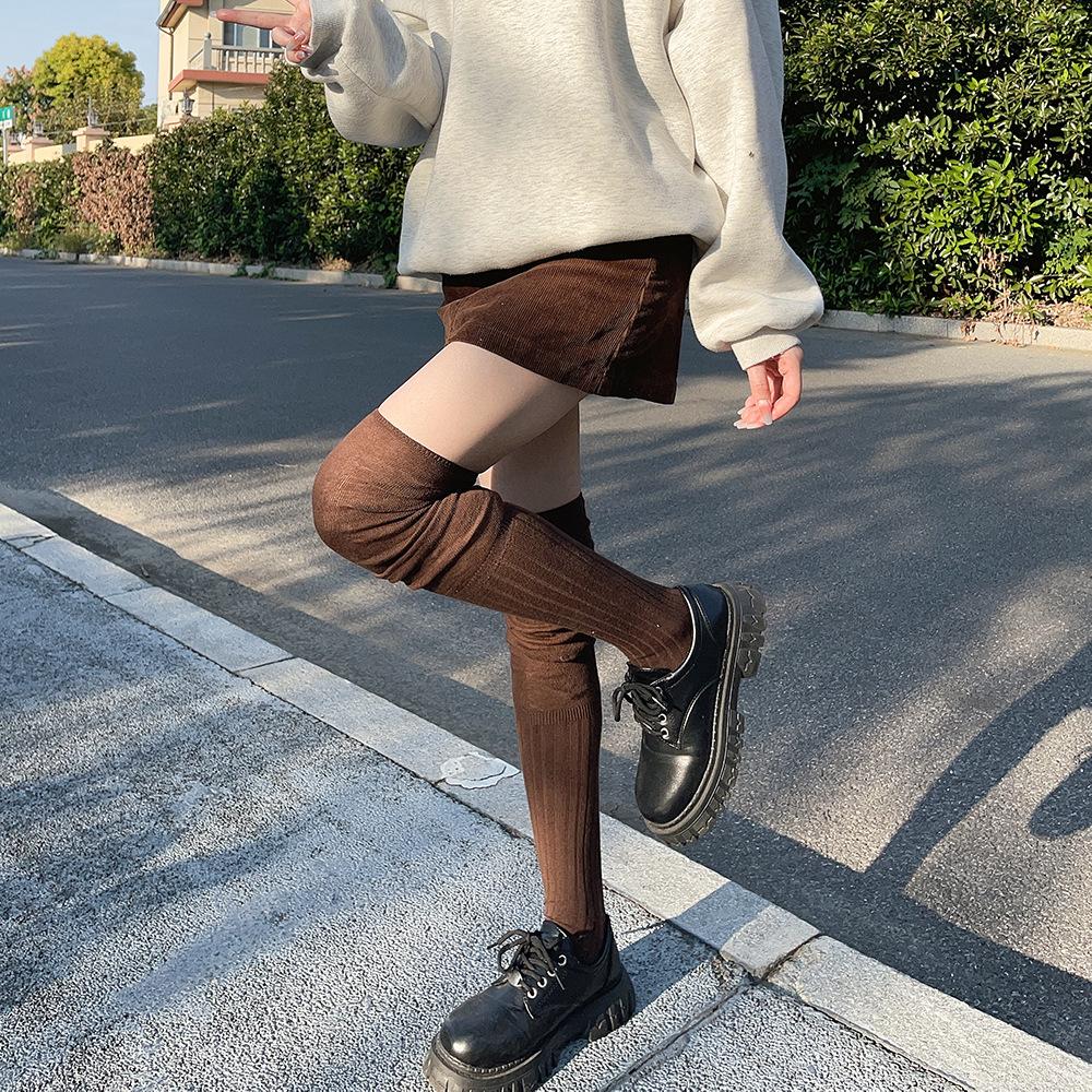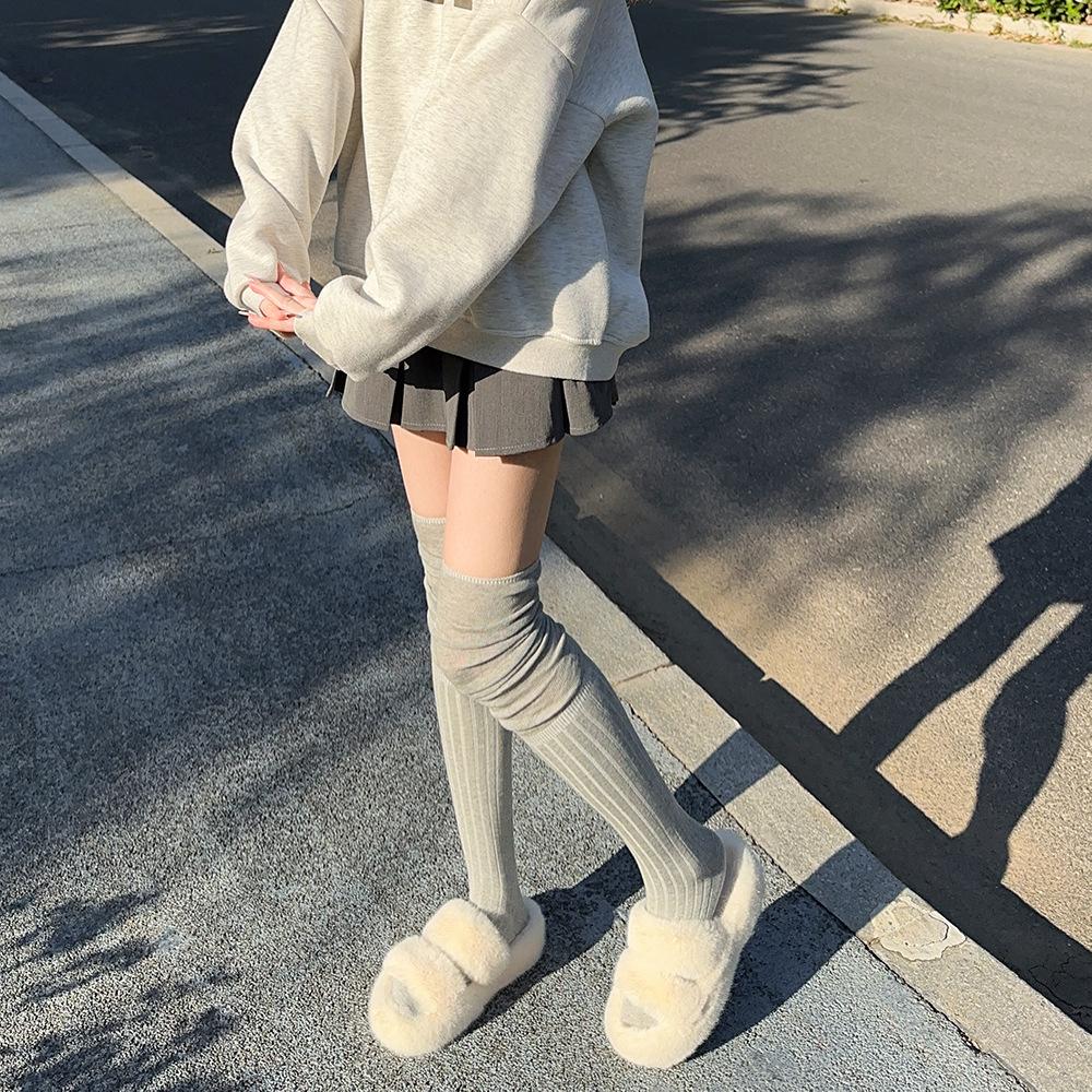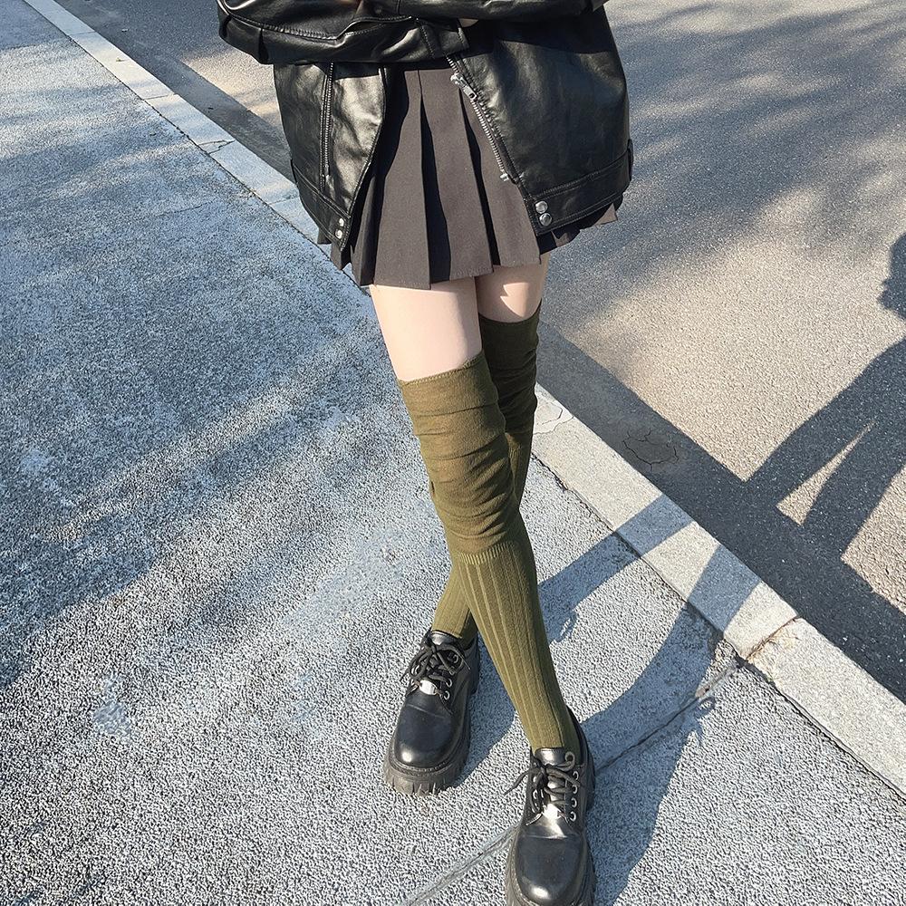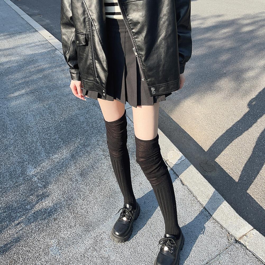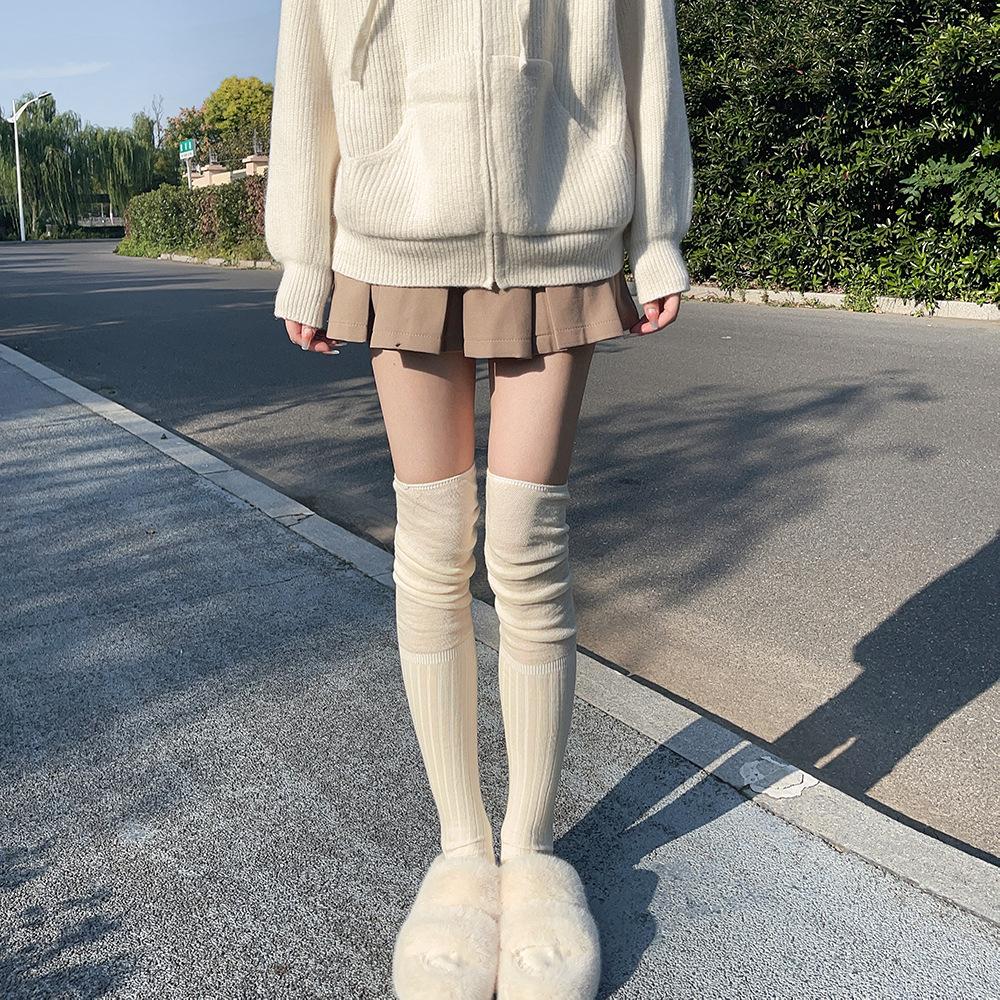 Calcetines altos hasta la rodilla de color sólido con costuras, estilo coreano simple de viento puro, patrón vertical adelgazante, calcetines altos de moda para otoño e invierno
