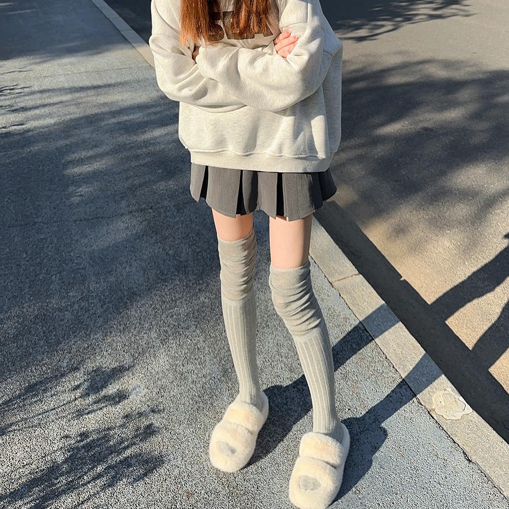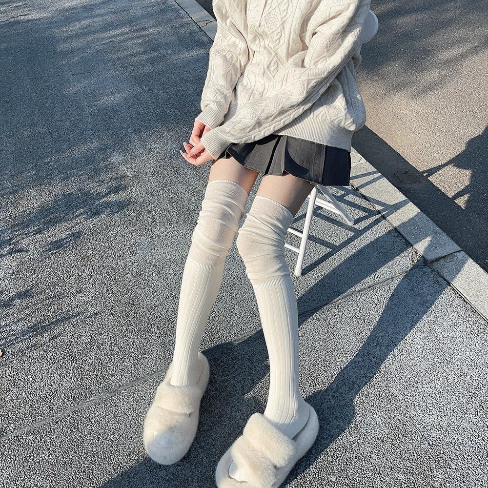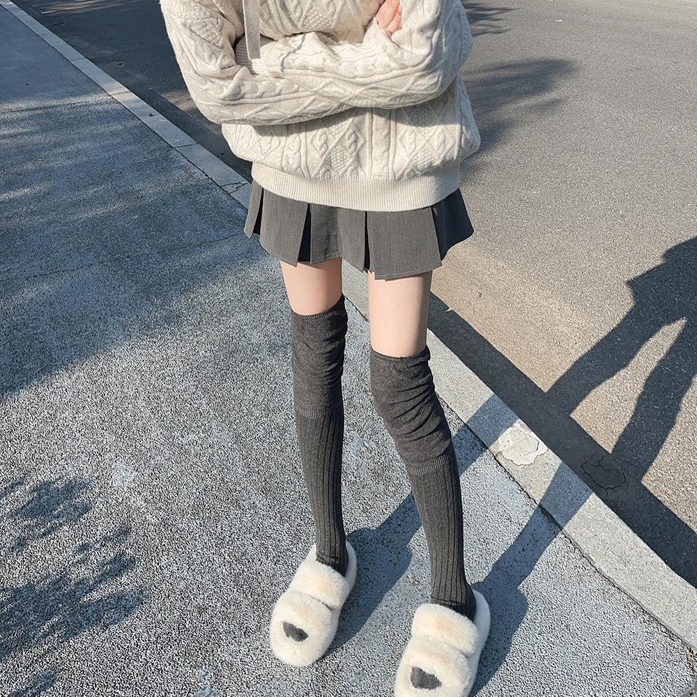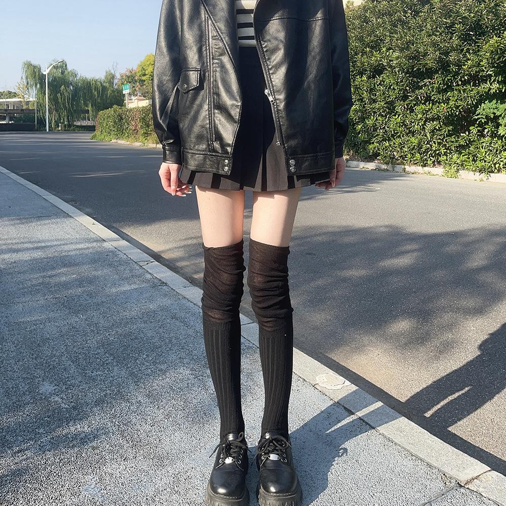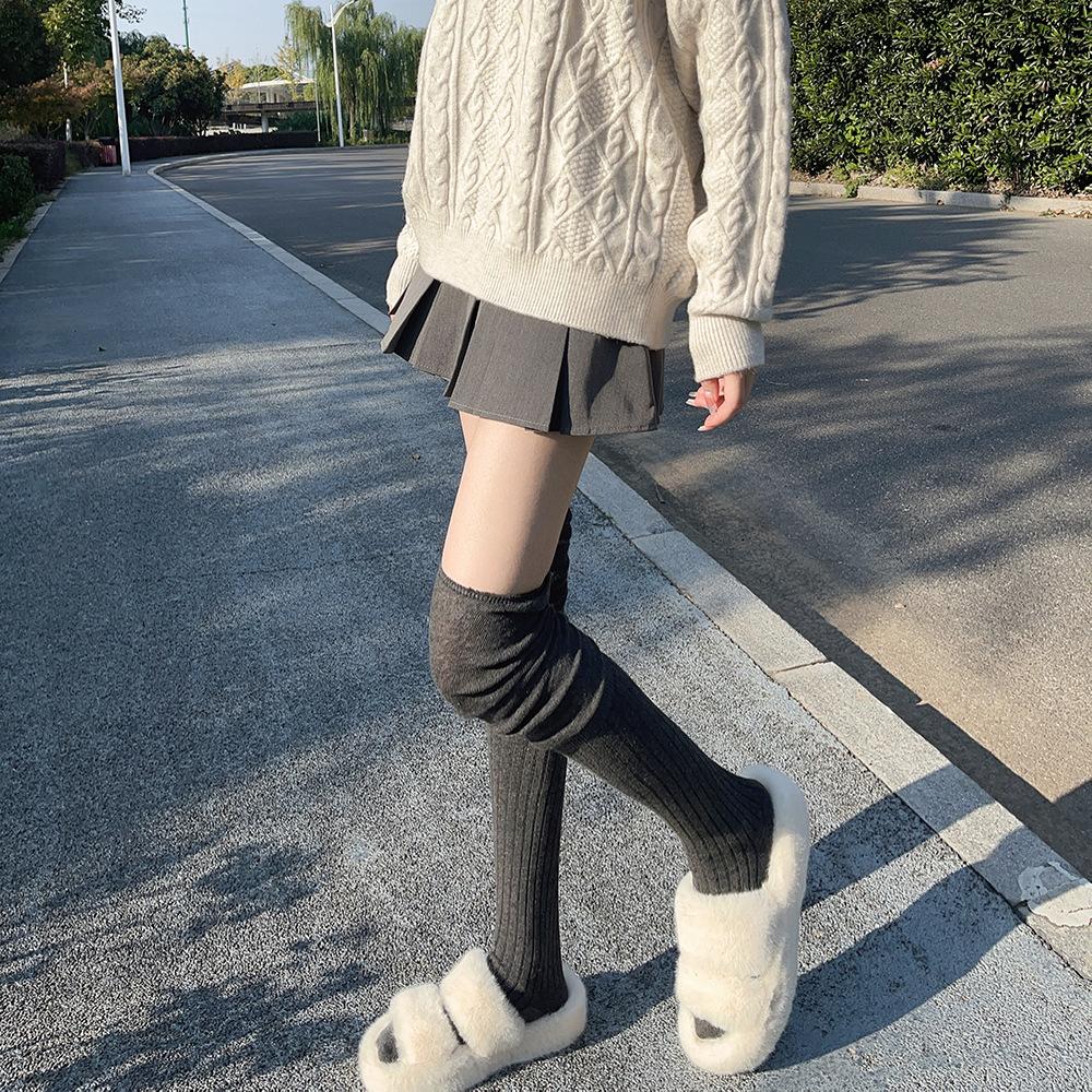 Calcetines altos hasta la rodilla de color sólido con costuras, estilo coreano simple de viento puro, patrón vertical adelgazante, calcetines altos de moda para otoño e invierno