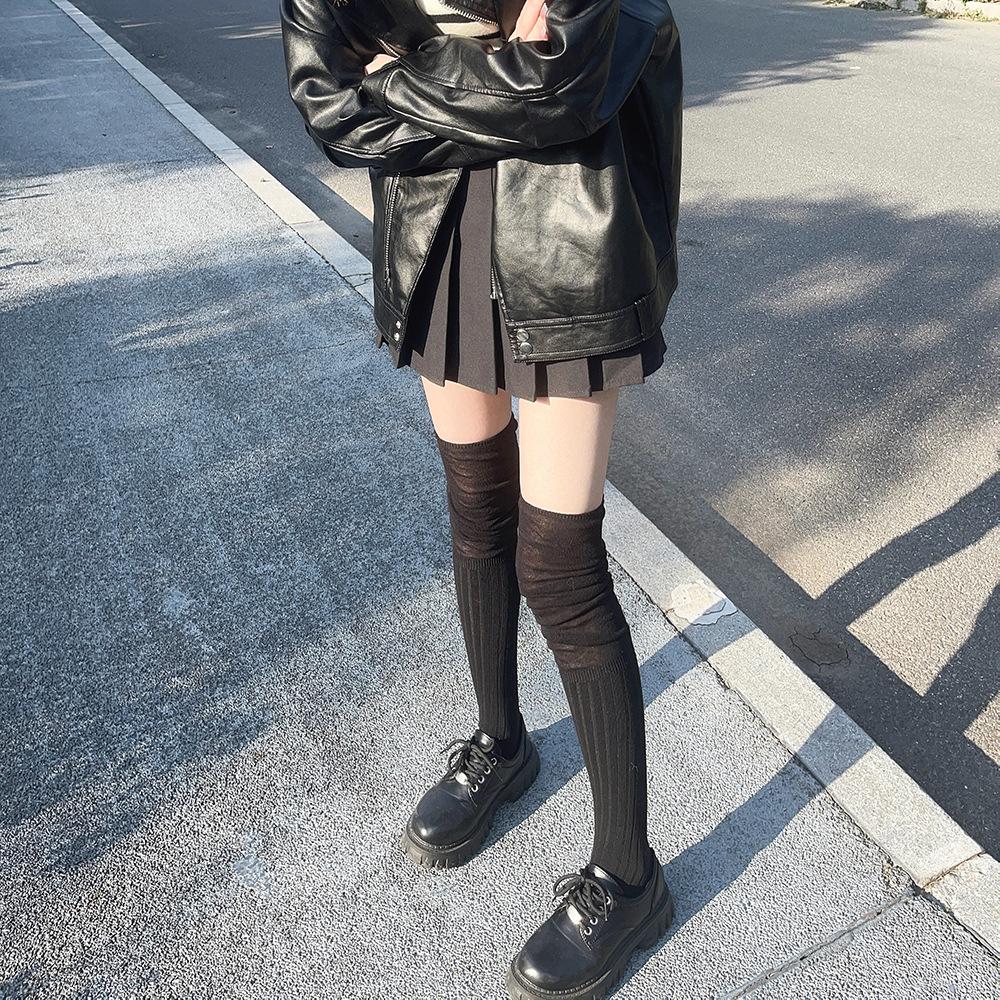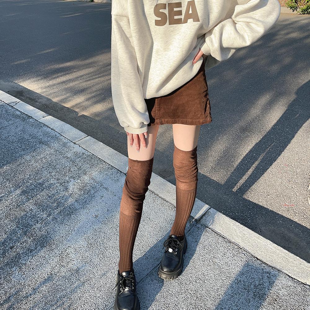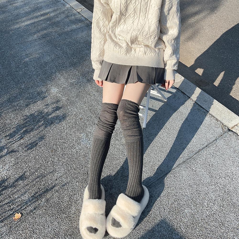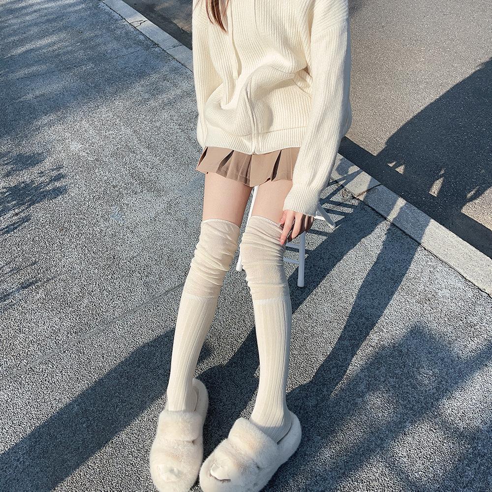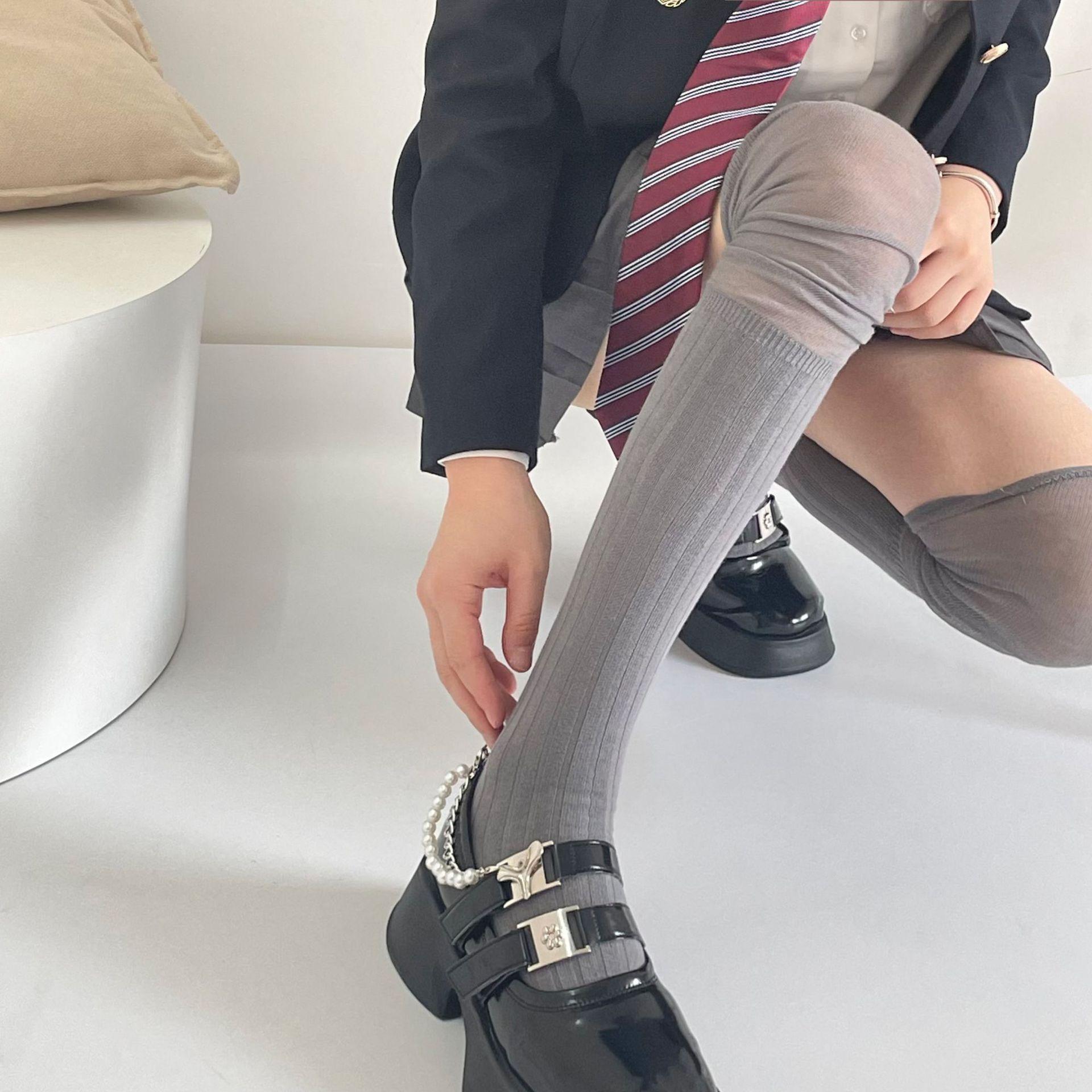 Calcetines altos hasta la rodilla de color sólido con costuras, estilo coreano simple de viento puro, patrón vertical adelgazante, calcetines altos de moda para otoño e invierno