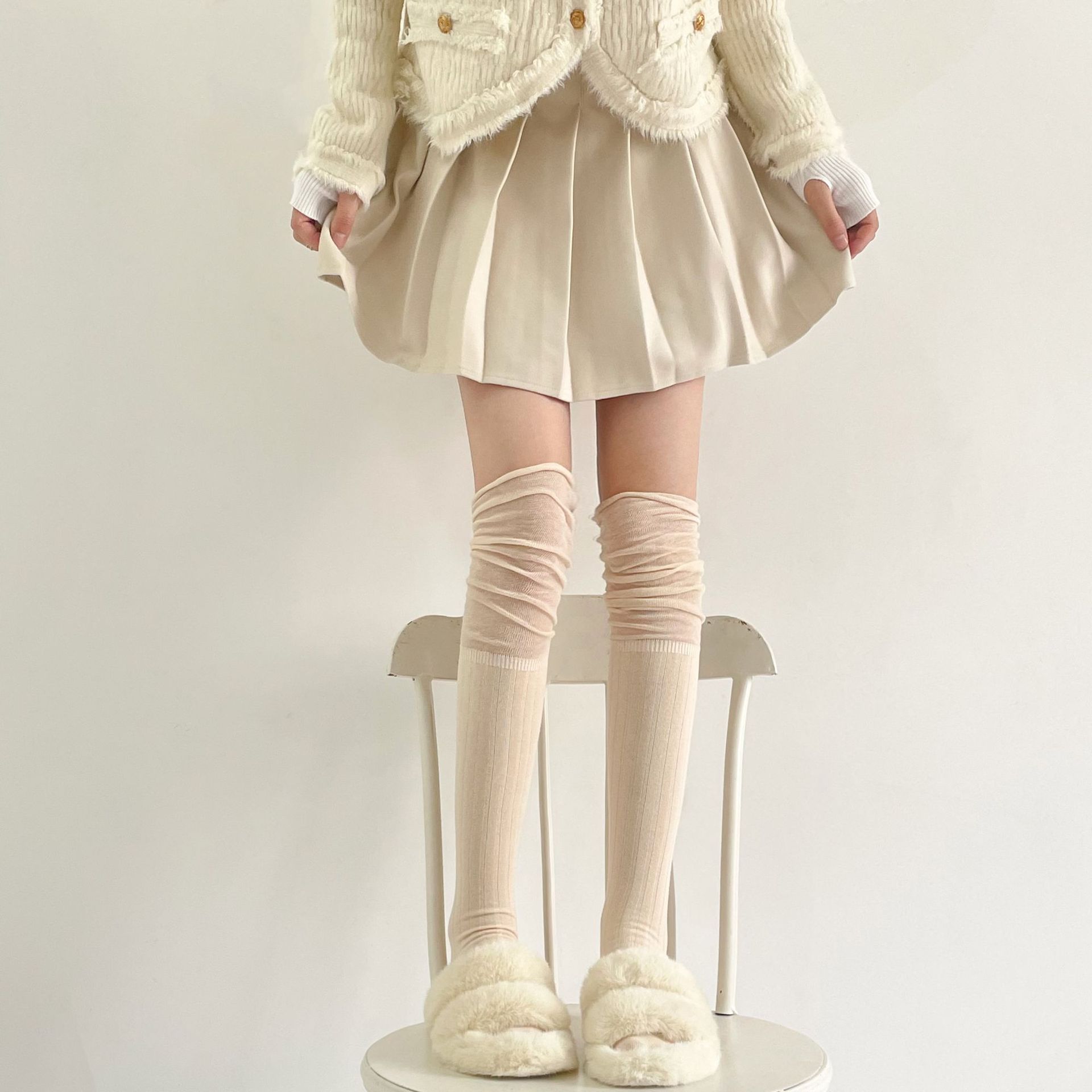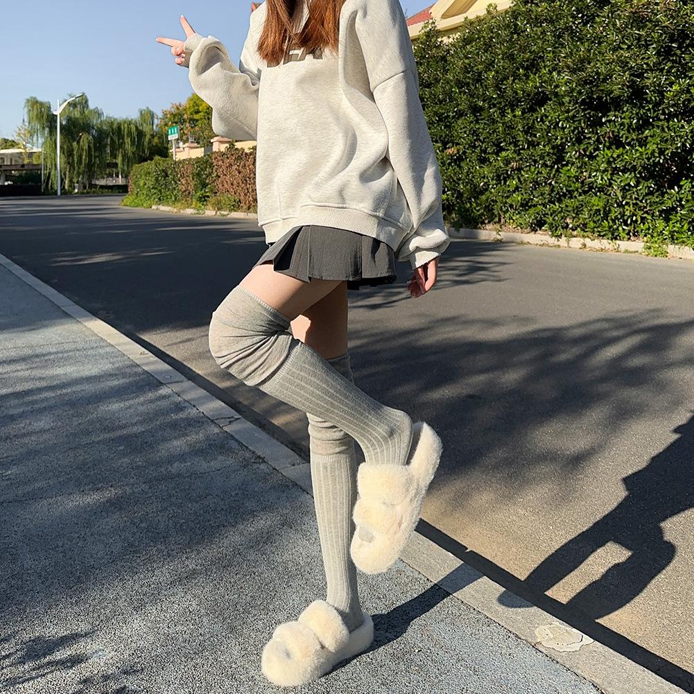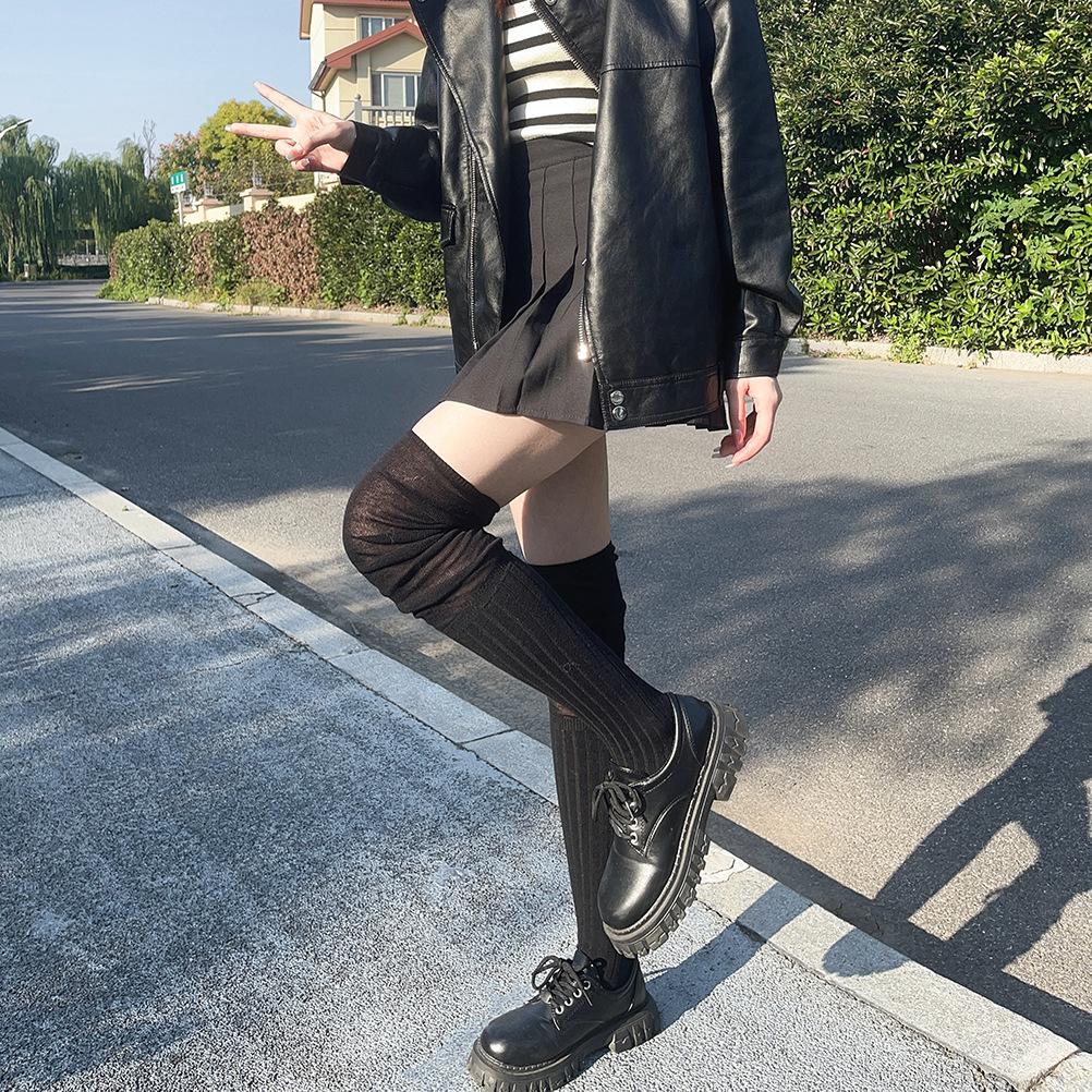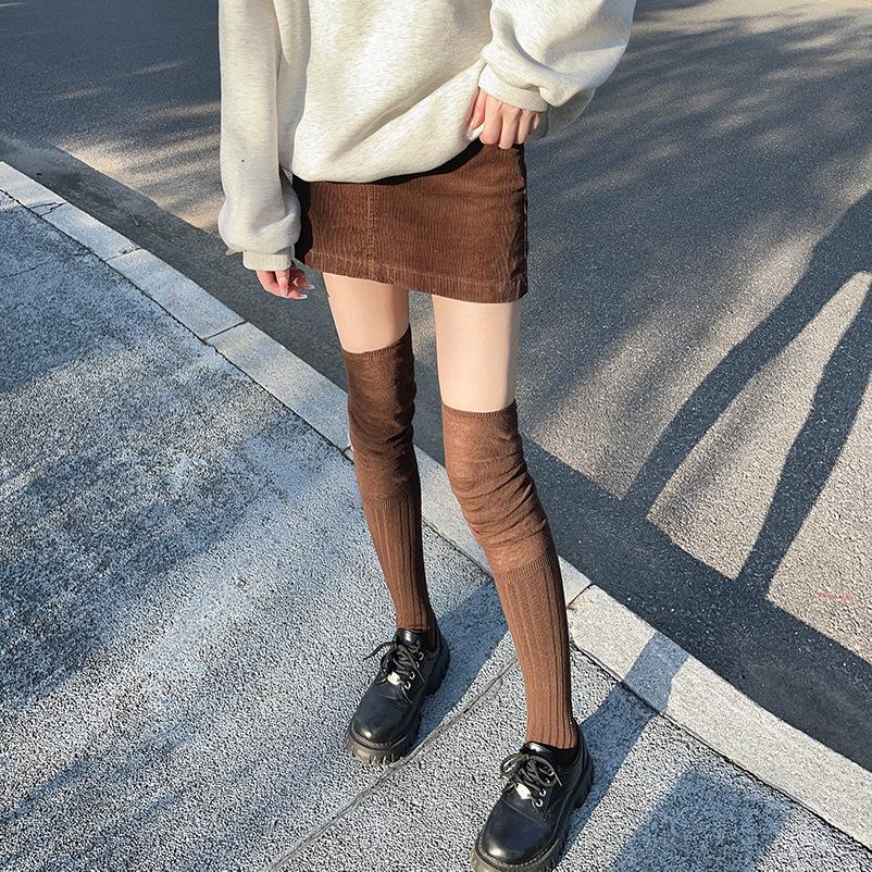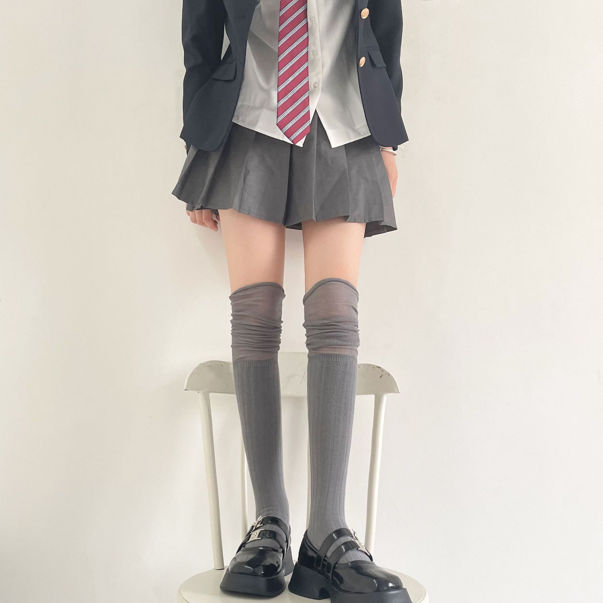 Calcetines altos hasta la rodilla de color sólido con costuras, estilo coreano simple de viento puro, patrón vertical adelgazante, calcetines altos de moda para otoño e invierno