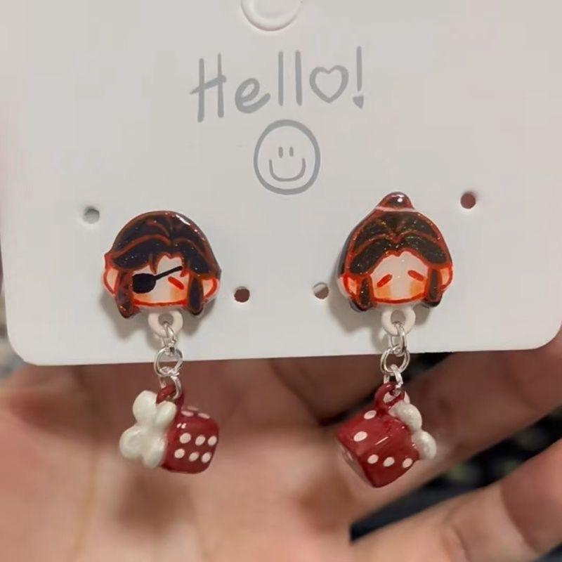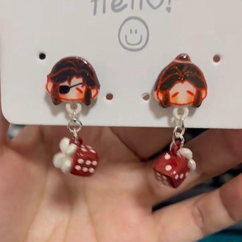 Pendientes elegantes de lujo de alta gama con diseño de mariposa plateada y dados de la ciudad de Tianguan, con flores bendecidas, Xie Lian y el mismo estilo para mujer.
