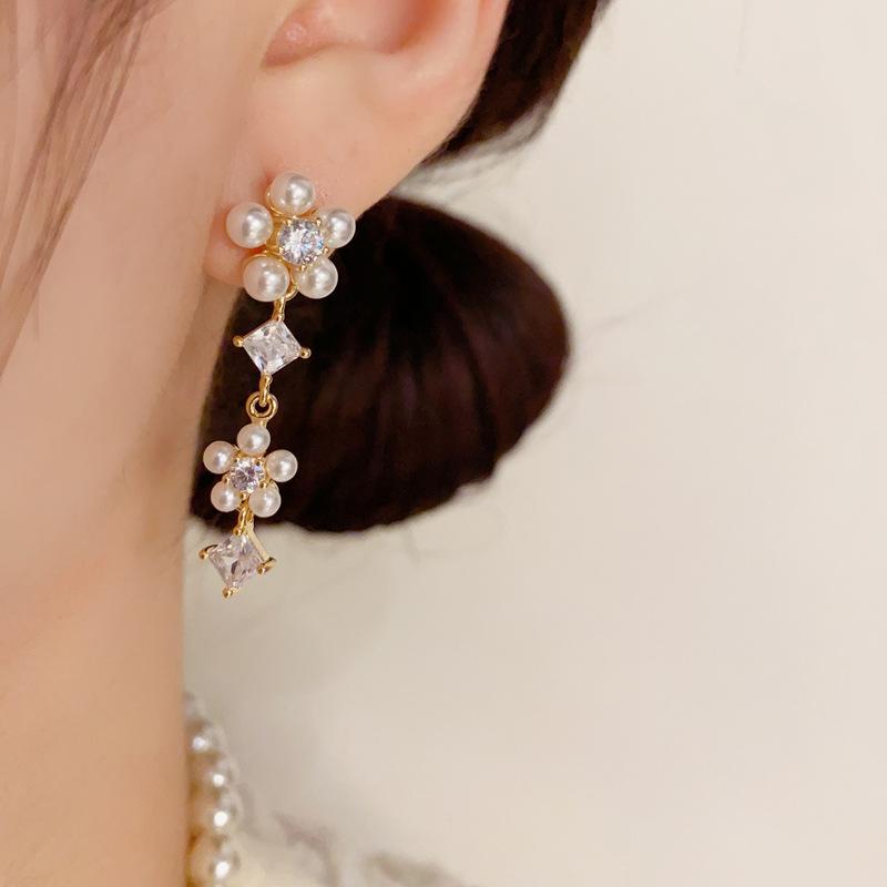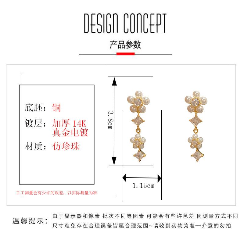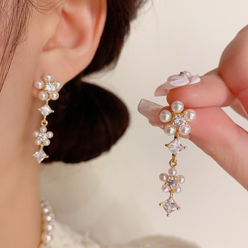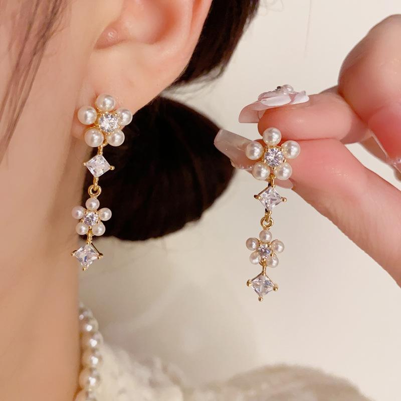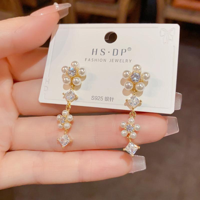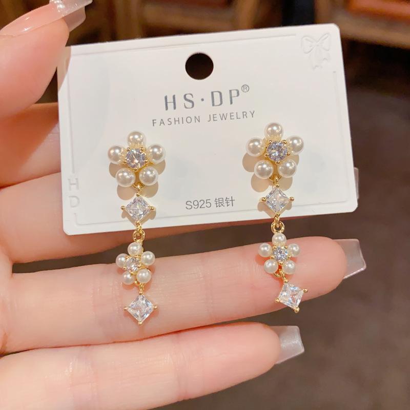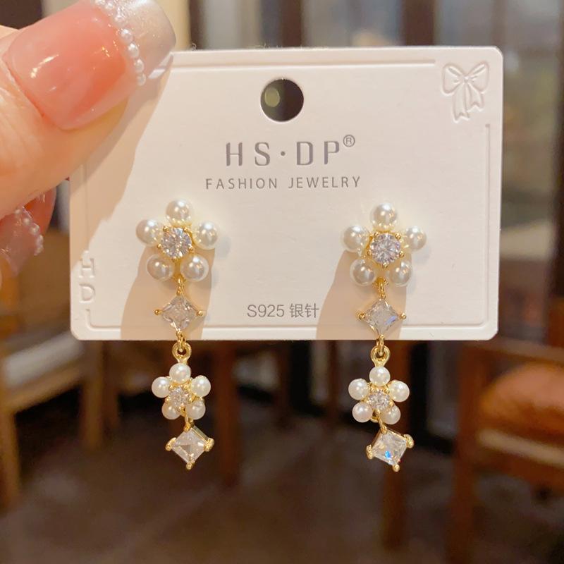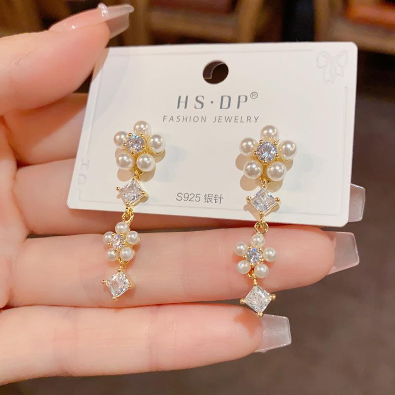 Pendientes de Borla de Pétalos de Perlas Dulces Joker de Moda Aguja de Plata S925 Pendientes para Mujer con Sentido de Diseño de Nicho Venta al por Mayor