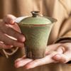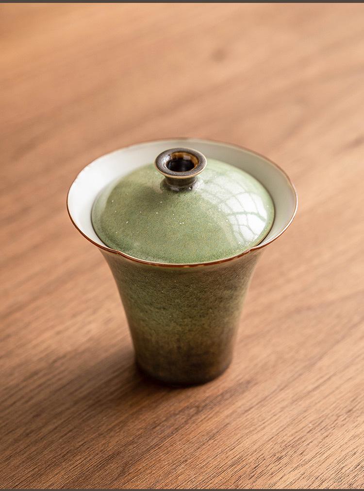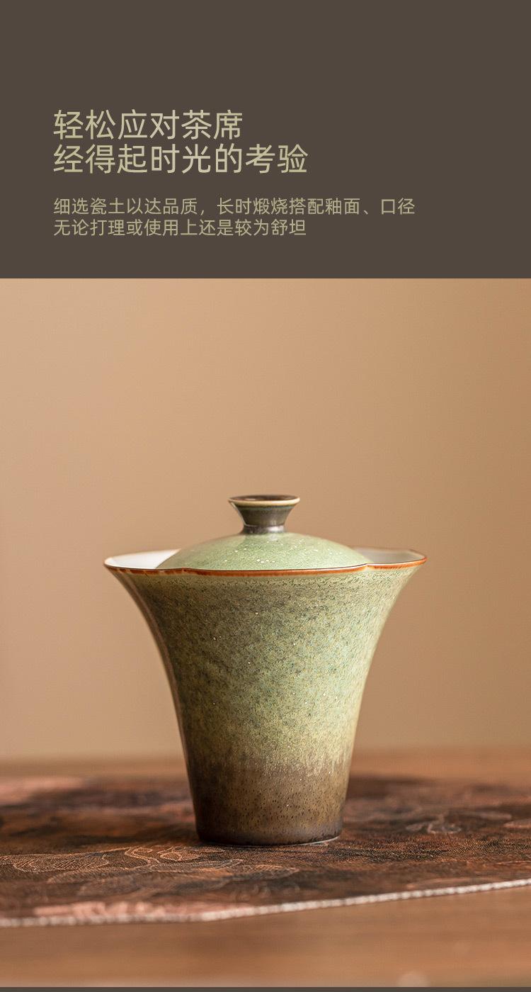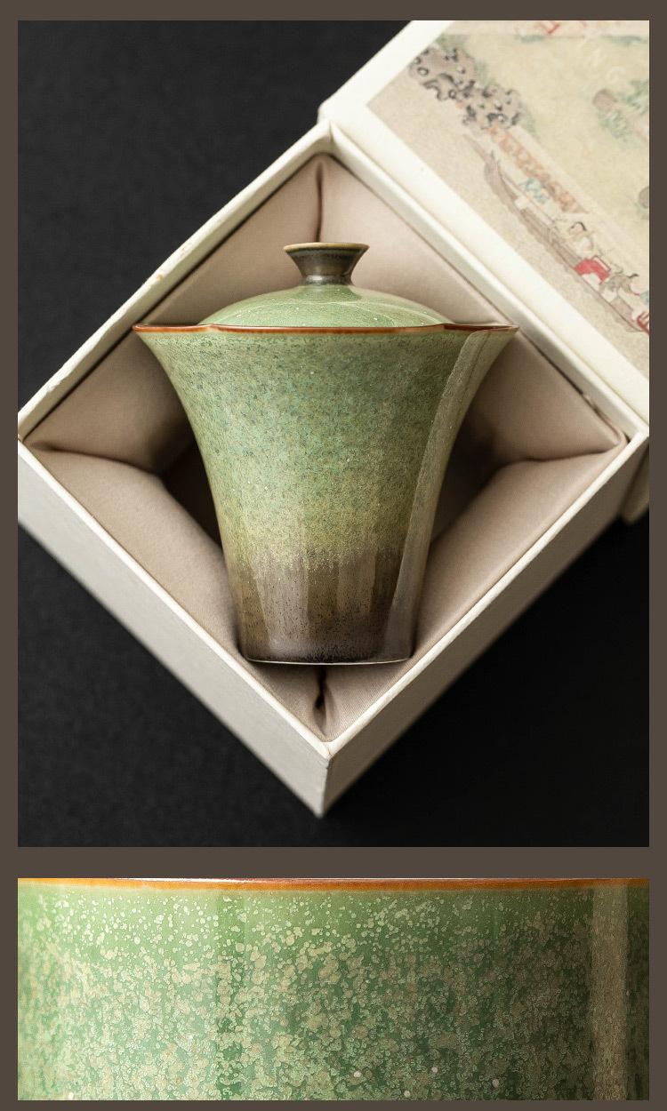 Cuenco de té con diseño de cielo estrellado verde y pétalos altos, hecho a mano, estilo chino vintage, para el hogar, no caliente