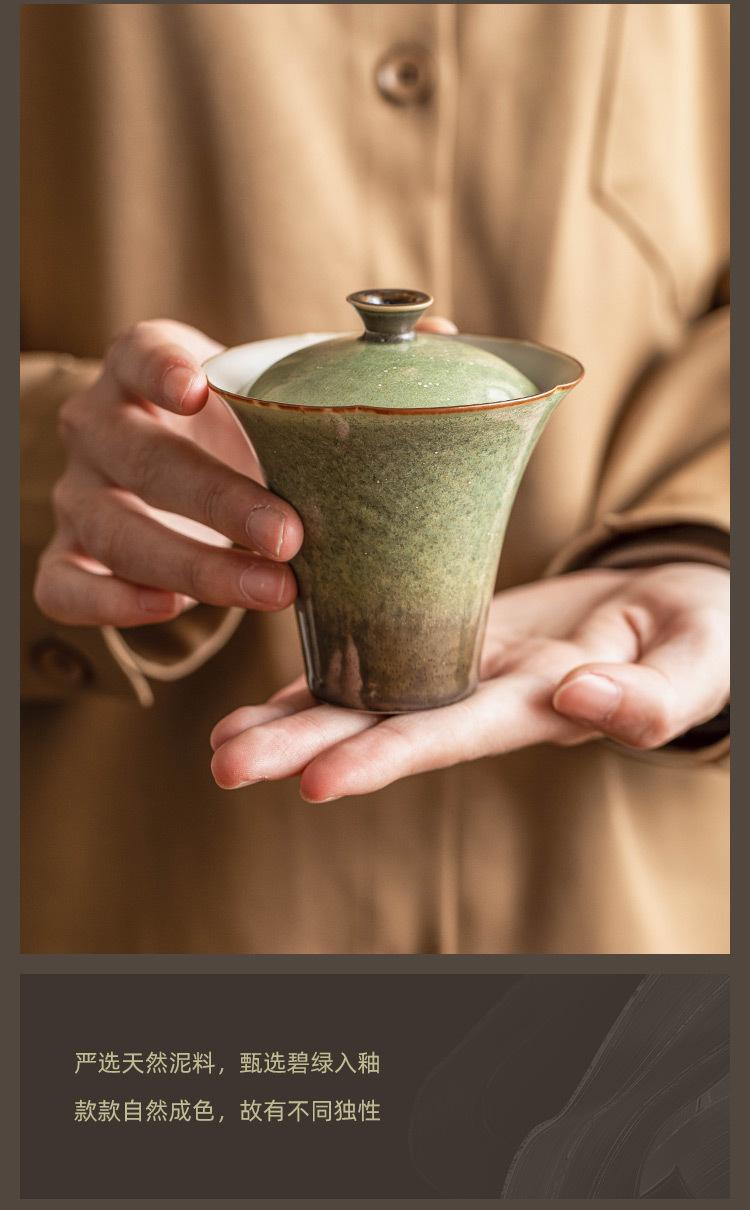 Kiln-varnated green starry sky_high petal tureen [simple decoration]