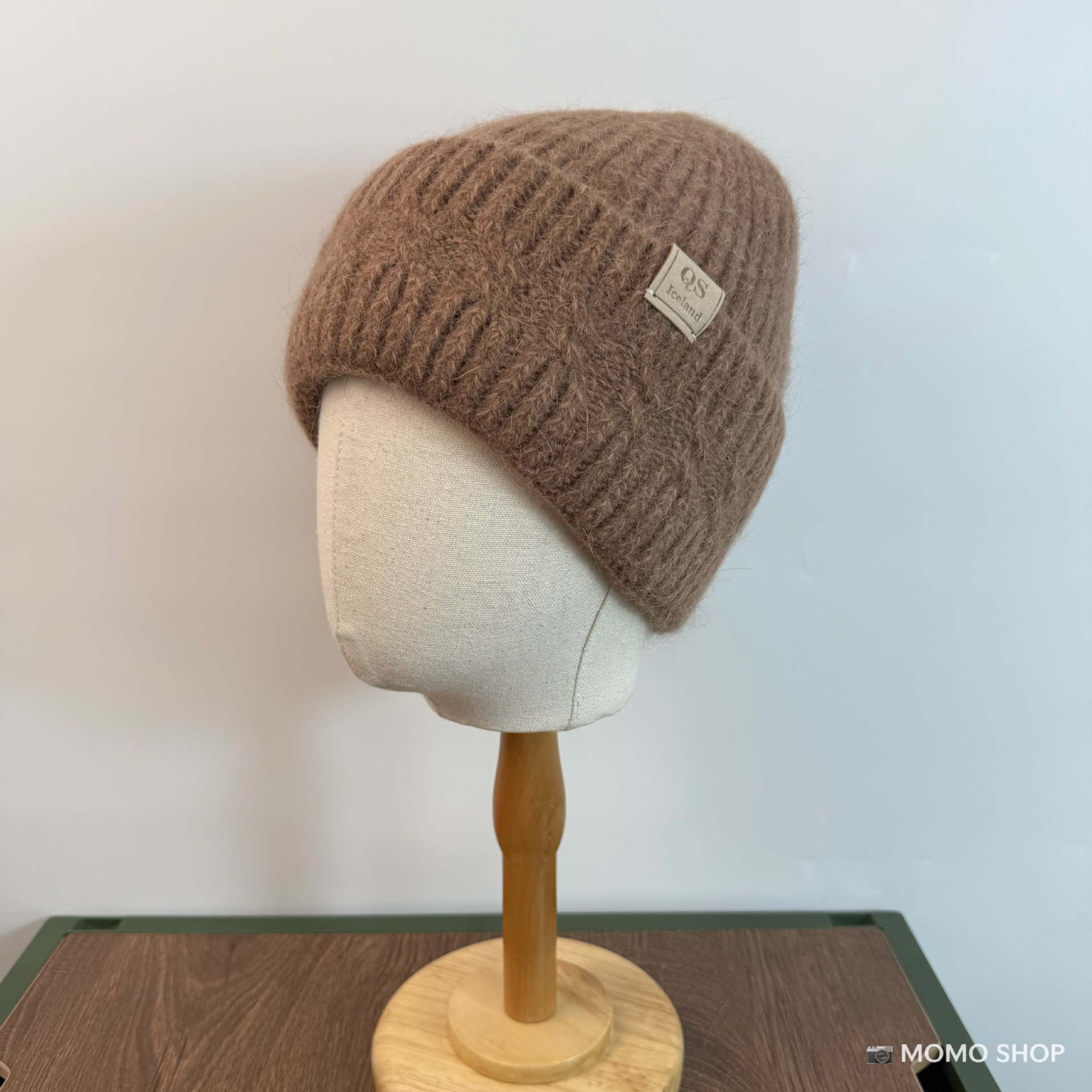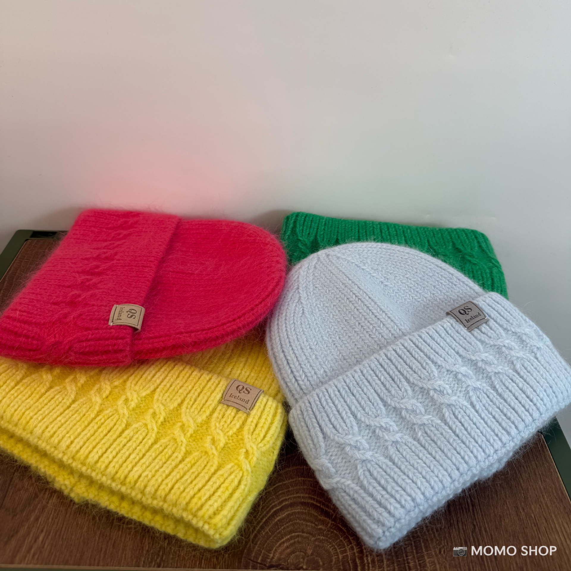 Gorro de punto de pelo de conejo para hombre y mujer, estilo coreano, moda, marca urbana, etiqueta de tela, gorro de lana, otoño e invierno, cálido, para el frío, gorro pulóver