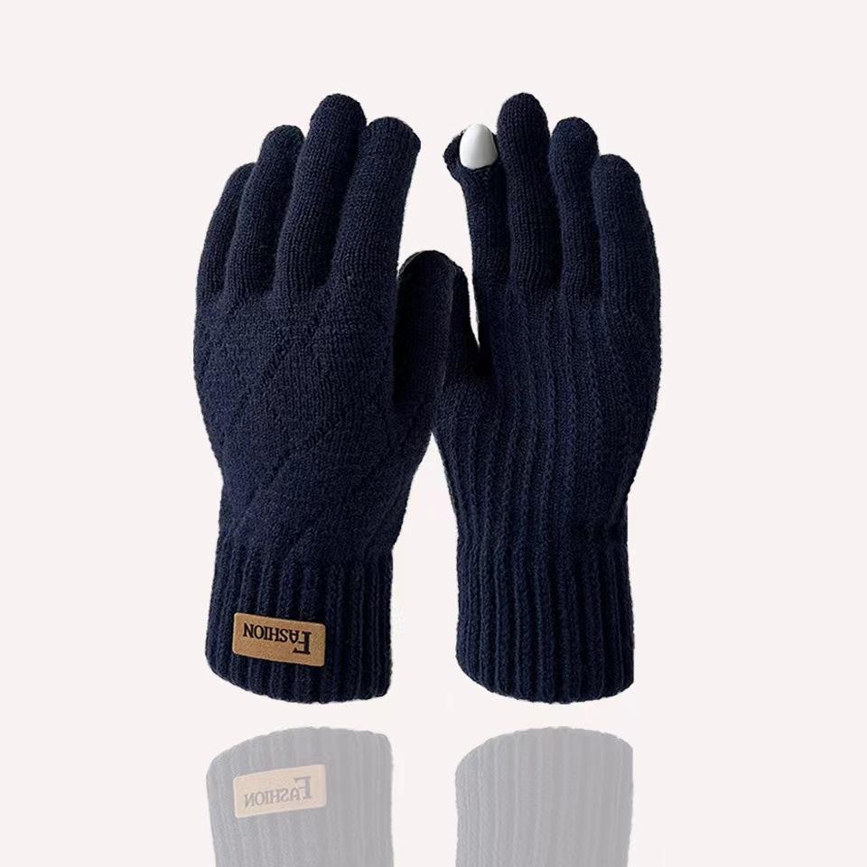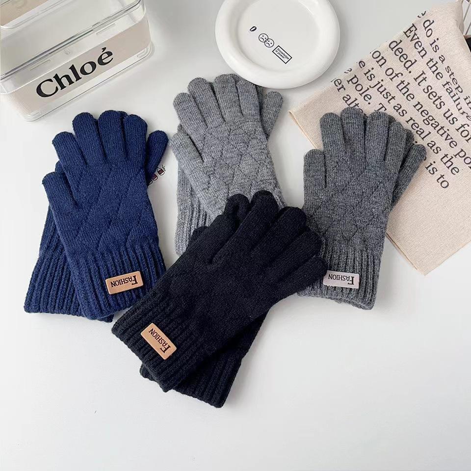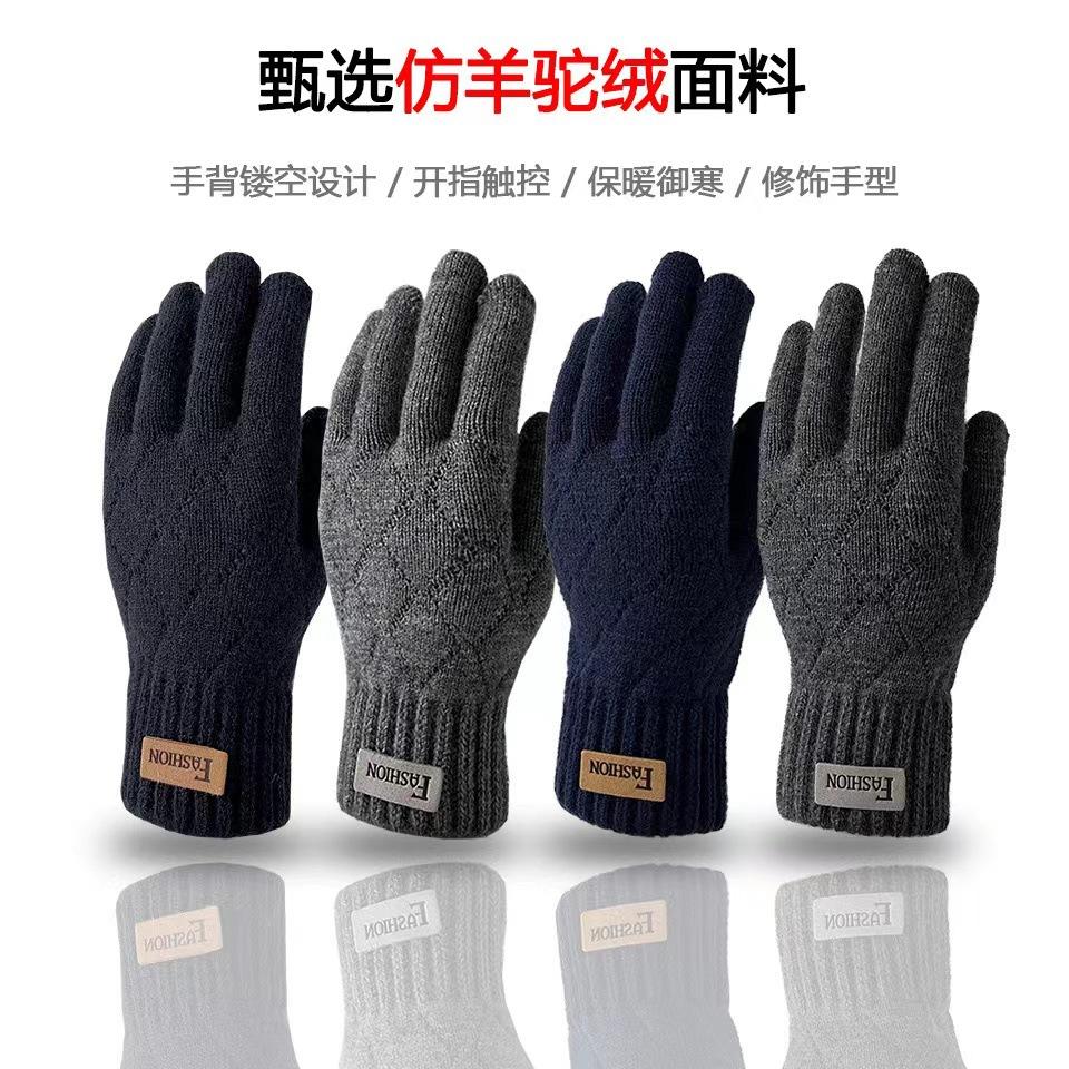 Guantes de hombre de estilo coreano de invierno a prueba de frío, de lana, tejidos, cálidos, con personalidad hueca, con dedos abiertos, para pantalla táctil, para montar al aire libre.