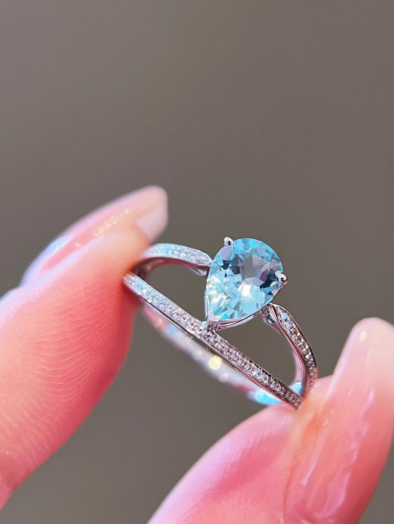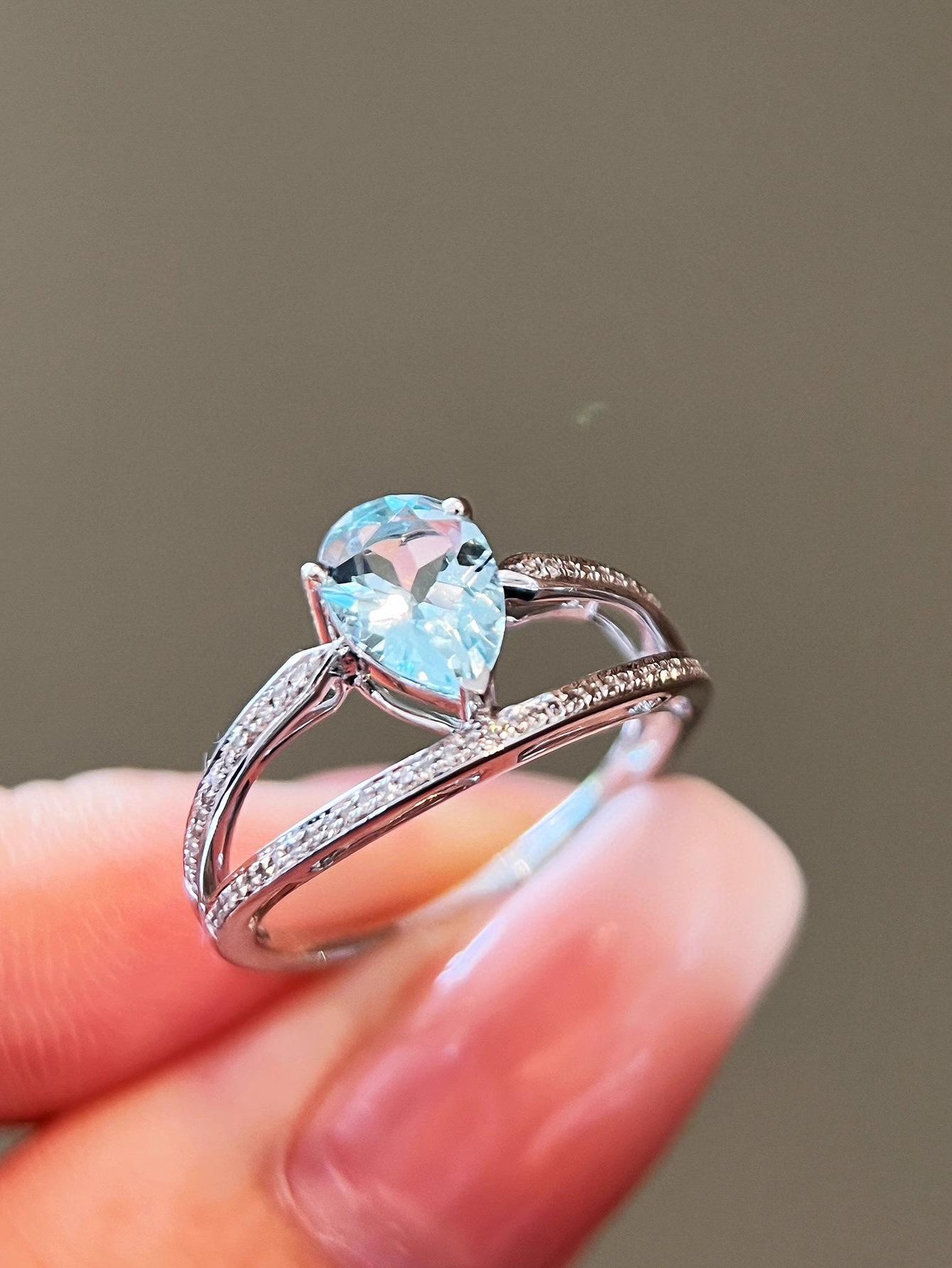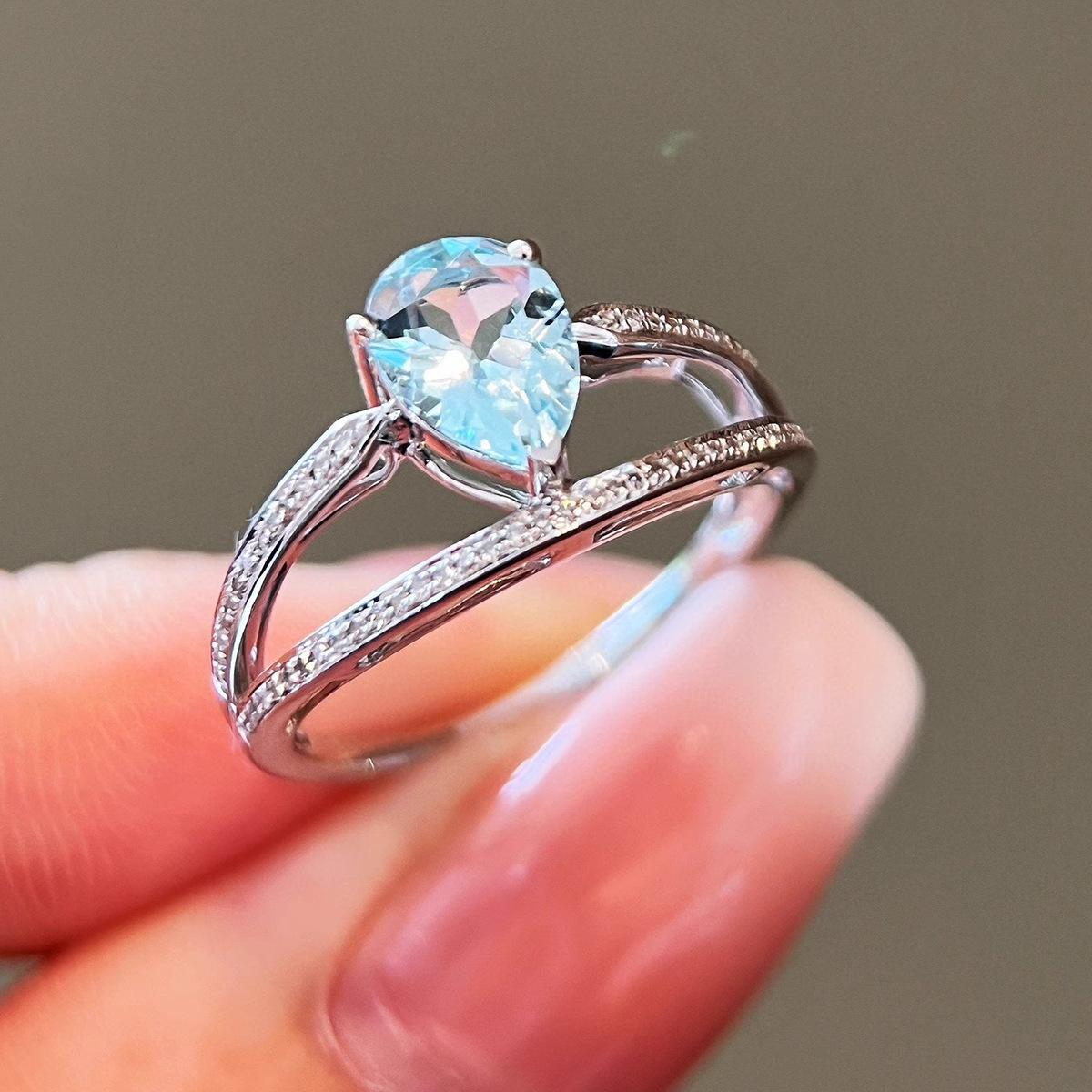 Red Elk Body Plata de Ley s925 Anillo Aguamarina Gota de Agua Diseño Clásico de Doble Capa Hecho a Mano Elegante Combinable