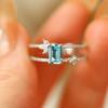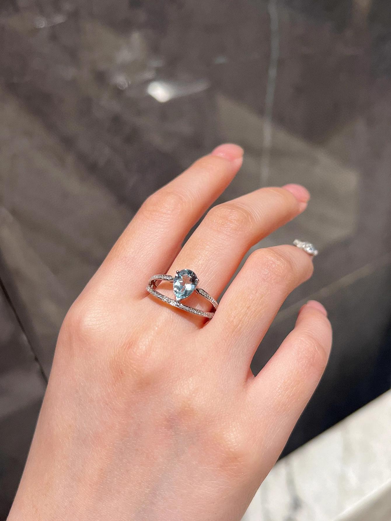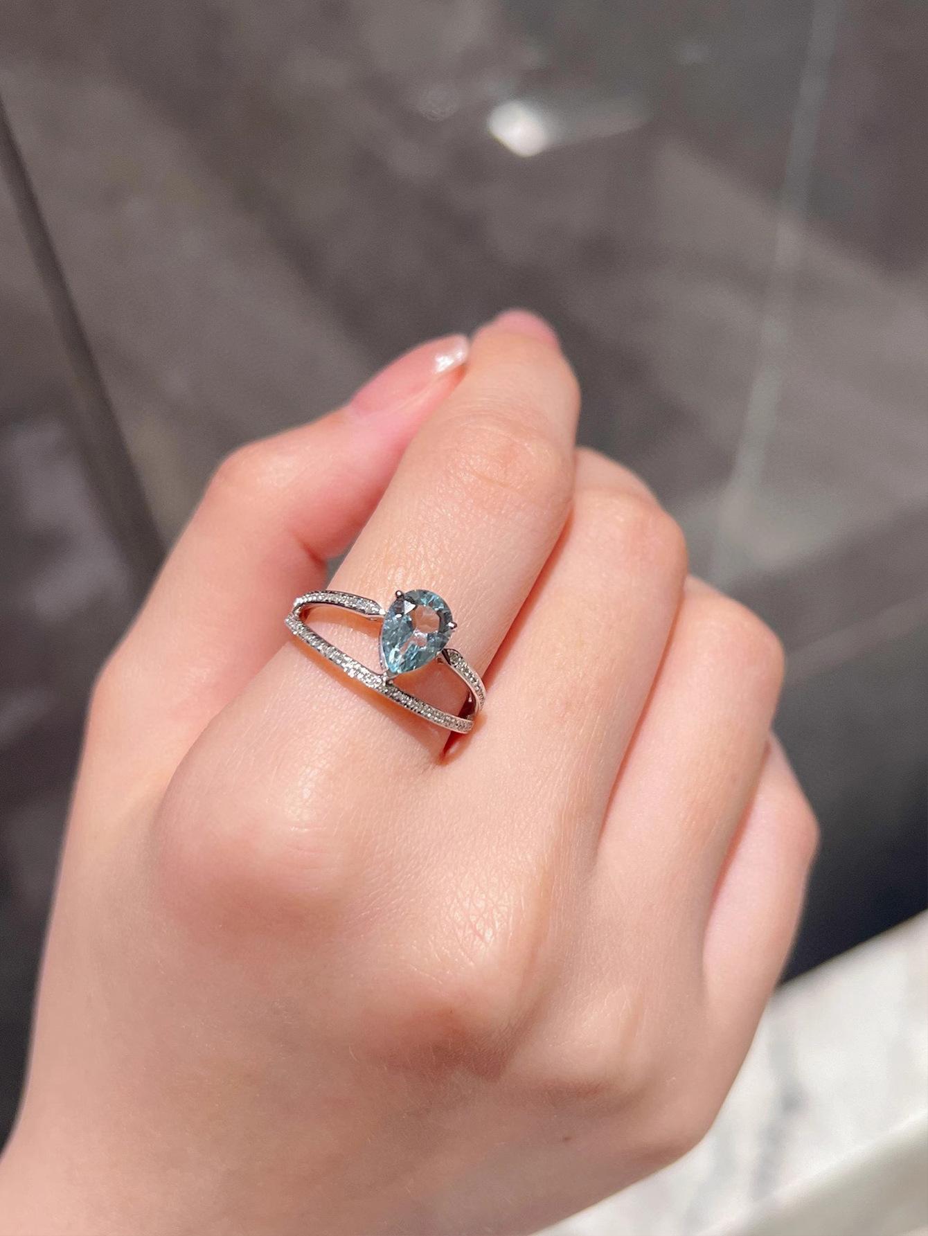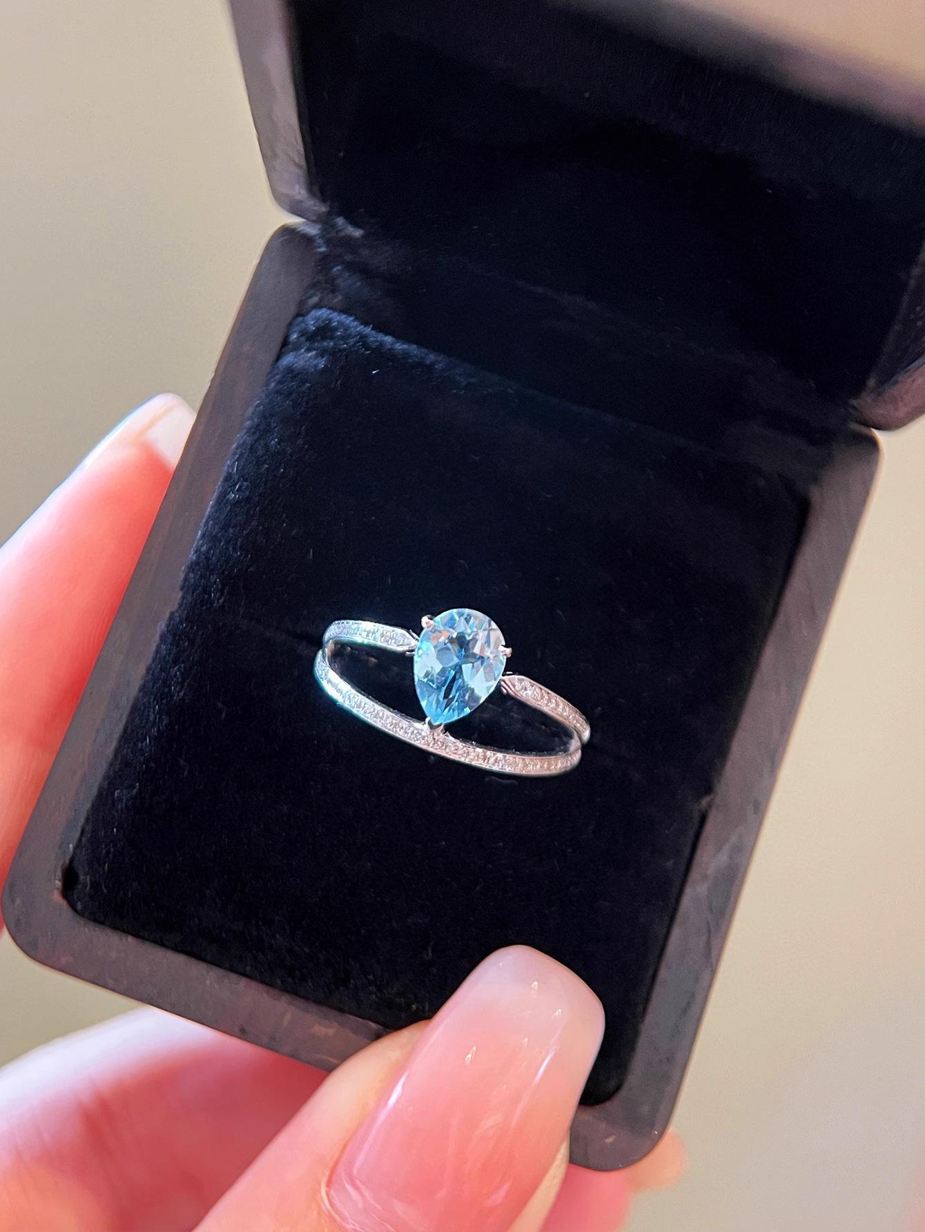 Red Elk Body Plata de Ley s925 Anillo Aguamarina Gota de Agua Diseño Clásico de Doble Capa Hecho a Mano Elegante Combinable