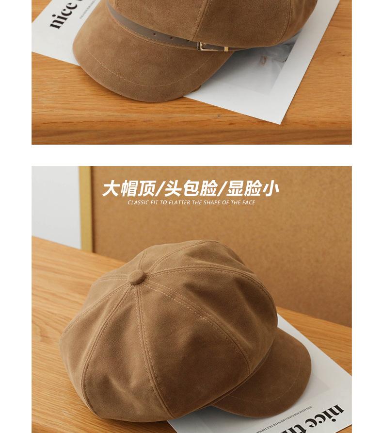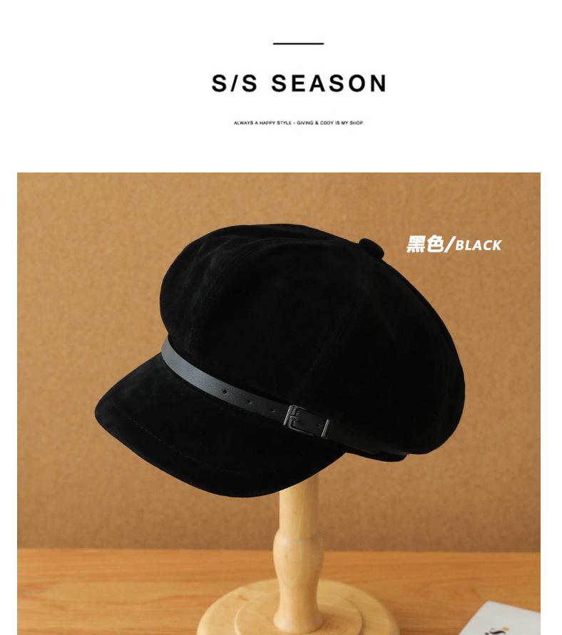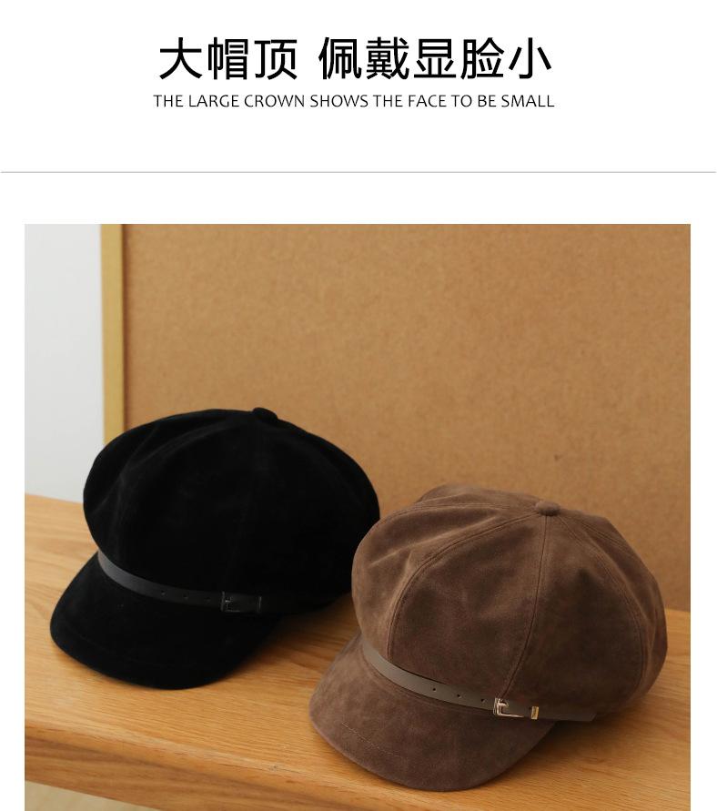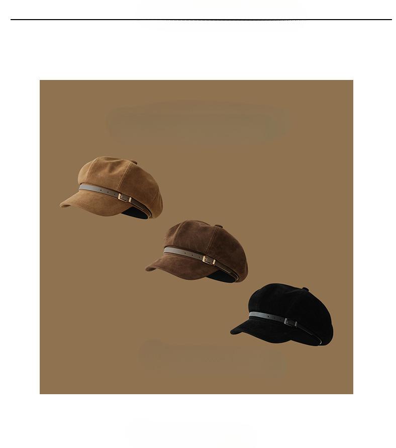 Sombrero Octagonal Elegante Estilo Coreano para Mujer Otoño e Invierno Moda Hebilla de Cinturón Sombrero de Niño de los Periódicos de alta calidad Sombrero Vintage de Ante y Laca