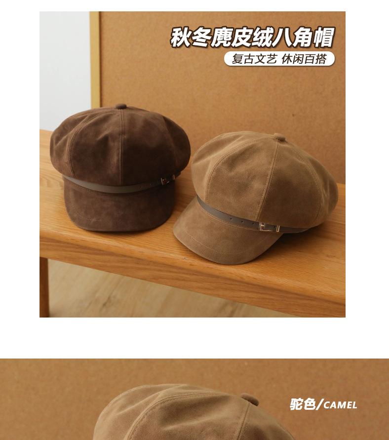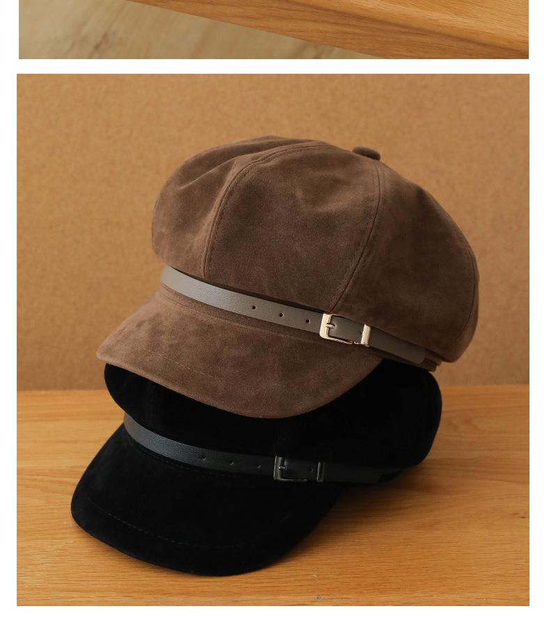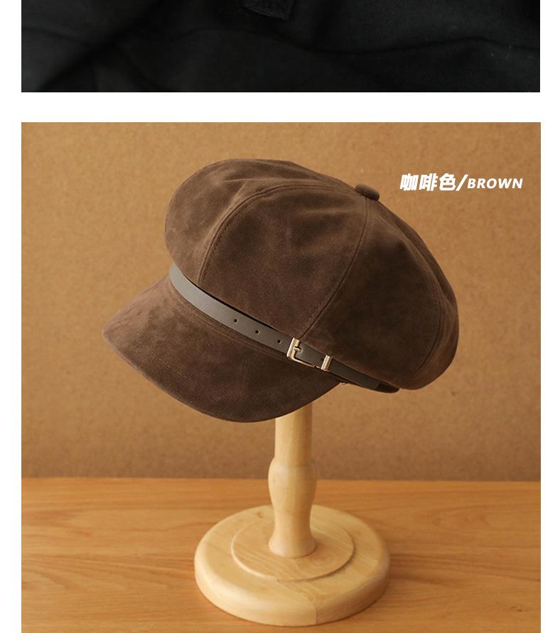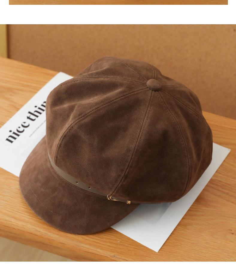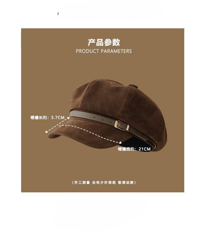 Sombrero Octagonal Elegante Estilo Coreano para Mujer Otoño e Invierno Moda Hebilla de Cinturón Sombrero de Niño de los Periódicos de alta calidad Sombrero Vintage de Ante y Laca