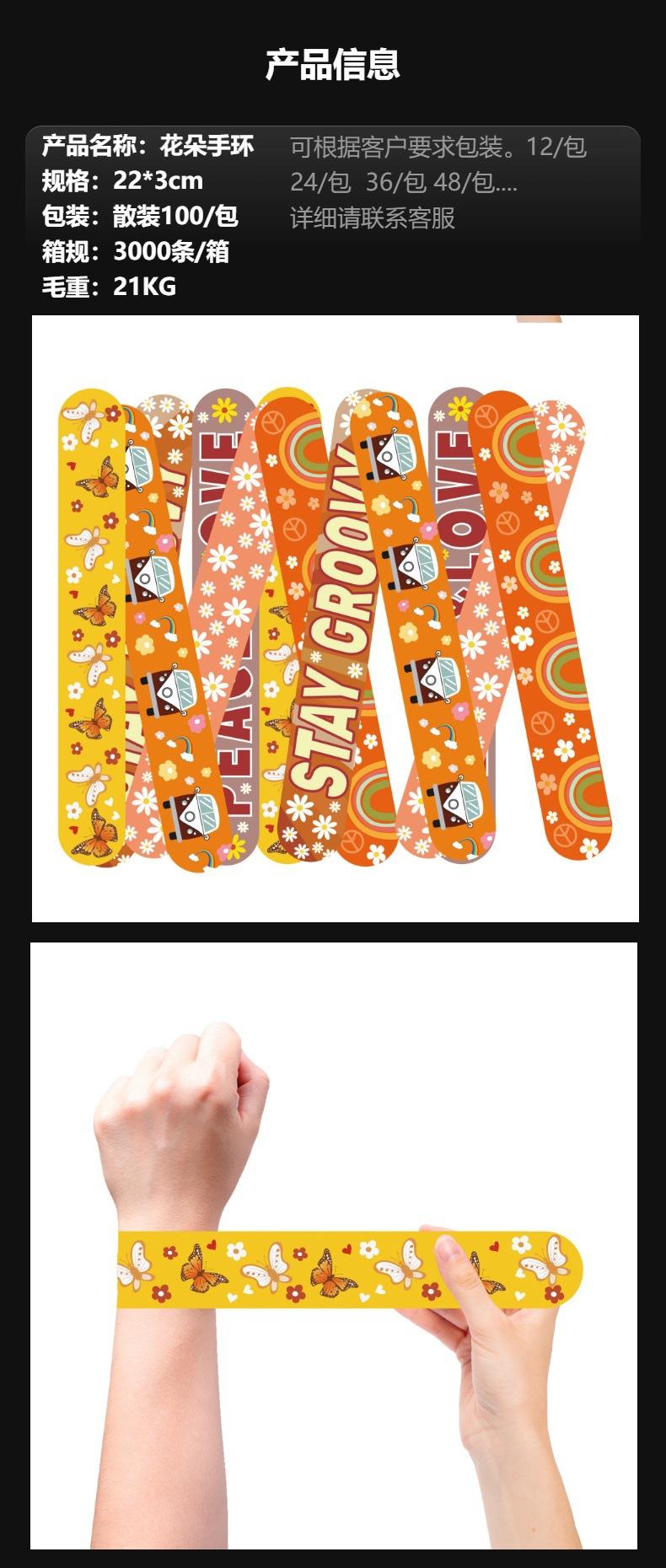 La pulsera de golpe está hecha de PVC + lámina de acero y se puede personalizar según los patrones del cliente. Es adecuada para regalos de eventos, regalos corporativos, decoraciones de muñeca para fiestas infantiles, etc.
