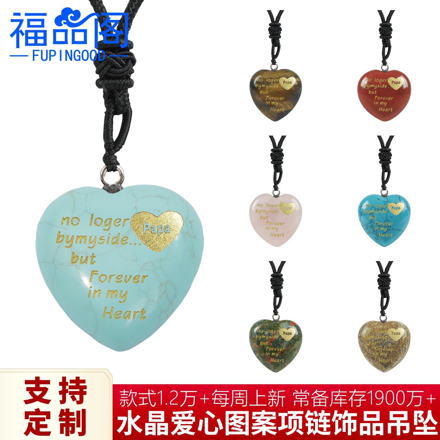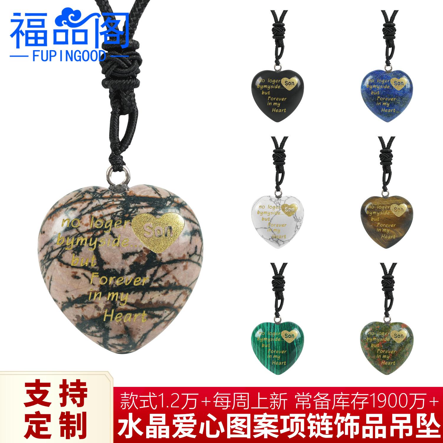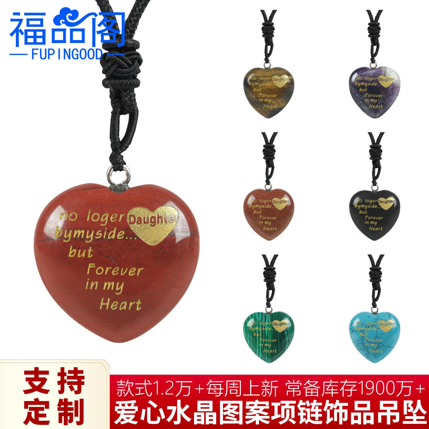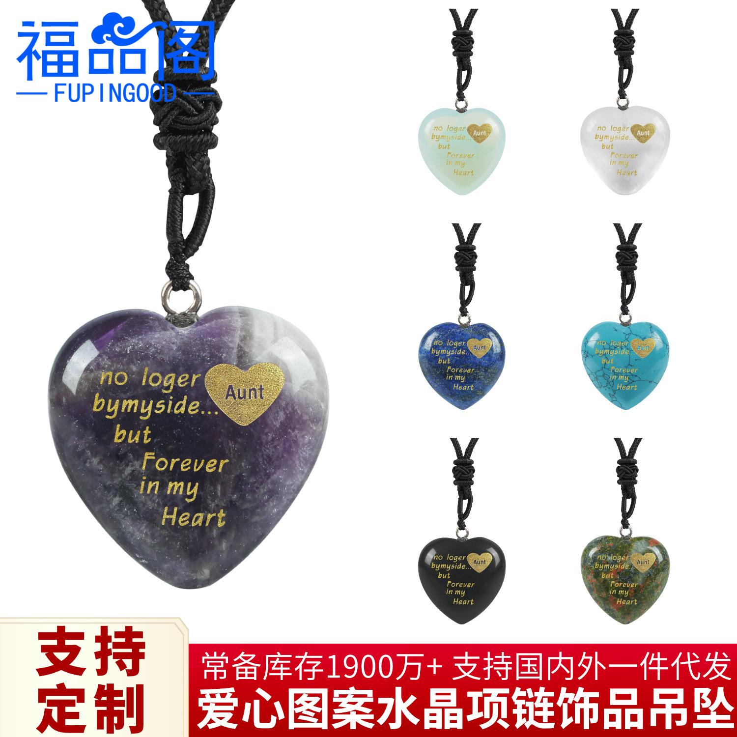 Joyería de cristal natural en forma de corazón tallada al por mayor de comercio exterior para conmemorar el amor de los familiares, collar de cristal de alto nivel