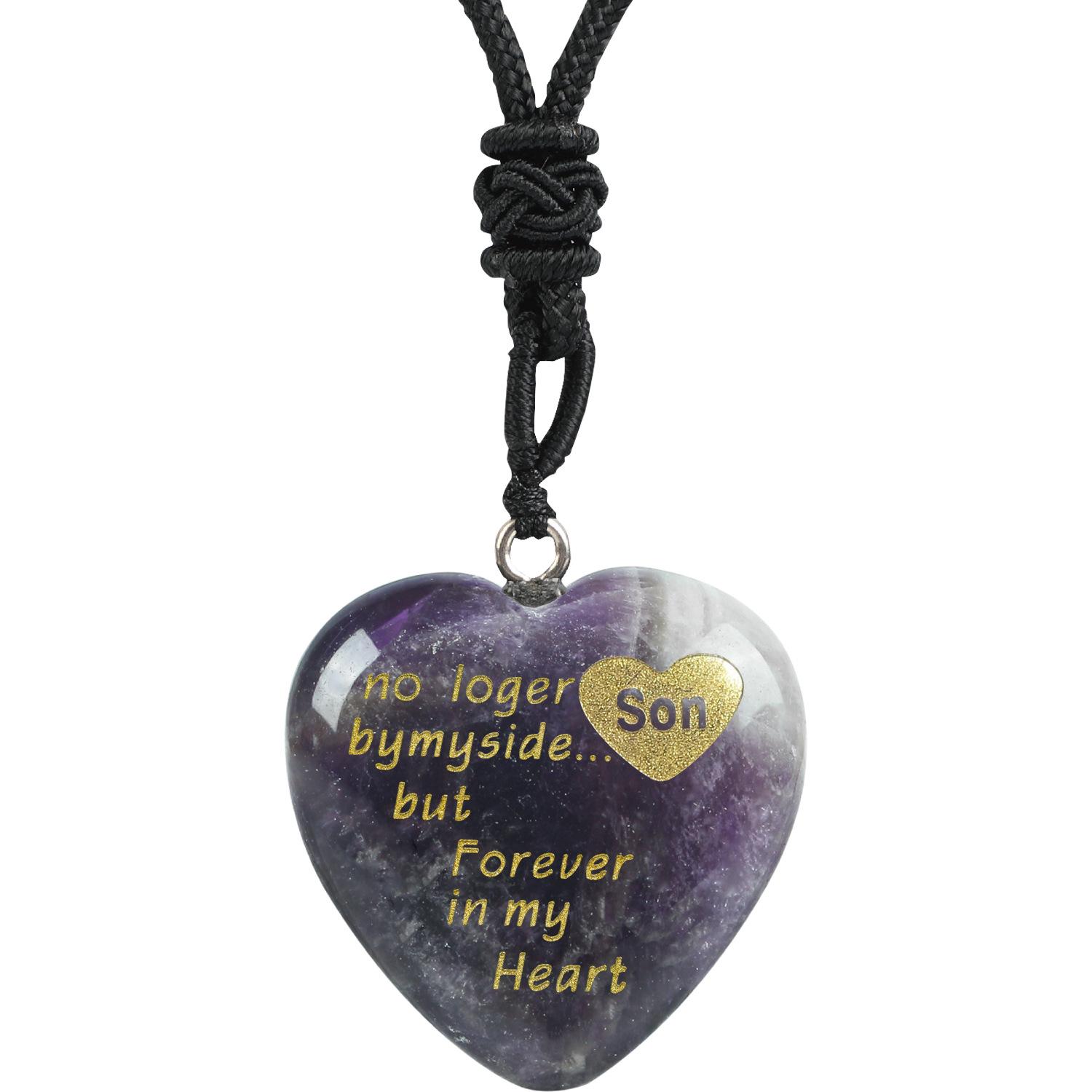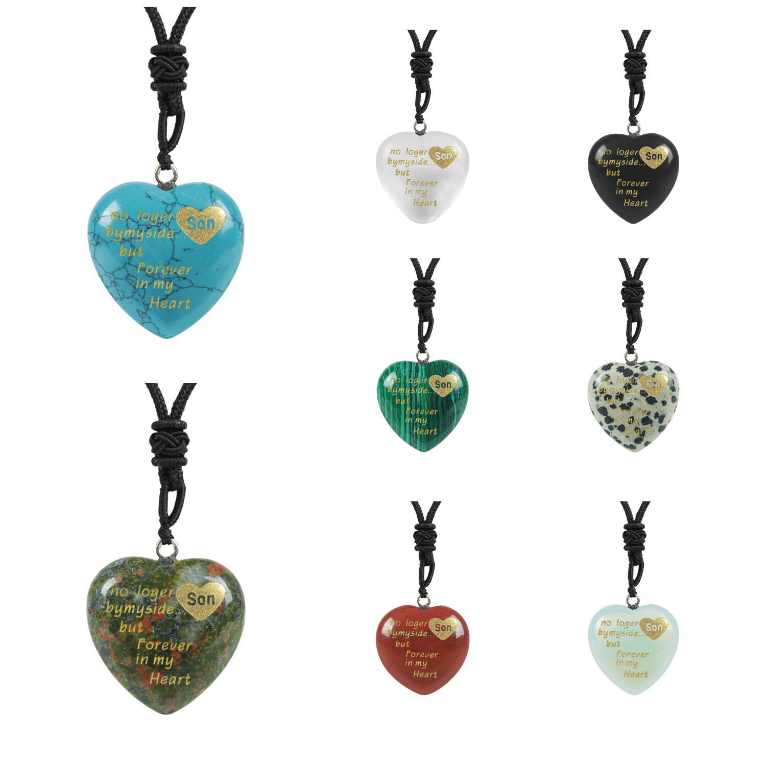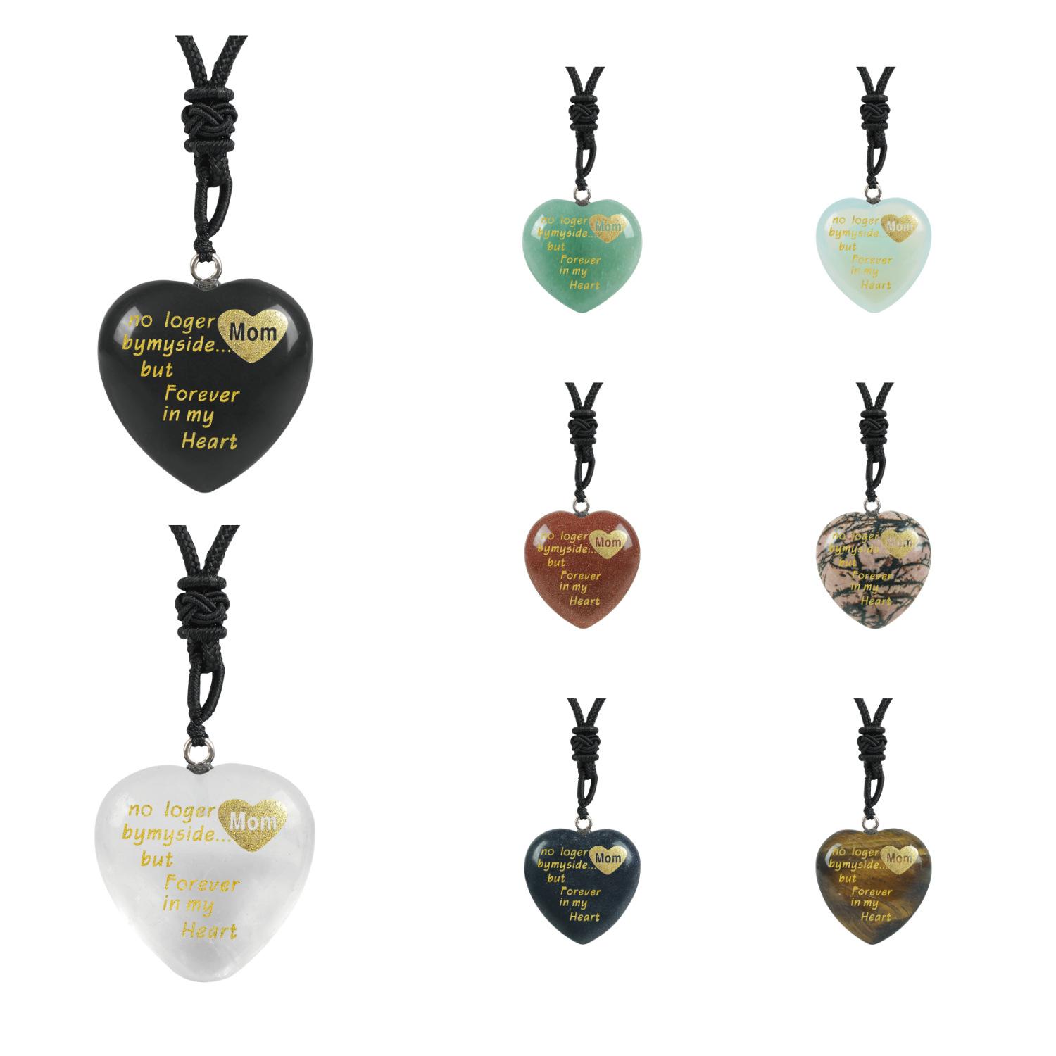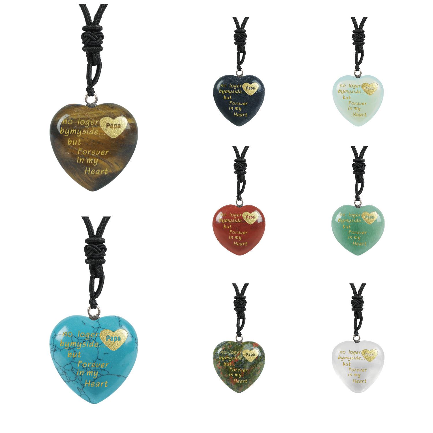 Joyería de cristal natural en forma de corazón tallada al por mayor de comercio exterior para conmemorar el amor de los familiares, collar de cristal de alto nivel