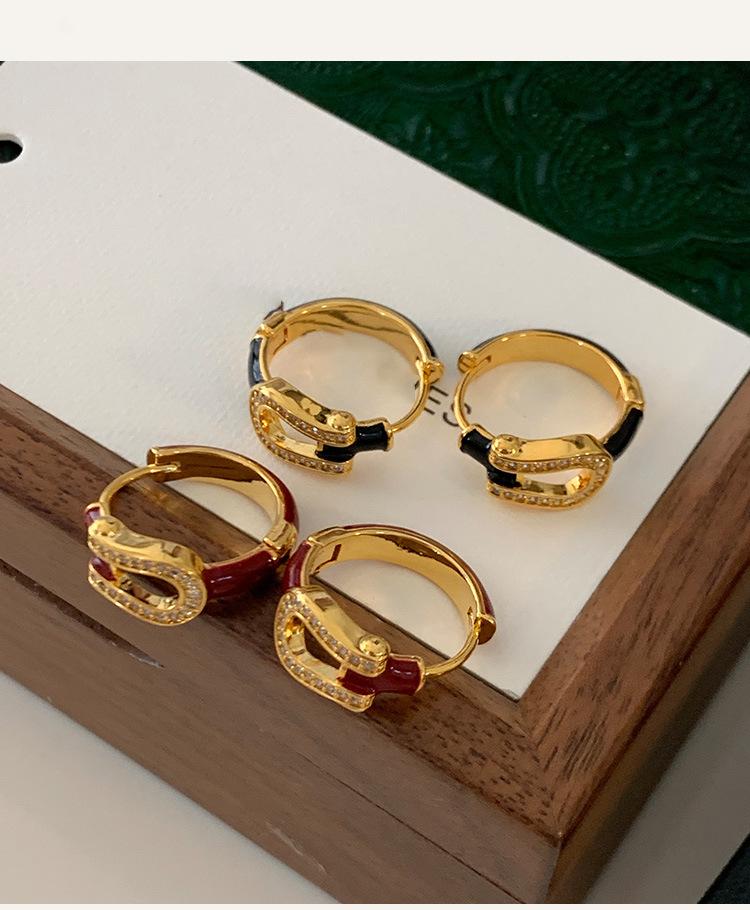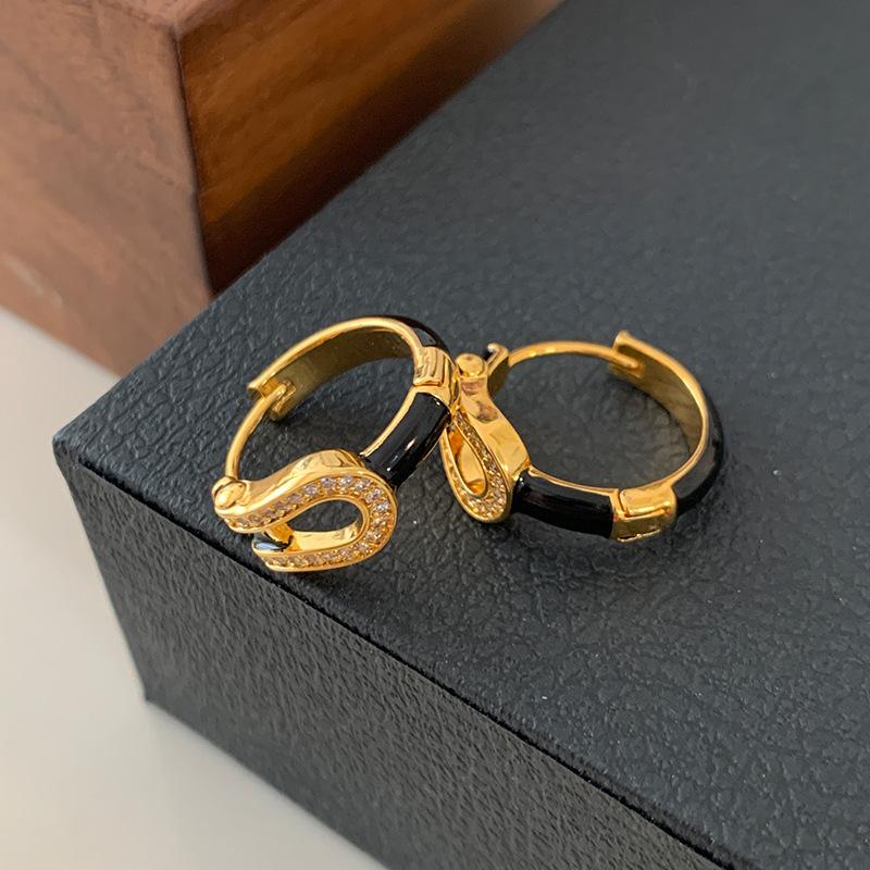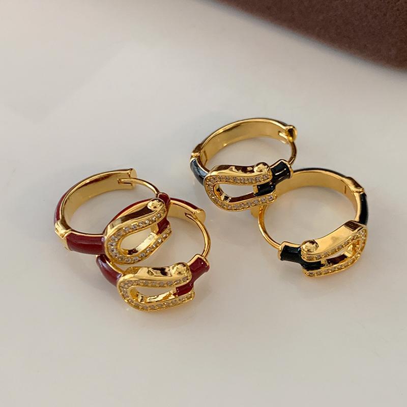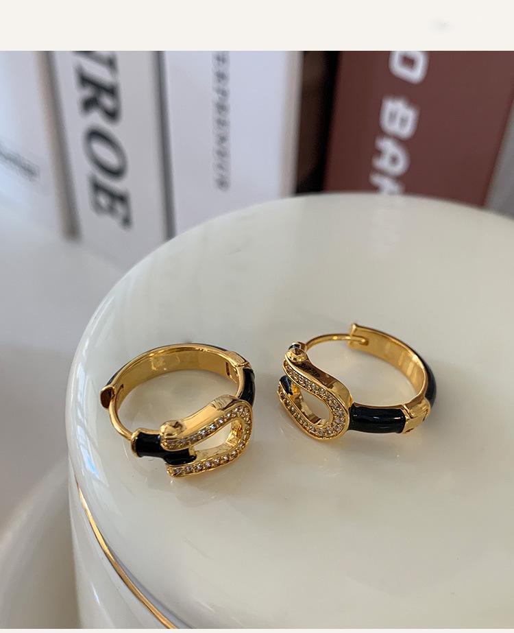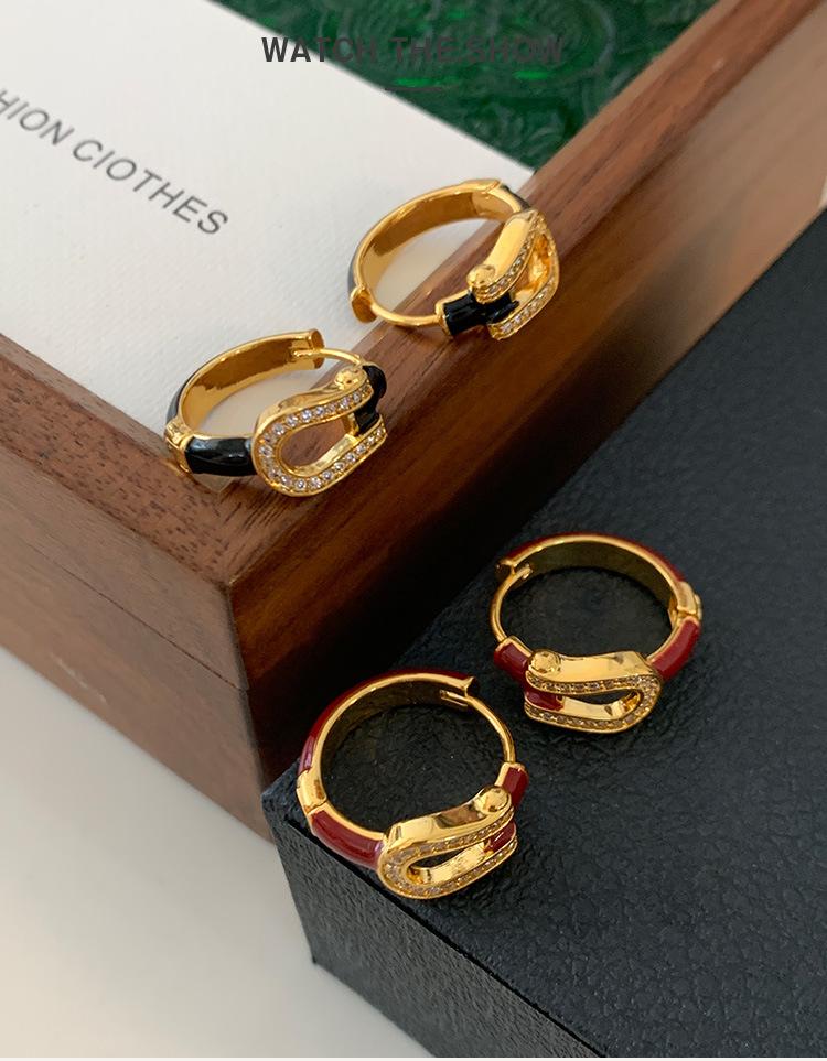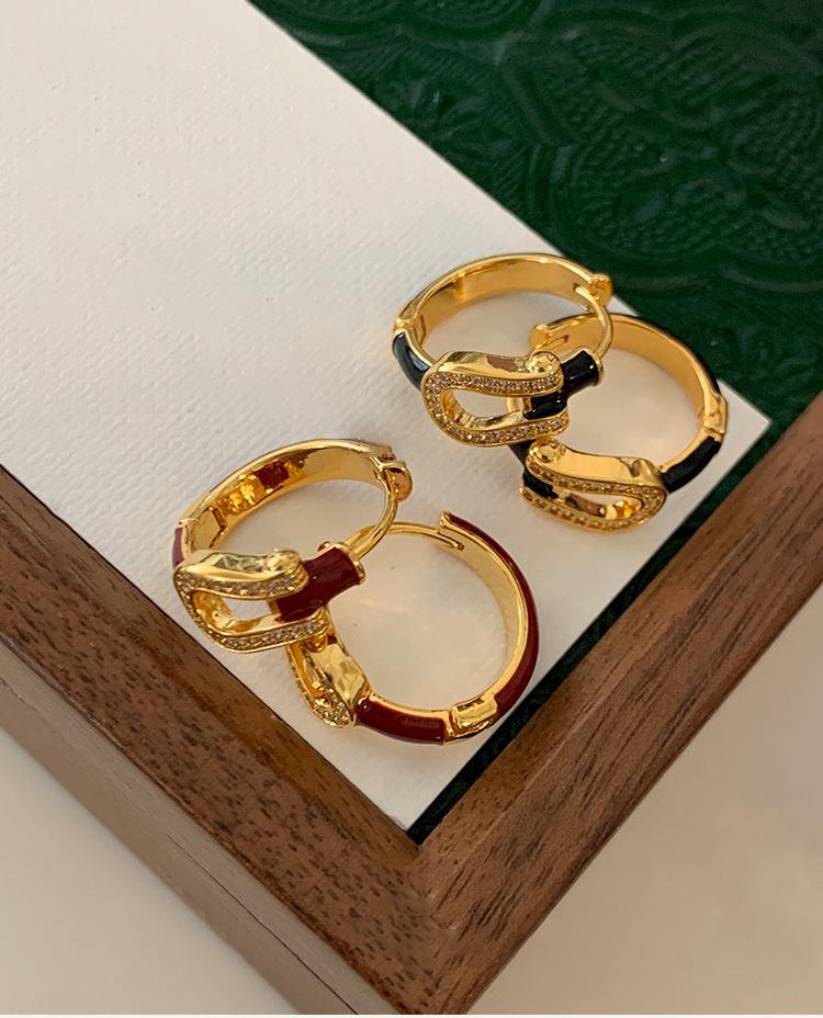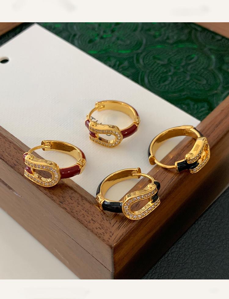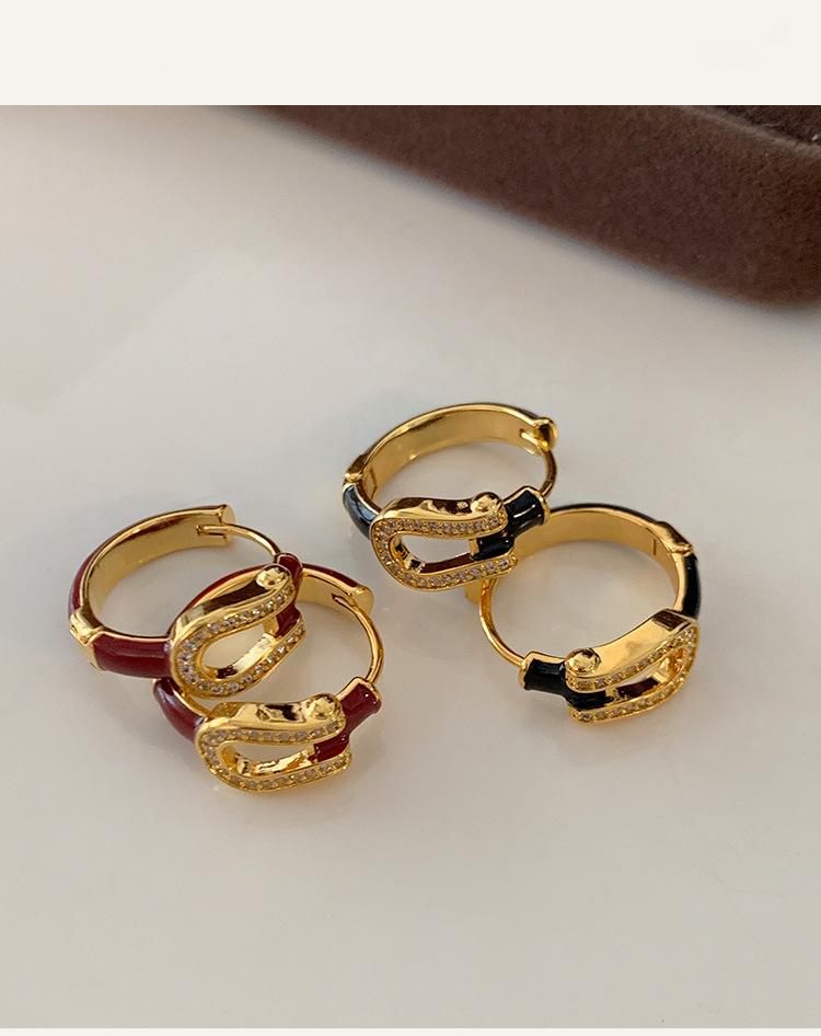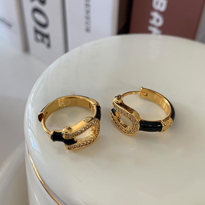 Compra Pendientes con hebilla de herradura de aceite de circón súper llamativos, ligeros, de lujo, con personalidad de viento frío, pendientes de temperamento retro francés, venta al por mayor al por mayor en Joom.pro