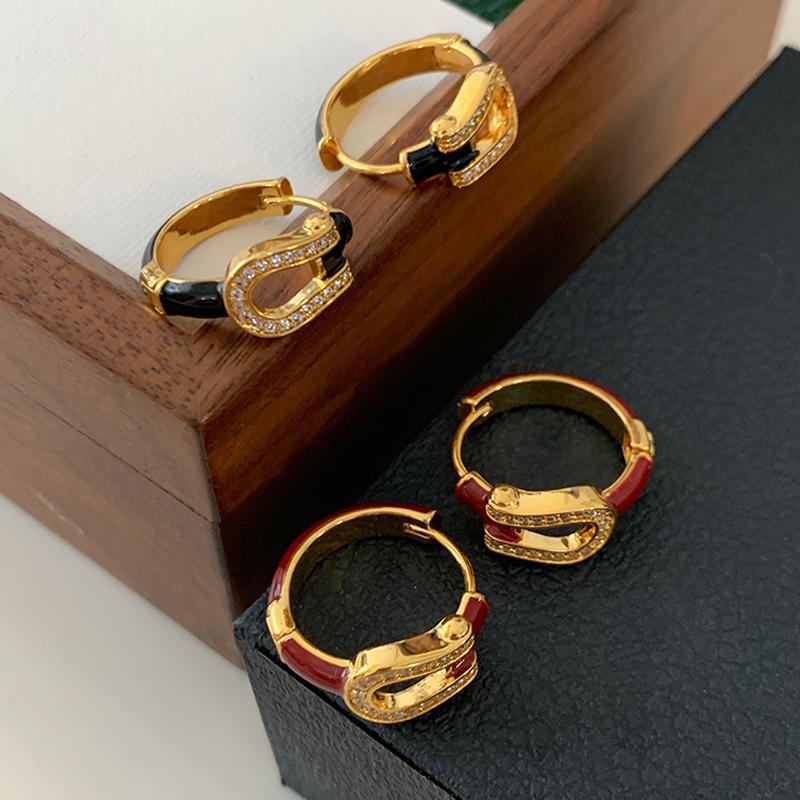 Pendientes con hebilla de herradura de aceite de circón súper llamativos, ligeros, de lujo, con personalidad de viento frío, pendientes de temperamento retro francés, venta al por mayor