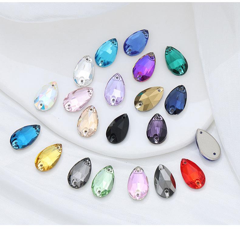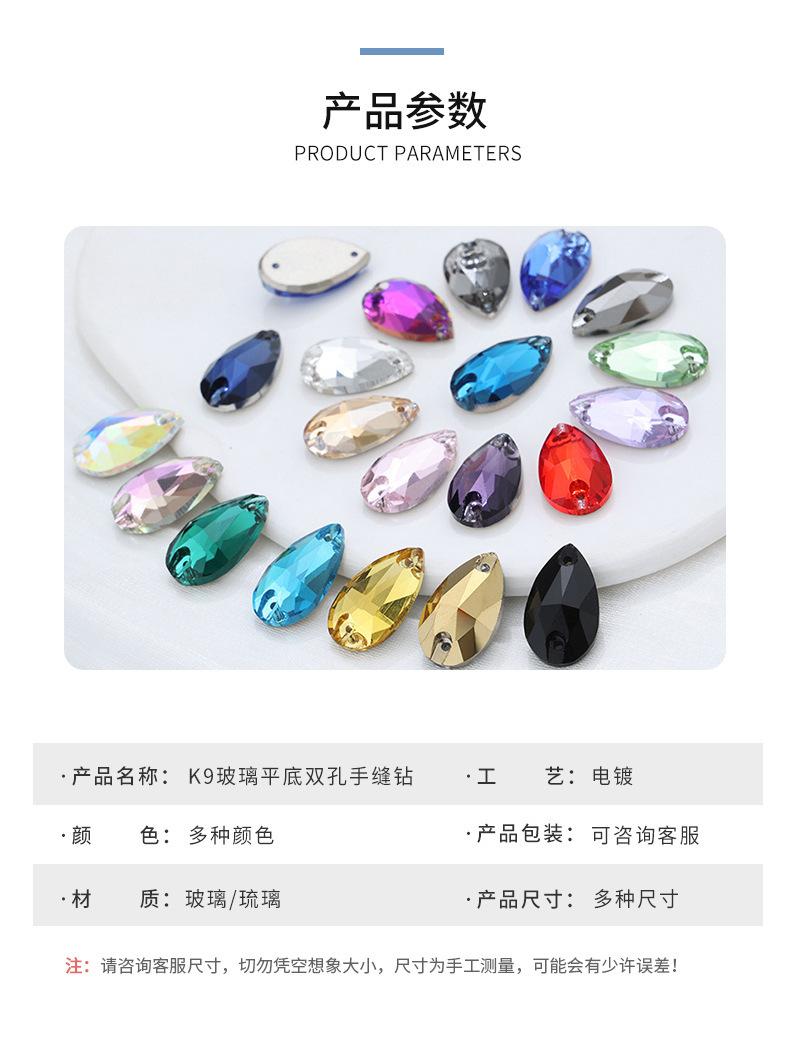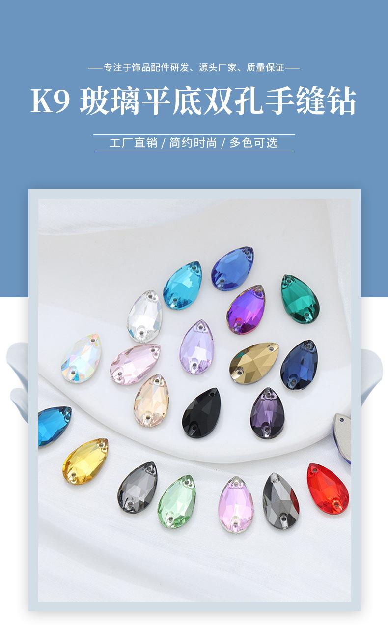 Clase Transfronteriza K9 Vidrio Fondo Plano Doble Agujero Taladro Cosido a Mano Accesorios de Joyería DIY Bolsas Accesorios de Ropa Venta al por Mayor
