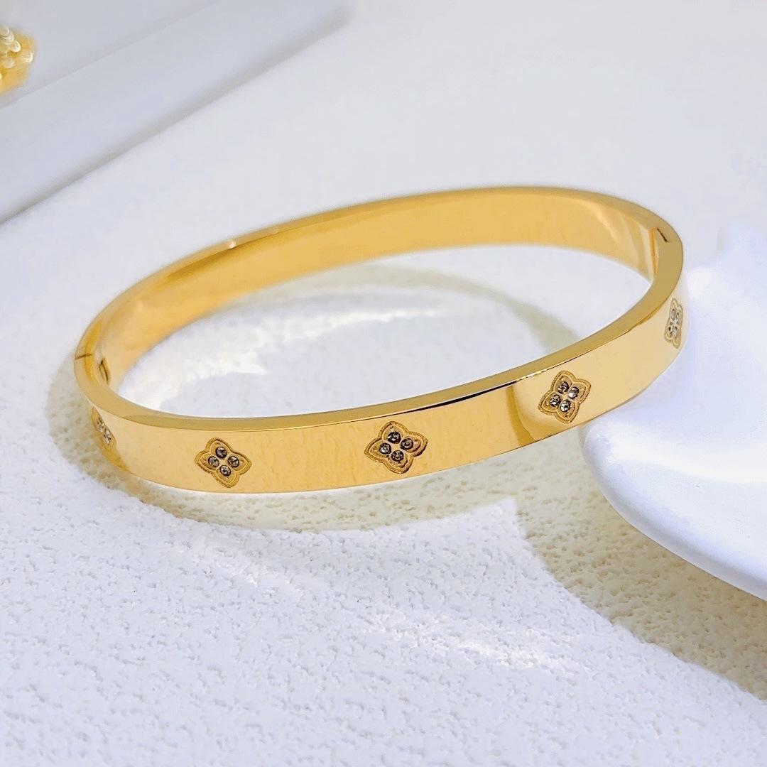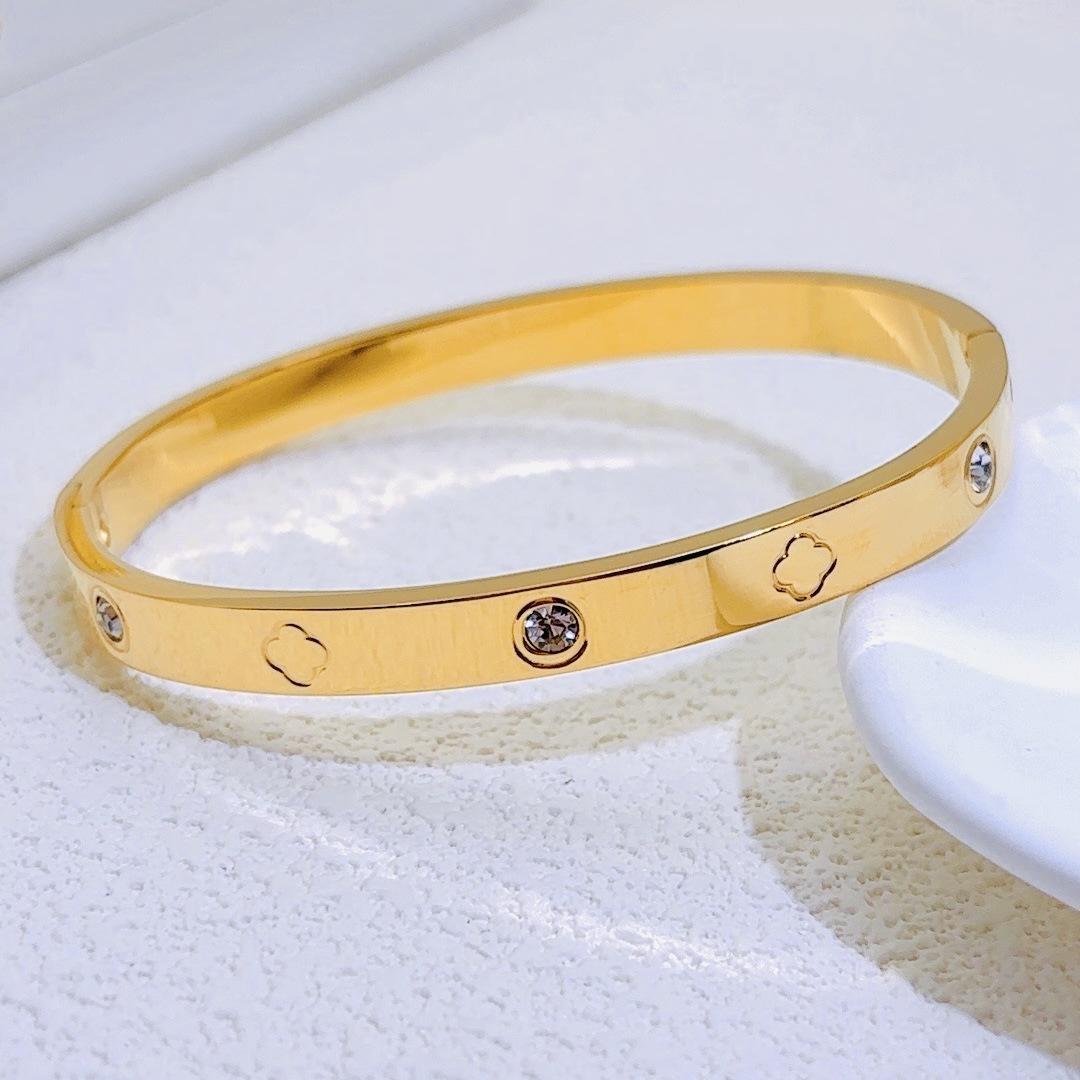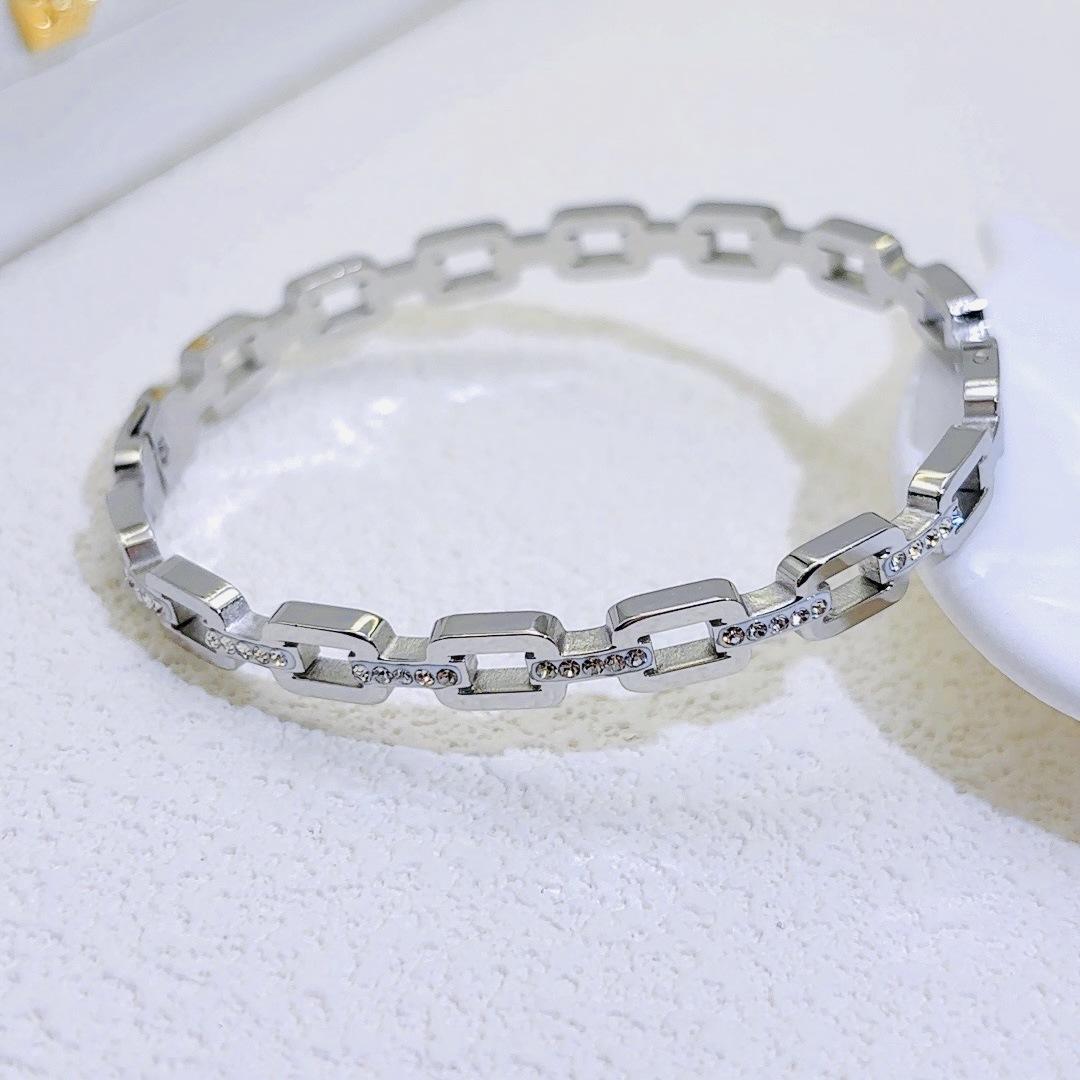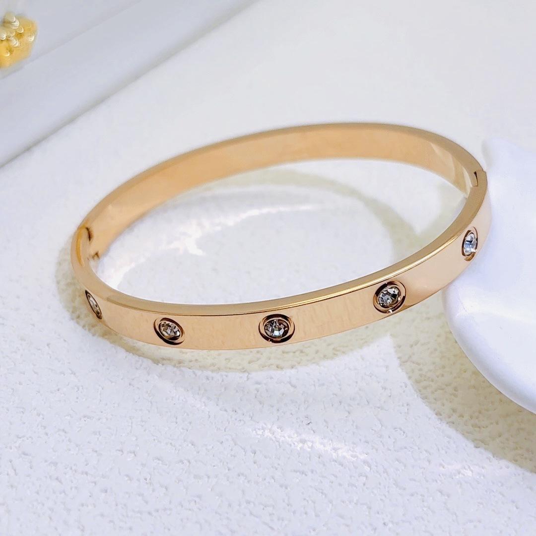 Pulsera de acero de titanio para pareja transfronteriza europea y americana, pulsera a presión simple de moda, ligera, de lujo, elegante, combinable con todo, de alta gama.