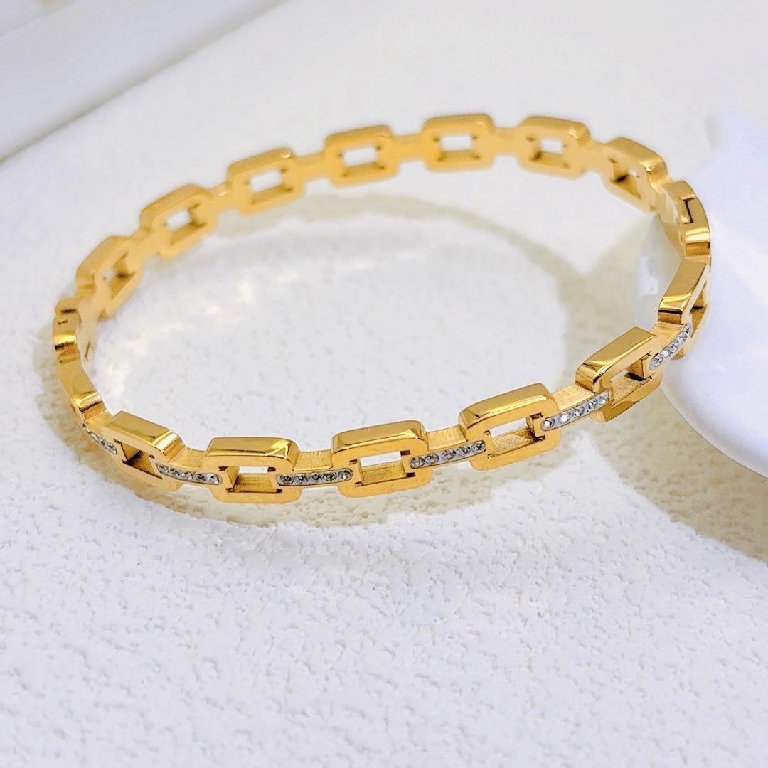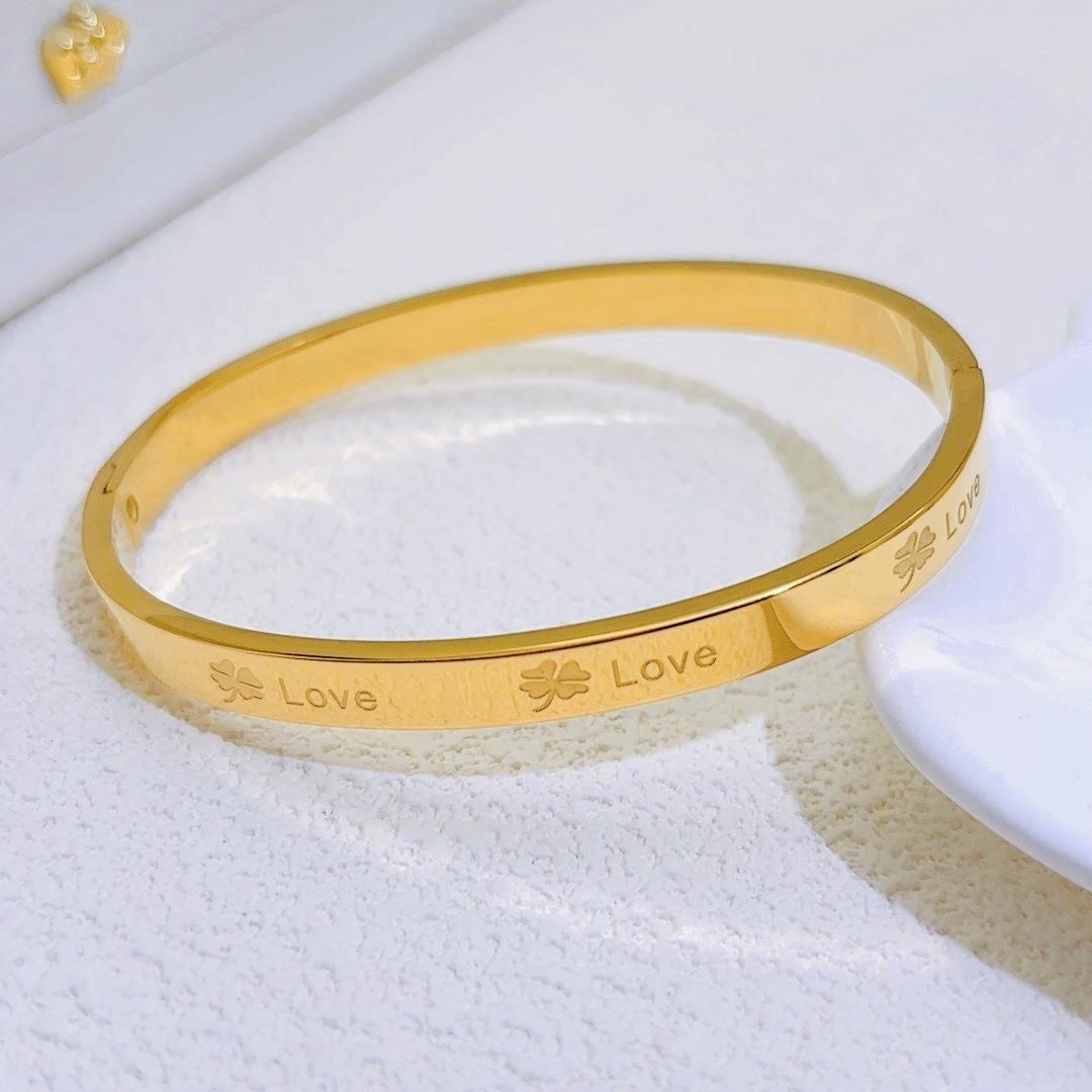 Compra Pulsera de acero de titanio para pareja transfronteriza europea y americana, pulsera a presión simple de moda, ligera, de lujo, elegante, combinable con todo, de alta gama. al por mayor en Joom.pro
